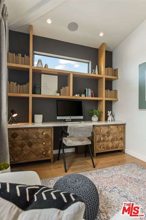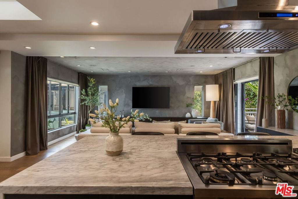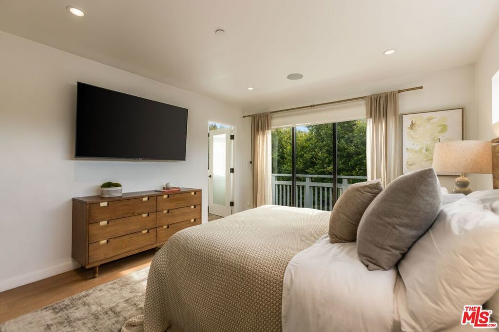 Nestled in the vibrant heart of West Hollywood, this recently remodeled Cape Cod-inspired residence offers a harmonious blend of timeless charm and contemporary luxury. Boasting four generously sized bedrooms and four meticulously designed bathrooms, the home provides ample space for both relaxation and entertainment. The gourmet kitchen stands as a testament to craftsmanship, featuring pristine white Carrara marble countertops, custom cabinetry, and top-of-the-line appliances, ensuring both functionality and elegance. An open-concept floor plan enhances the sense of space, with European hardwood floors flowing seamlessly throughout the main living areas. Exceptional privacy and security are hallmarks of this property, situated in a tranquil enclave yet within short distance to West Hollywood's vibrant dining, entertainment, and cultural attractions. A private rooftop deck presents breathtaking panoramic city light views, including the iconic Hollywood Sign, creating an ideal setting for dining or evening relaxation. The secluded backyard features an outdoor grill area, perfect for al fresco dining and entertaining guests. Two balconies one off the living room and another off the primary bedroom provide additional outdoor living spaces to enjoy the Southern California climate. A spacious, oversized two-car garage offers ample storage and convenience. The property is fully enclosed with a gated driveway and a charming walkway leading to the front door, ensuring both security and curb appeal. This residence epitomizes luxurious modern living, offering a serene retreat amidst the urban landscape. Whether you're seeking a peaceful sanctuary or an entertainer's haven, this home caters to every desire.