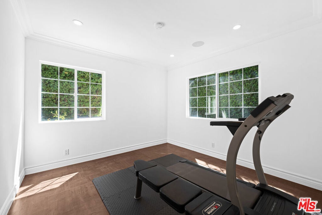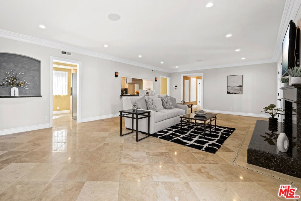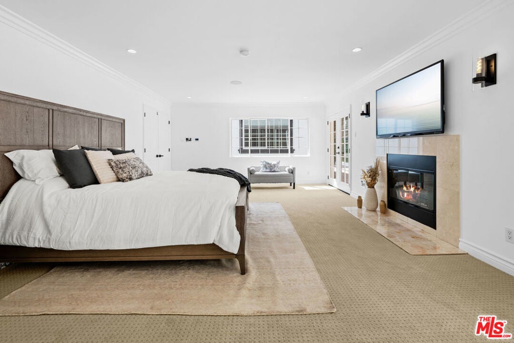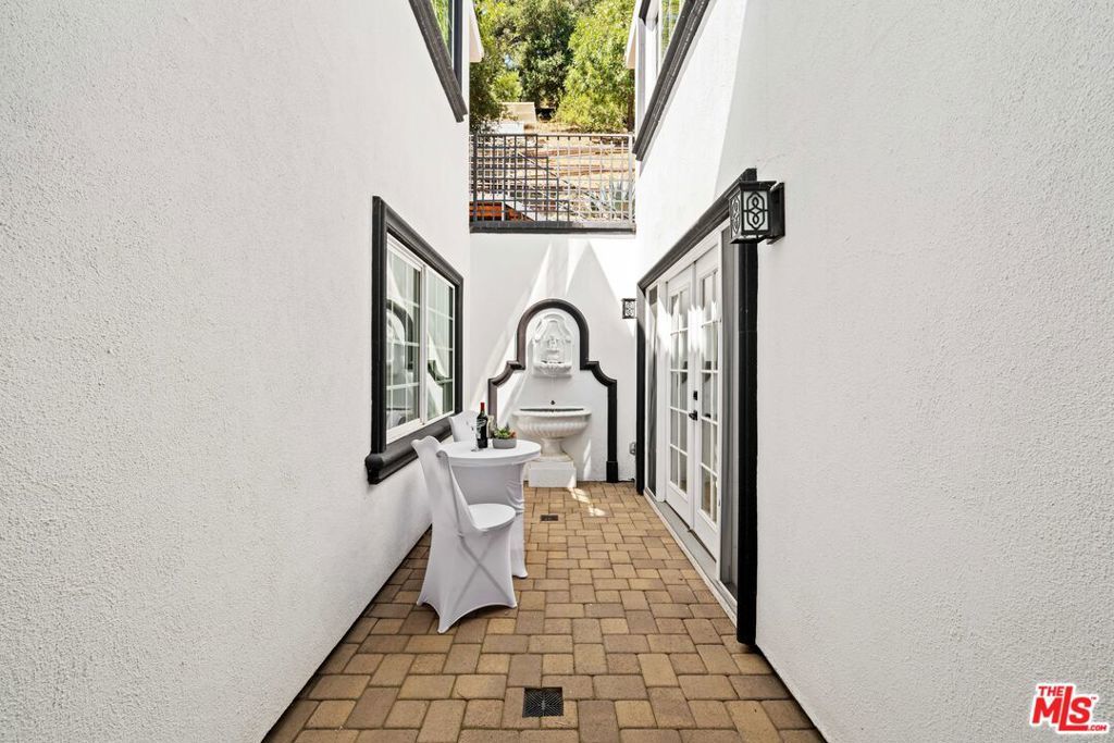 This gated, move in ready, retreat in Beverly Crest Hills combines luxury and convenience, having been renovated late 2023. It features a welcoming motor court and an open floor plan filled with natural light. The main floor offers a formal dining room with a fireplace and a nice courtyard for outdoor dining. Upstairs, the spacious primary suite includes its own fireplace, a luxurious bathroom, and a large walk-in closet. Additional bedrooms provide access to a multi-level outdoor space ideal for entertaining, and the property includes an attached guest apartment suite. This home is a serene escape, conveniently located near downtown Beverly Hills, the Glen Center, major studios, and top-rated schools.