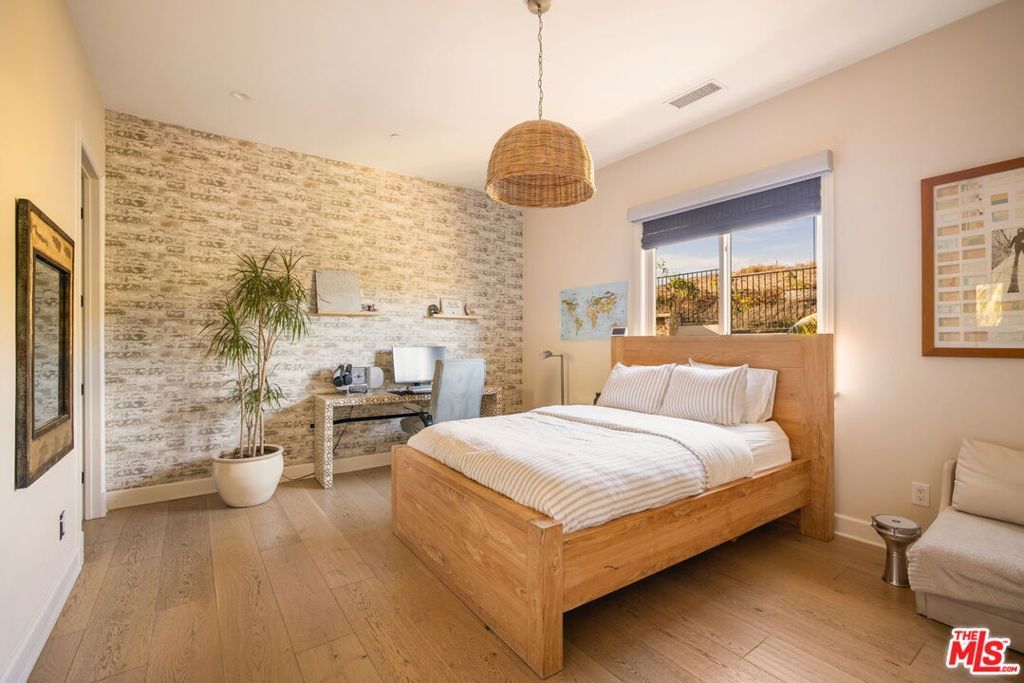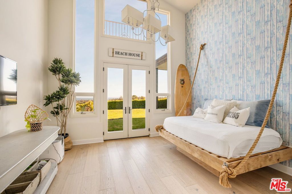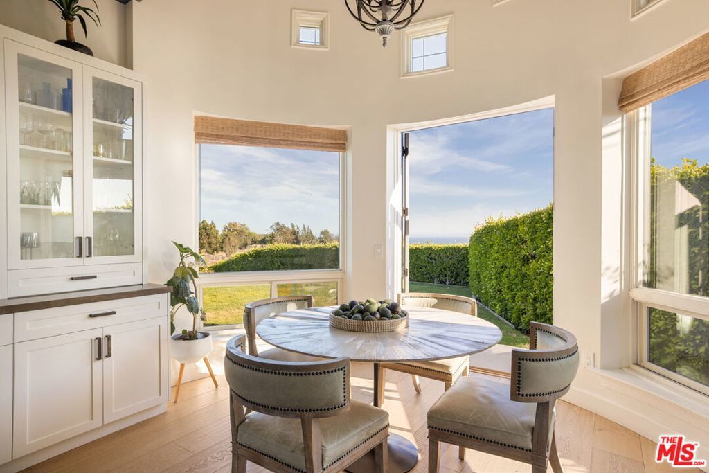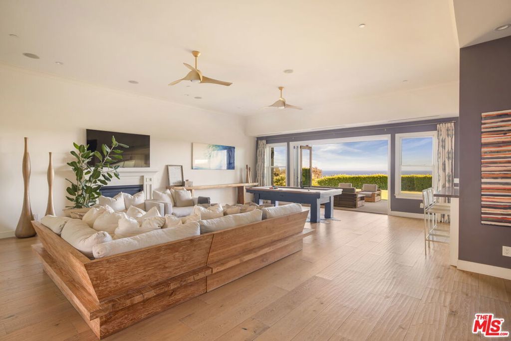 Sited near Point Dume, in the heart of Malibu, this gated, ocean view compound embodies five-star resort-style living and is configured to entertain. On a private half-acre, the grounds are designed to inspire both connection and escape, offering spaces to gather, unwind, thrill seek, and fully embrace the Malibu lifestyle. A large pool and jacuzzi accomodate relaxation, while expansive flat lawns provide ample room for play. With ocean views from nearly every vantage point, the single-story main residence consists of five bedrooms, seven bathrooms, plus an office/gym. Outdoor fireplaces and the poolside bar set the stage for evenings under the stars, while Tulum-inspired hideaways tucked behind lush, flowering entrances provide sites for meditation. The primary suite is a retreat of its own, complete with dual walk-in closets, a large soaking tub, and an oversized shower. The kitchen is equally impressive, outfitted with top-of-the-line Viking appliances and an oversized island. Complementing the main house, a detached two-story guest residence offers a private bedroom, living area, kitchenette, and full bath, creating a separate suite for visitors. Mature avocado, fig, lime, and lemon trees decorate the perimeter. A built-in trampoline, private skate park, and close proximity to some of SoCal's best surf breaks promote an active Malibu lifestyle. Motor-court parking and no neighbors on three sides of the property. All this, only moments from Soho Little Beach House, Nobu, and all that Cross Creek Living has to offer.