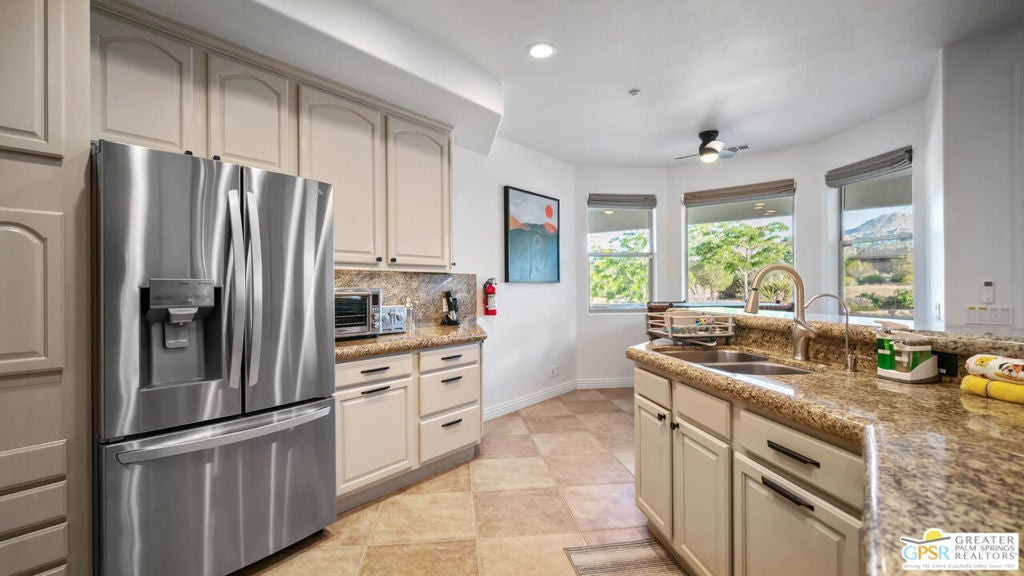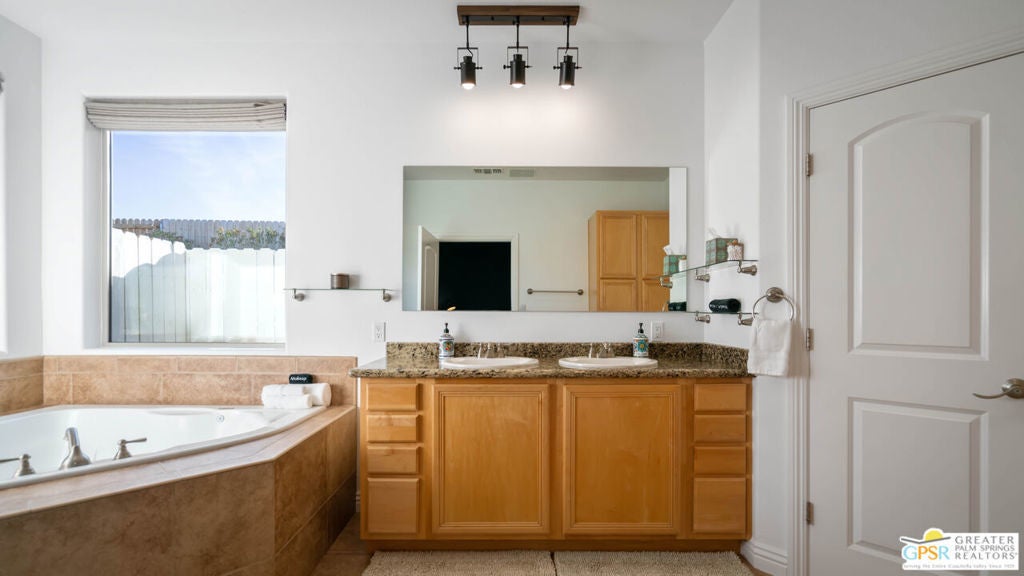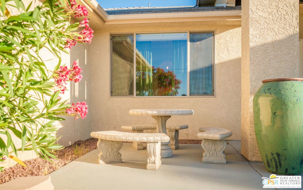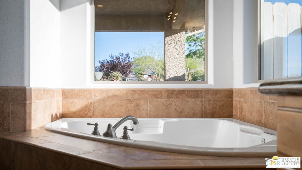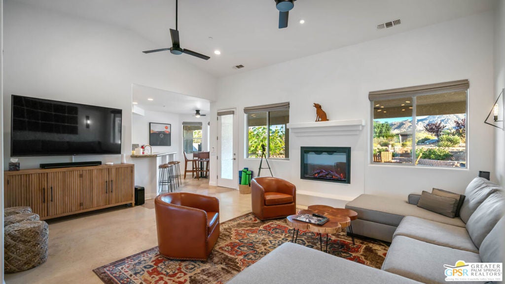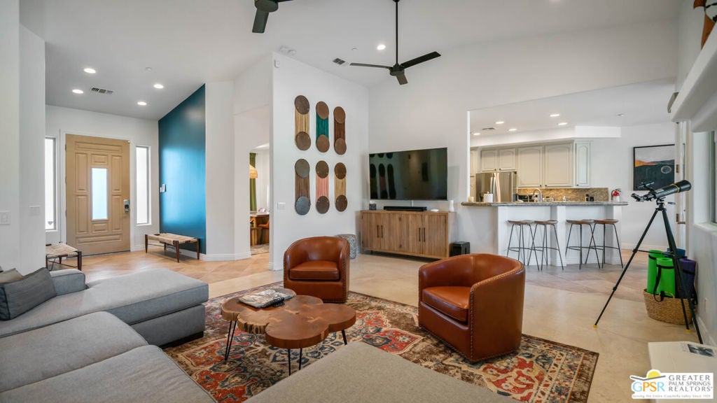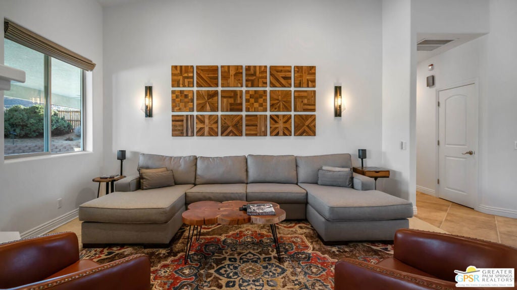 Unbeatable value in the heart of Joshua Tree! This enchanting 4-bedroom, 3-bathroom home sits on nearly an acre, blending timeless architecture with modern amenities for an unparalleled living experience. Recently renovated, this gorgeous property boasts high ceilings and an open-concept design, creating an inviting and spacious atmosphere. This is your dream retreat in the serene neighborhood of Upper Friendly Hills! Enjoy living in one of the best located neighborhoods in Joshua Tree, situated just a few blocks from the village and town center, you'll enjoy the convenience of local shops and dining while being only 10 minutes from the breathtaking landscapes of Joshua Tree National Park, perfect for exploring serene hiking trails and awe-inspiring natural beauty. Step into your private backyard sanctuary, where lush landscaping and a spacious covered patio set the stage for outdoor entertaining. Unwind on the brand-new deck with a hot tub, or cozy up by the firepit on cool desert evenings. Inside, a beautifully remodeled ensuite bathroom features modern fixtures, LED lighting, and thoughtfully placed switches for added convenience. Additional upgrades including epoxy-painted cabinets and floors, powered blinds, dual Navien tankless water heaters, house fully vented for a swamp cooler, and a propane-plumbed fire pit and barbecue enhance both style and functionality. Security and comfort are top priorities, with a SimpliSafe alarm system, Ring security cameras, and video doorbells ensuring peace of mind. A gated entry leads to a spacious 3-car garage with EV charging and RV access, offering ample storage for all your recreational gear. Plus, with 20 solar panels on a transferable lease, this home is as eco-friendly as it is luxurious. Perfectly suited for short-term rentals, this home offers a lucrative opportunity for investors or those seeking a hassle-free Airbnb experience. Furnishings are negotiable! Providing meticulous attention to detail and a host of amenities designed to impress, this gem is ready to welcome you home to the enchanting beauty of Joshua Tree. Whether you are looking for a primary residence, vacation getaway, or short-term rental investment, this beautifully designed property offers a seamless blend of comfort, style, and opportunity. Don't miss your chance to own a slice of desert paradise schedule a showing today!