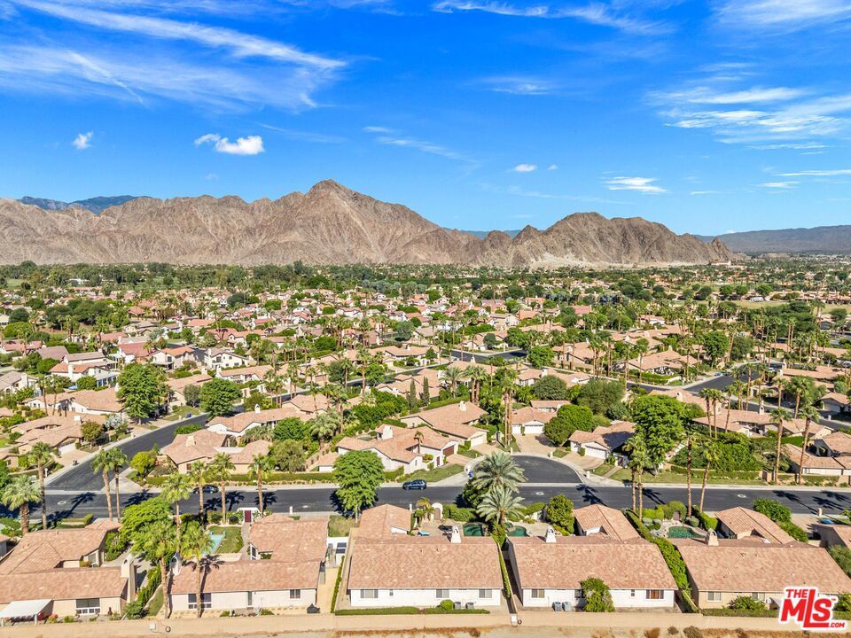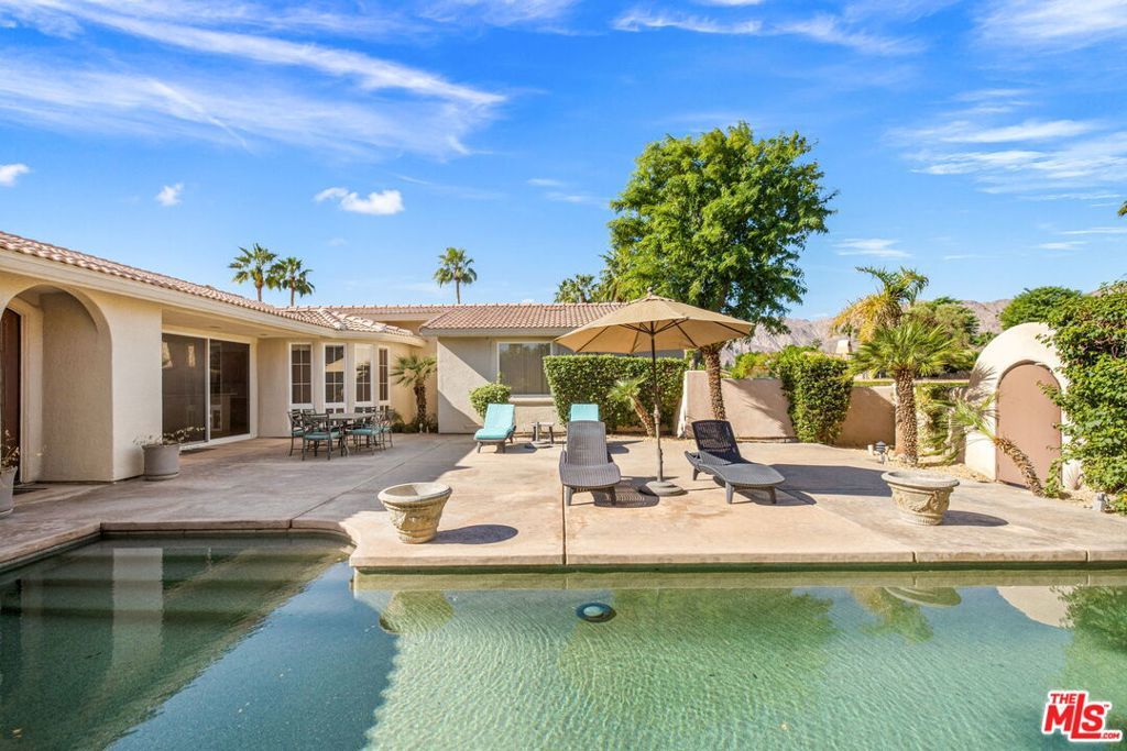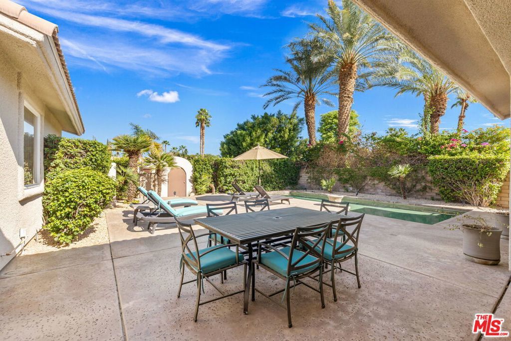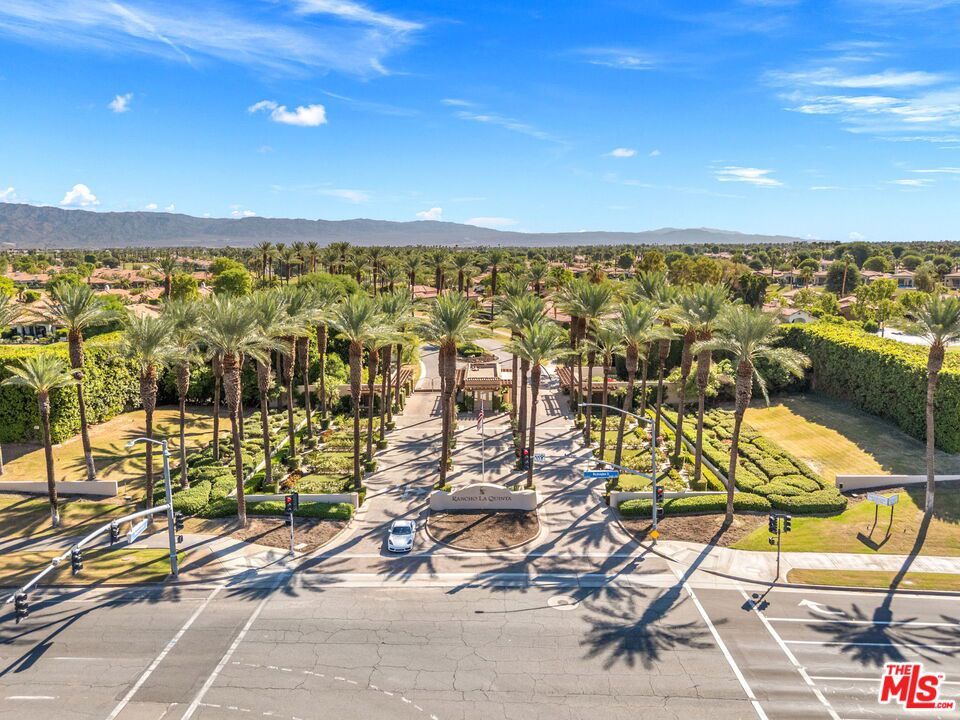 Welcome to this charming single-story residence in the prestigious guard-gated community of Rancho La Quinta, located within the highly desirable 'Ventanas' enclave. This beautifully maintained home offers three spacious bedrooms and a large, open-concept floor plan designed to maximize natural light and effortless flow. At the heart of the home, a generous formal living room and elegant dining area provide the perfect setting for both entertaining and everyday living. The spacious kitchen is thoughtfully designed with abundant counter space, ample cabinetry, and a convenient breakfast bar for casual dining. The primary suite features a remodeled bathroom with a soaking tub, double vanity, and a modern, spa-like ambiance. A versatile den within the suite offers the perfect space for a home office or a cozy in-room sitting area. Outdoors, the easy-to-maintain yard offers a sparkling swimmer's pool and large patio - ideal for both relaxation and entertaining. Residents of Rancho La Quinta enjoy world-class amenities including championship golf courses, a stunning clubhouse, recreation and fitness centers, resort-style pools and spas, and the added peace of mind of 24/7 guard-gated access and security patrols. This property blends comfort, style, and an unmatched lifestyle in one of La Quinta's most sought-after communities.