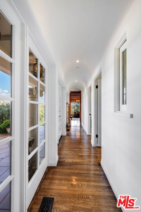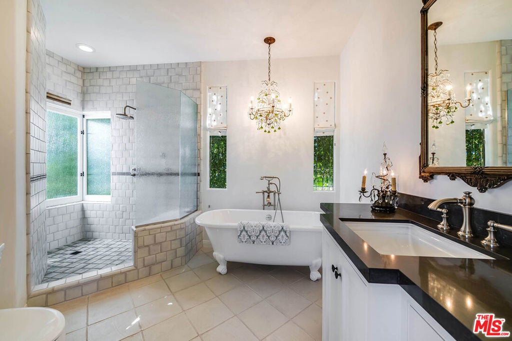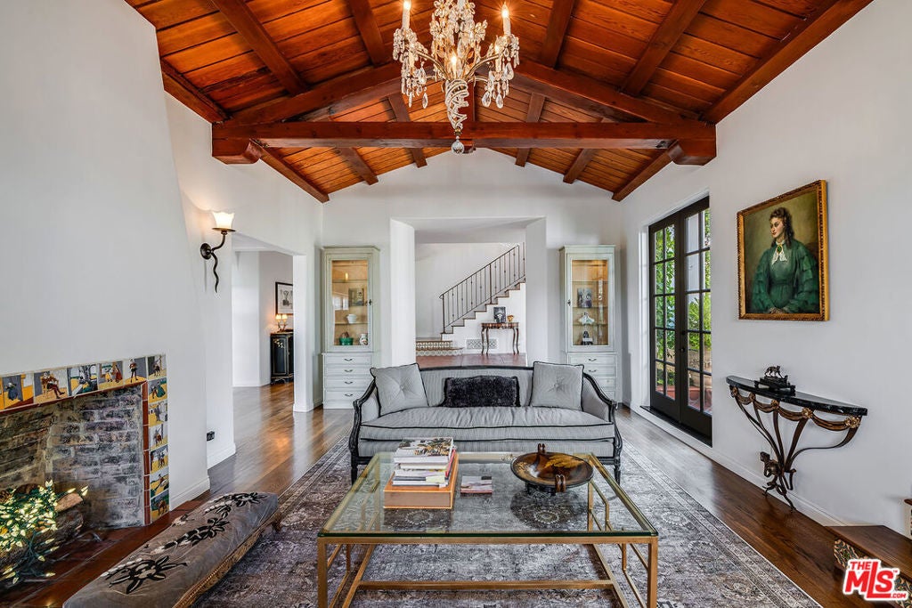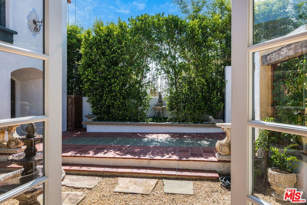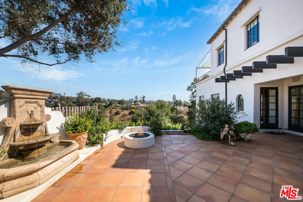 Chautauqua-on-the-rim. Unique and special Spanish style home. Once through the gates and in the courtyard entry you are immediately transported emotionally to a different place... Mexico, Spain or Tulum perhaps. Warm and welcoming, gorgeous, restored and remodeled. Cathedral beamed ceilings and French doors set the stage for that perfect indoor/outdoor flow from the front courtyard to the back patios. Romantic primary suite with an office, dressing area and the ideal upstairs patio with views across Rivas Canyon to the ocean. 2 beds down with a beautiful wood paneled family room. Newly remodeled chefs kitchen, fabulous flow for entertaining, very flexible floor plan.. Light, bright walls for artwork, all of the windows look out on incredible vistas. Private, special, all of this and a guest house. This house is resilient and withstood everything nature confronted it with and is a testament to the strength and the longevity of a true Spanish home built in 1930.