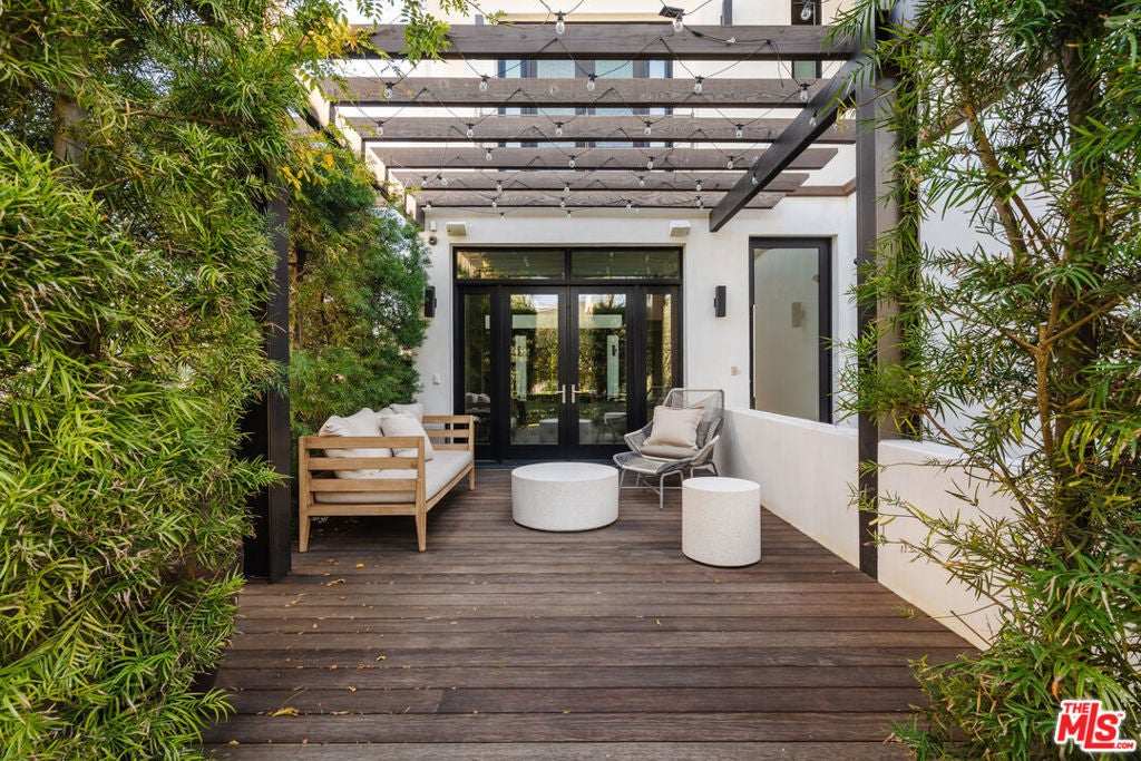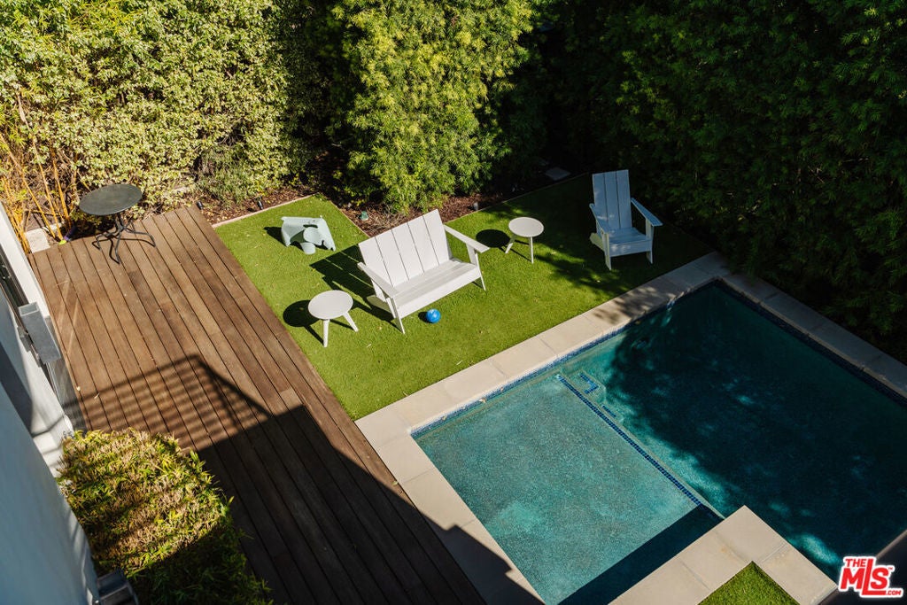 Situated on a beautiful tree-lined street in Larchmont Village awaits this stunning, warm contemporary estate. Thoughtful design combined with top-of-the-line finishes make this home an absolute dream. Set behind gates and lush landscaping, the home provides a serene & private environment for residents. At the heart of the home is the gorgeous chef's kitchen complete with Sub-Zero and Wolf appliances, walk-in pantry, wine display, eat-in center island, and extensive cabinetry. The main living space is accented by floor-to-ceiling glass doors which seamlessly flow to the backyard oasis with a sparkling pool. Ascend to the second level where you will find three well-appointed guest suites and the stunning primary with walk-in closet, private balcony, & spa-like bath. Additional home features include smart home technology, Hollywood sign views, interior courtyard for al fresco living / dining, luxurious first-level powder room, tranquil front patio, laundry room, garage with bonus driveway parking, and so much more! Ideally situated, this home is just a stone's throw from the best shops, restaurants, and entertainment on Melrose and Beverly.