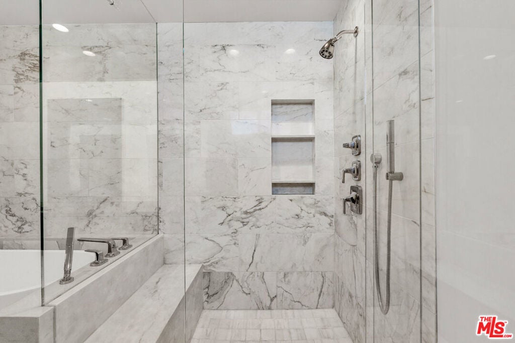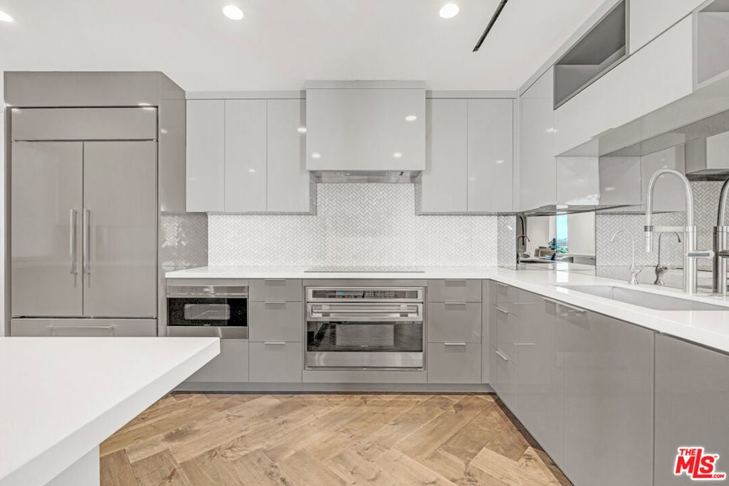 Meet Residence 1404, a meticulously designed home by renowned interior designer Kara Smith, offering a refined blend of sophistication and comfort within Empire West. Perched high on the 14th floor, this coveted northeast corner residence captures sweeping city and Hollywood Hills views from every room. The thoughtfully renovated 2-bedroom, 2.5-bath layout showcases imported fixtures, herringbone hardwood floors, custom electronic shades throughout, and custom designer wallpaper throughout. The gourmet kitchen is outfitted with Wolf and Sub-Zero appliances, a U-Line beverage fridge, and sleek custom cabinetry. The family room features a fireplace elegantly set beneath the TV, creating a warm ambiance. The elegant primary suite opens to the terrace overlooking the Hollywood Hills and includes electronic blackout shades, a spa-like bathroom with soaking tub, separate shower, and a custom walk-in closet. Residents of Empire West enjoy an elevated lifestyle with 24-hour security, a dedicated doorman, and valet parking. Indulge in exclusive amenities, including a rooftop pool and deck with firepit, and BBQ, and clubhouse with indoor and several outdoor living spaces that offer stunning 360-degree views of Los Angeles, a full-sized tennis court and fitness center. Experience modern luxury living at its finest in the most exceptional unit Empire West has to offer. Located in the heart of West Hollywood, adjacent to Sunset Blvd with all your trendy restaurants and nightlife, and centrally located to all of the best parts of Los Angeles!