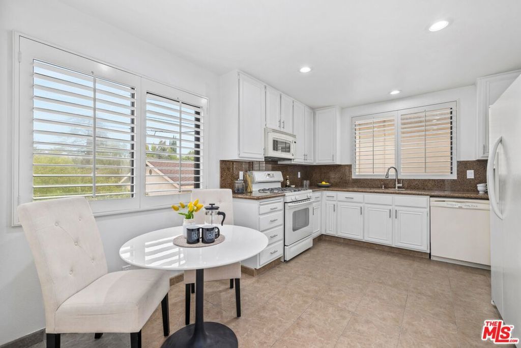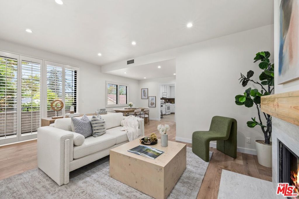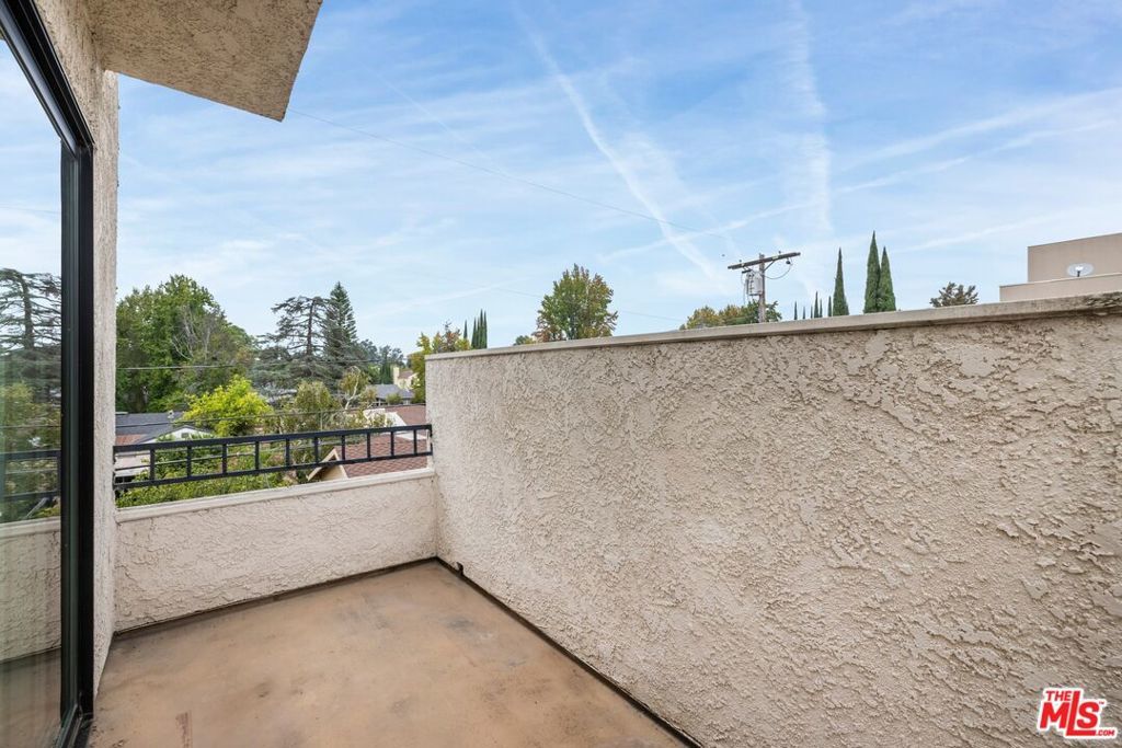 Presenting a fabulous, prime Studio City end-unit townhouse with treetop views, positioned away from the street in a desirable complex with well-manicured landscaping. Designed with entertaining top of mind, the living room includes a mini bar, stylish wood-burning fireplace, and sliding door to the balcony to provide an ideal indoor-outdoor vibe. Wide-plank floors continue to the dining area as plantation shutters add charm and elegance to the spaces. The adjacent eat-in kitchen has copious bright cabinetry, granite countertops/backsplash, and plenty of preparation space. Both bedrooms are en-suite, each with private balcony access and a walk-in closet, and the primary bathroom includes a dual-sink vanity. Side-by-side laundry hookups are found in unit, and there is even a private two-car garage, a rarity indeed! Just down the street is Beeman Park and the Studio City Recreation Center's picnic tables, tennis courts, basketball hoops, baseball diamonds, and playground shaded by giant California oaks. The home is also close to parks, award-winning schools, major freeways, the LA River greenway trail, and the restaurants along Ventura Boulevard, all just moments to Universal City Walk and The Shops at Sportsmen's Lodge, anchored by Erewhon and Equinox. Welcome home!