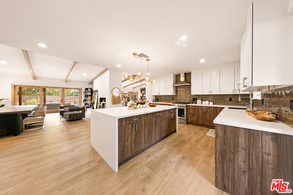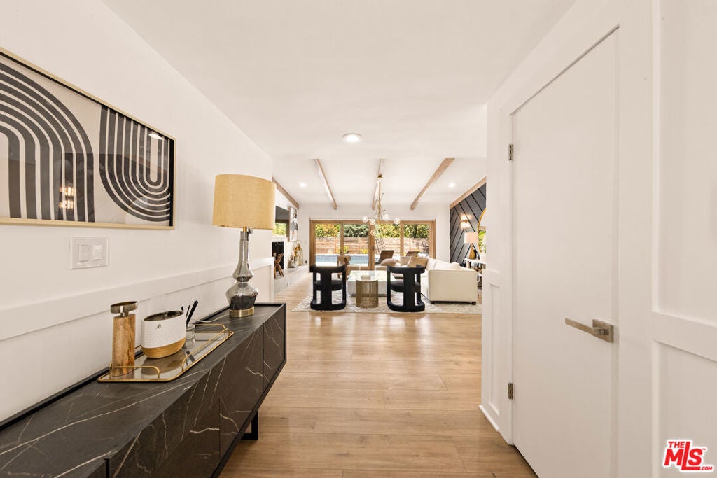 Designed by renowned architect Charles DuBois, this 1964 Mid-Century Modern masterpiece embodies timeless California living. Featuring 3 bedrooms, 2.5 baths, a two-car garage, and 2,401 sq. ft. of refined interiors on a 10,898 sq. ft. lot, the home showcases DuBois's signature open-beam ceilings, rich wood floors, and a wraparound dual fireplace at its center. Enhanced in 2022, it seamlessly blends architectural heritage with modern luxury. The flowing layout connects a grand living area, formal dining room, and chef's kitchen with a spacious island. French doors open to a private, resort-style backyard oasis with a pool, gazebo, and sport court, surrounded by lush landscaping. Perfect for both grand entertaining and quiet retreat. Located within the top-rated Woodland Hills school district, this residence is a legacy of design, reimagined for those who value elegance, comfort, and distinction. Ready to be lived in, cherished, and called home.
