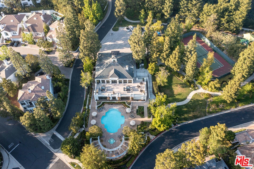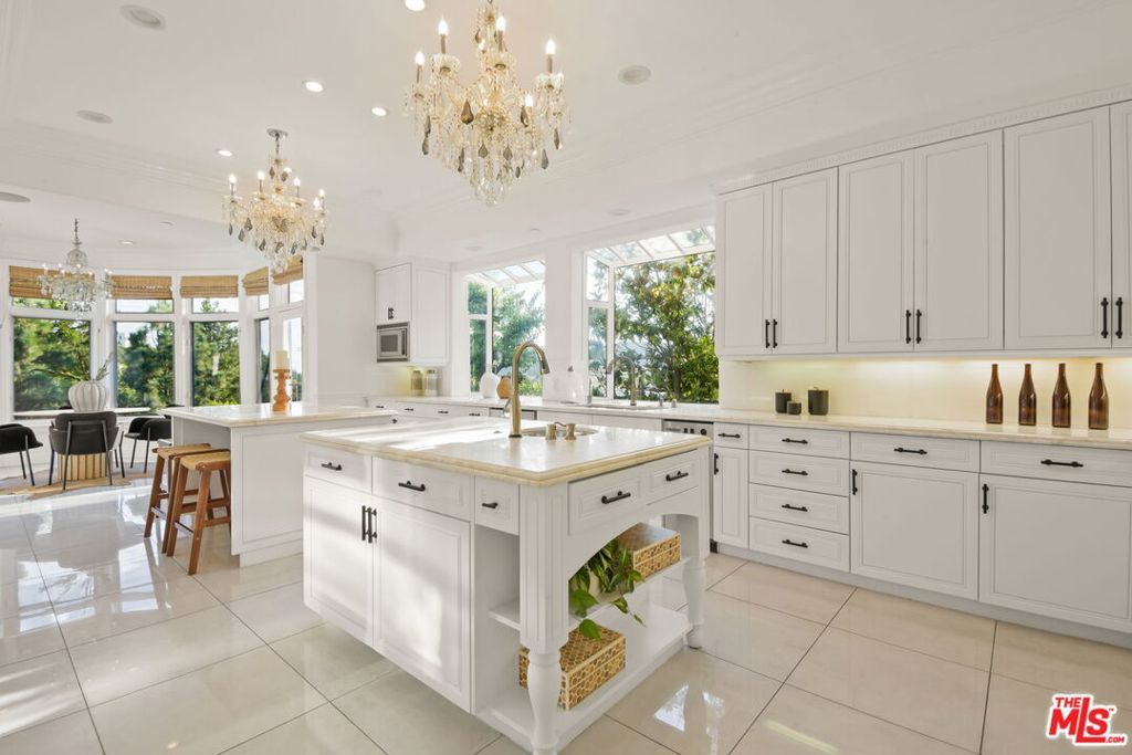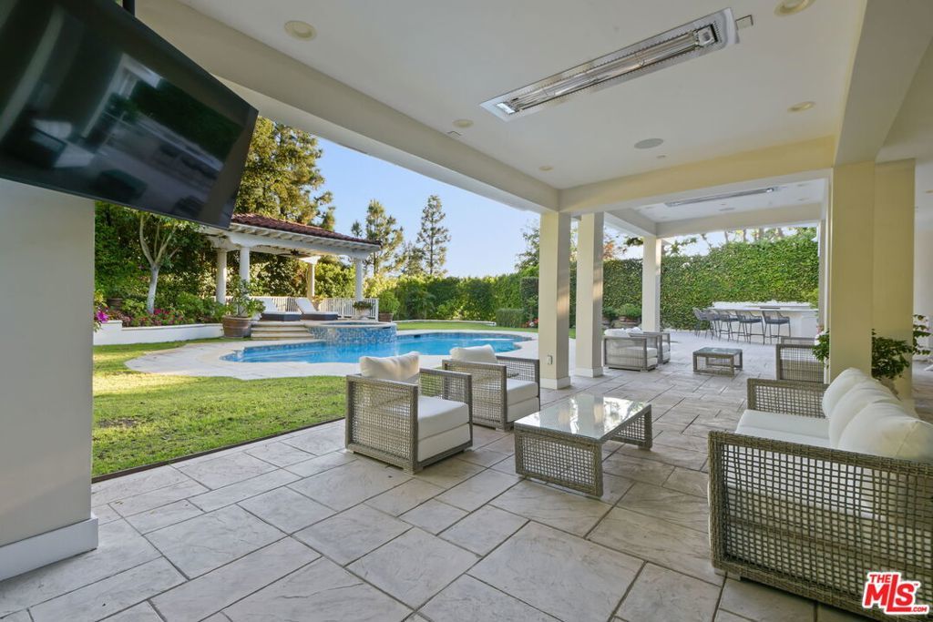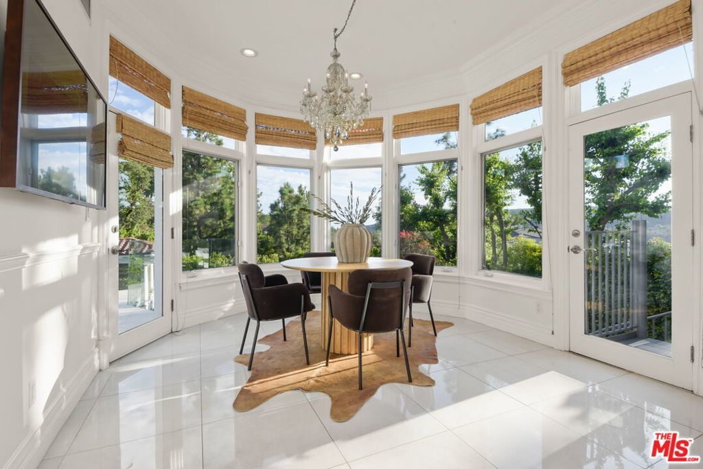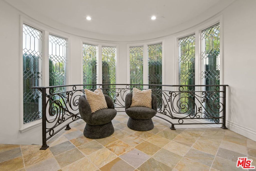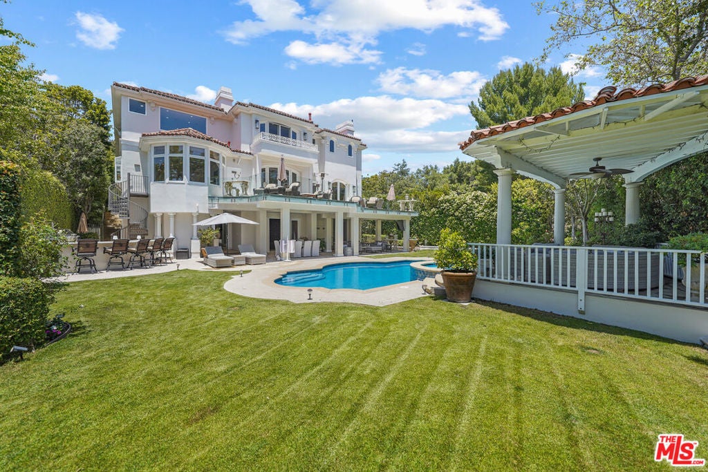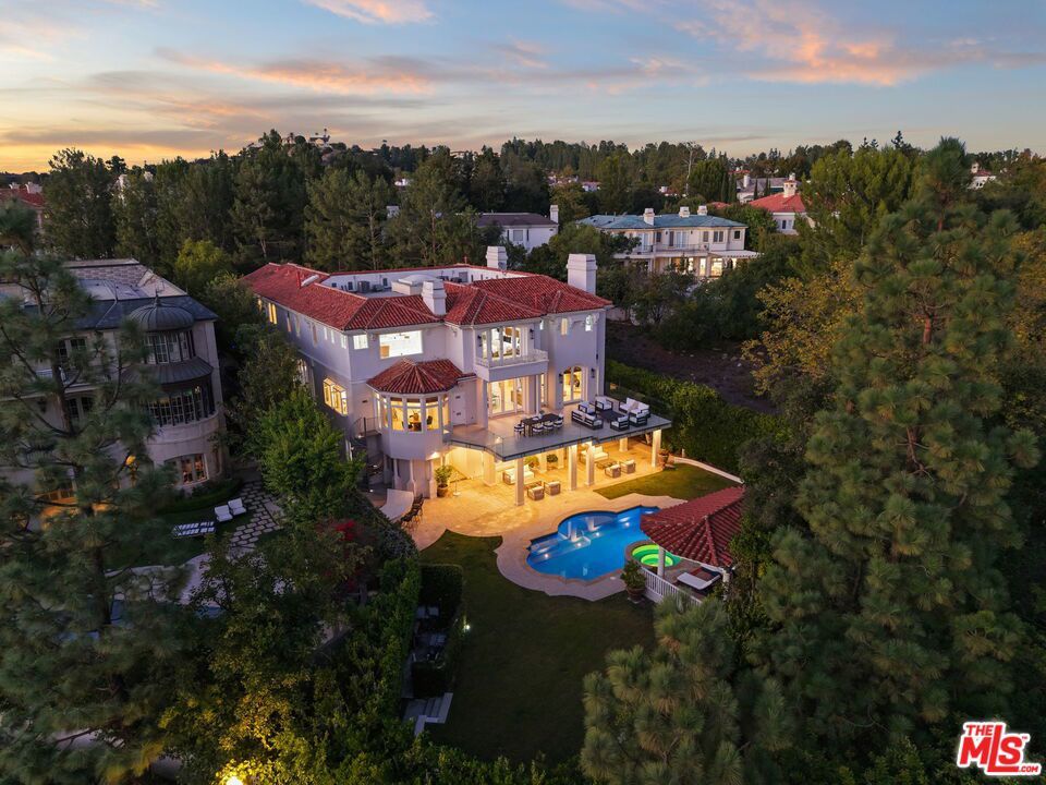 This Contemporary Mediterranean Estate is located in the highly sought after and exclusive 24-hour guard gated community of Bel Air Crest. Tucked away at the end of a quiet Cul-De-Sac with an additional gate shielding the driveway up to the home and adjacent to the greenbelt, this property is providing the utmost in privacy while still enjoying views of nearby MountainGate Country Club golf course and canyon. Stately impressions are made when entering into the foyer where you are met with soaring ceilings and a glass cupola dome, flagged by a double winged staircase exuding elegance. Seamlessly flowing into the formal dining room with French doors leading out to a 1,000 sq ft plus balcony overlooking the backyard and pool. The main level also boasts a gourmet kitchen, family room with fireplace, living room with fireplace, powder room and luxurious office space with built in bookshelves and a balcony. The upper level features an exquisite primary suite retreat with a private balcony, wet bar, double sided fireplace, steam and sauna in the renovated his and hers bathrooms and closets. There are 4 additional en suite bedrooms, one of which has its own private staircase entrance. The Garden level has 2 additional en suite bedrooms, a home theater, living/dining area with built in bar, wine cellar, gym, pool bathroom with shower, and laundry room with both indoor and outdoor access from the garden. The backyard is an entertainers dream with an additional 1,000 square feet covered patio complete with ceiling heat lamps, a built in BBQ and bar area, covered gazebo and beautifully redone pool and adjoining spa. Outdoor living in California at its best with these large entertaining areas surrounding the pool in addition to the outdoor deck added to the main floor. The community of Bel Air Crest offers 5 tennis courts, basketball courts, a dog park, playground and a newly remolded clubhouse with a well-equipped gym, meeting room, lounge space and kitchen. Live the perfect life in California.