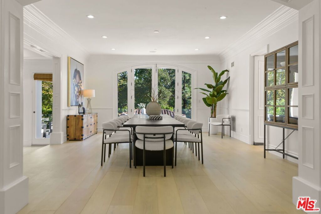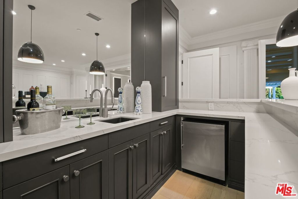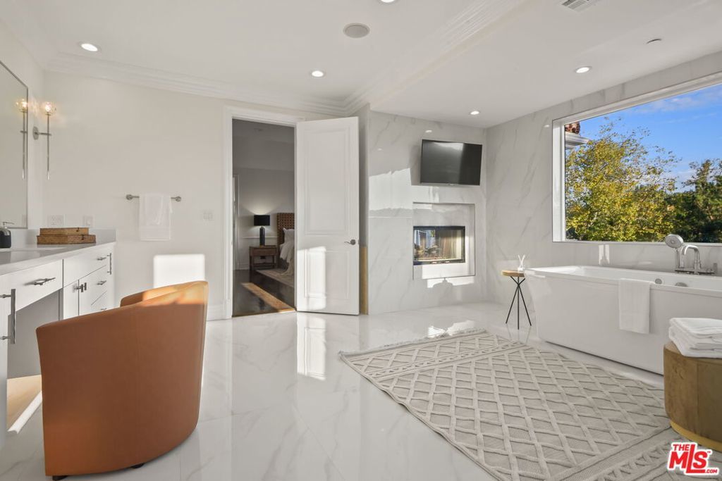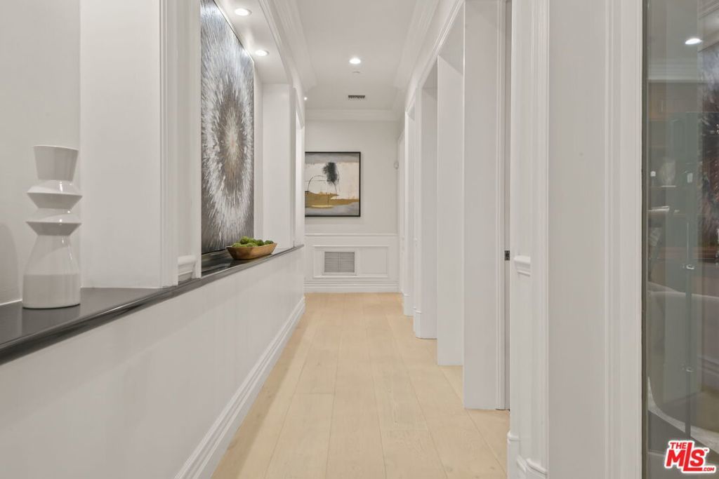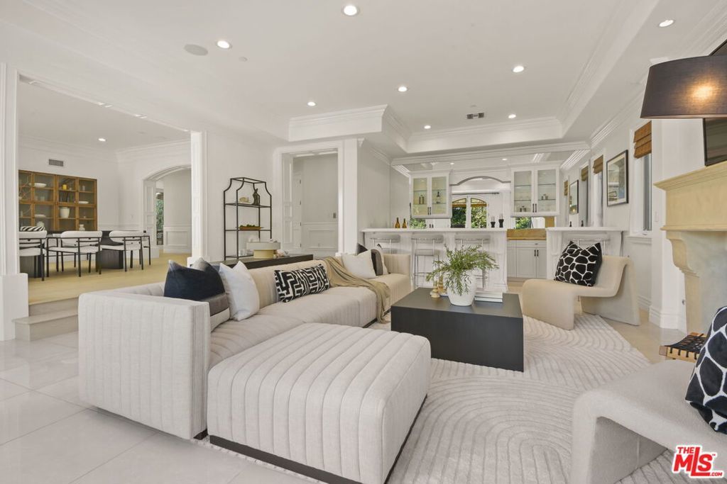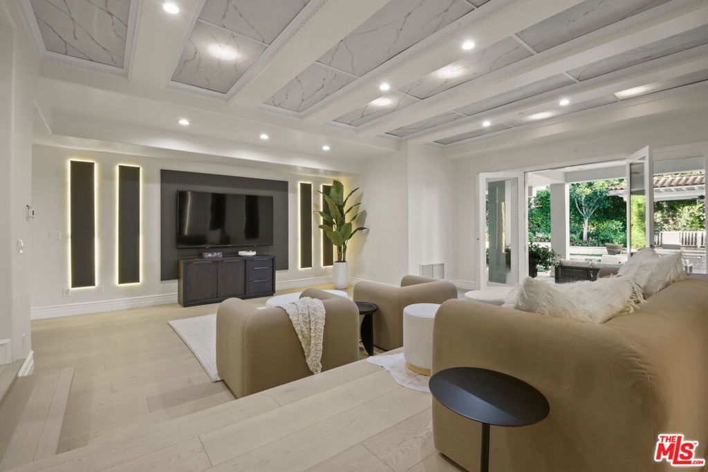 This Contemporary Mediterranean Estate is located in the highly sought after and exclusive 24-hour guard gated community of Bel Air Crest. Tucked away at the end of a quiet Cul-De-Sac with an additional gate shielding the driveway up to the home and adjacent to the greenbelt, this property is providing the utmost in privacy while still enjoying views of nearby MountainGate Country Club golf course and canyon. Stately impressions are made when entering into the foyer where you are met with soaring ceilings and a glass cupola dome, flagged by a double winged staircase exuding elegance. Seamlessly flowing into the formal dining room with French doors leading out to a 1,000 sq ft plus balcony overlooking the backyard and pool. The main level also boasts a gourmet kitchen, family room with fireplace, living room with fireplace, powder room and luxurious office space with built in bookshelves and a balcony. The upper level features an exquisite primary suite retreat with a private balcony, wet bar, double sided fireplace, steam and sauna in the renovated his and hers bathrooms and closets. There are 4 additional en suite bedrooms, one of which has its own private staircase entrance. The Garden level has 2 additional en suite bedrooms, a home theater, living/dining area with built in bar, wine cellar, gym, pool bathroom with shower, and laundry room with both indoor and outdoor access from the garden. The backyard is an entertainers dream with an additional 1,000 square feet covered patio complete with ceiling heat lamps, a built in BBQ and bar area, covered gazebo and beautifully redone pool and adjoining spa. Outdoor living in California at its best with these large entertaining areas surrounding the pool in addition to the outdoor deck added to the main floor. The community of Bel Air Crest offers 5 tennis courts, basketball courts, a dog park, playground and a newly remolded clubhouse with a well-equipped gym, meeting room, lounge space and kitchen. Live the perfect life in California.