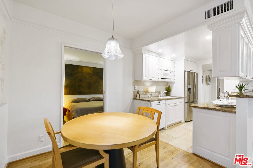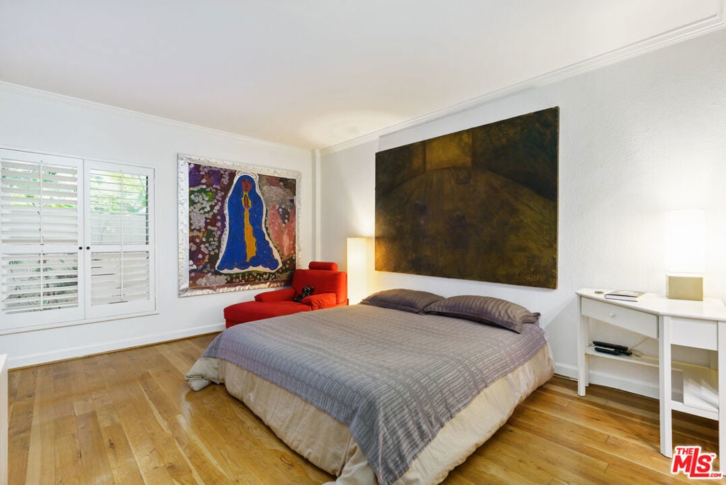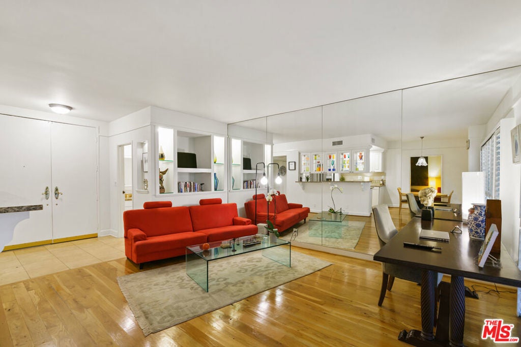 Amazing resort-style lifestyle in this stylish 1-bedroom, 1.5-bath condo at PARK WELLINGTON featuring a rare, EXTRA-large partially covered PRIVATE PATIO perfect for outdoor dining, lounging, or entertaining. The open-concept layout showcases contemporary flair with wood floors, an updated kitchen and remodeled baths. A wide sliding glass door floods the living space with natural light and creates an effortless indoor-outdoor flow. The private primary bedroom retreat includes an en suite bath and walk-in closet. Enjoy luxury amenities including a 24-hour concierge, pool with expansive sundeck, gazebo-covered spa, sauna, north/south tennis court, and a fully equipped gym. Ideally located in the heart of the best of West Hollywood, just moments to Sunset and Santa Monica Boulevards' famed dining, shopping, and nightlife, and minutes from Beverly Hills. A rare opportunity PRICED TO SELL!
