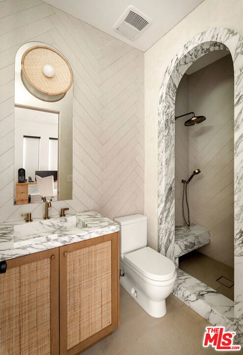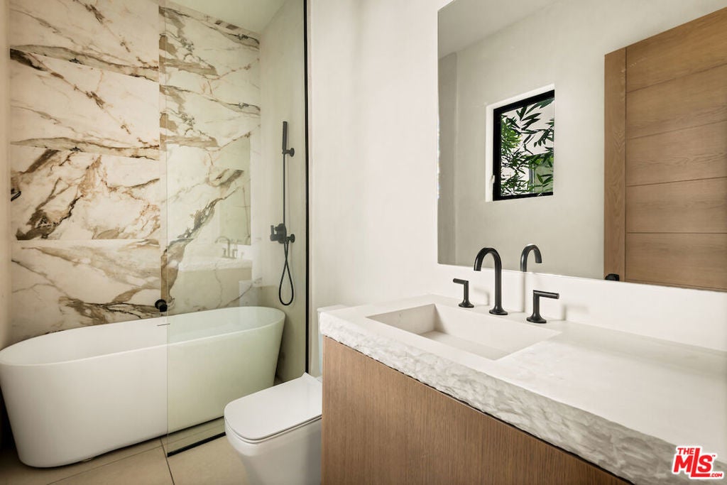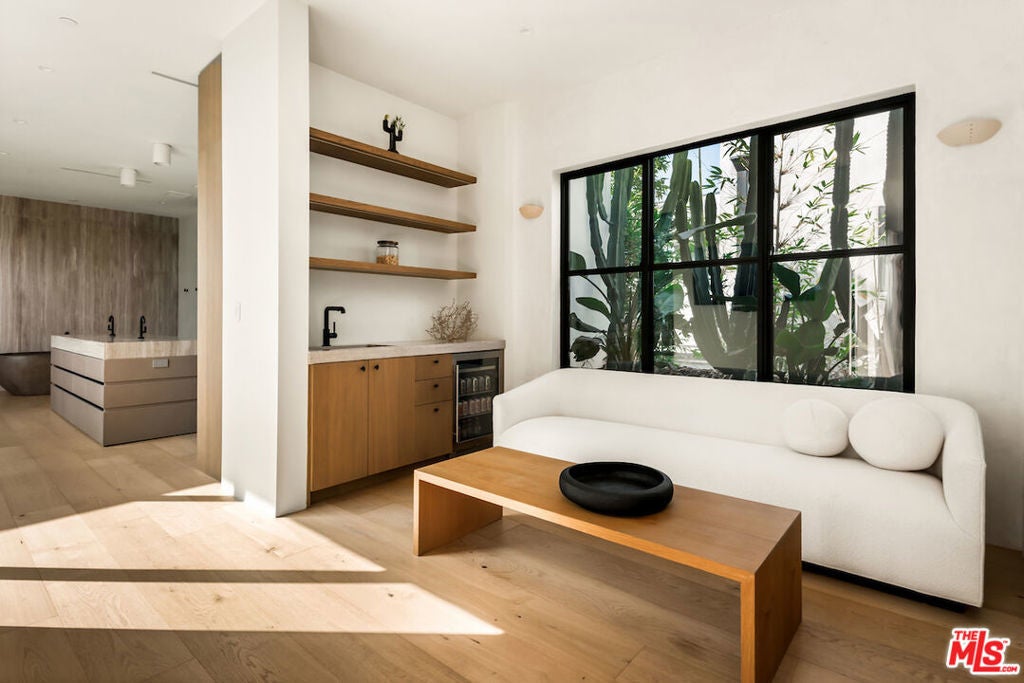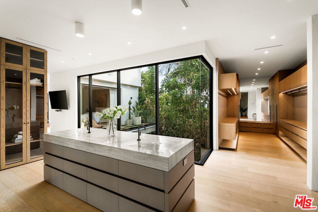 House of Shoor brings Minimalism to life in this 6,500+ square-foot residence set in the heart of the Melrose Arts District." The five-bedroom, six-bathroom floor plan showcases a resort-style primary suite, a private home theater, and an entertainer's backyard complete with a pool, lounge, and dining areas. At the heart of the home, the kitchen is outfitted with state-of-the-art Miele appliances and anchored by a striking hand-carved stone island. Designed with intention, the expansive open layout creates a seamless flow to the serene, secluded backyard, while a rooftop deck delivers unobstructed 360-degree views of the city skyline. Free of unnecessary ornamentation, the architecture embodies the essence of minimalismclean lines, natural materials, and thoughtfully integrated spacesresulting in a tranquil, luxurious retreat tucked into the energy of one of the world's most dynamic neighborhoods.