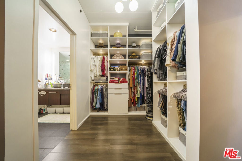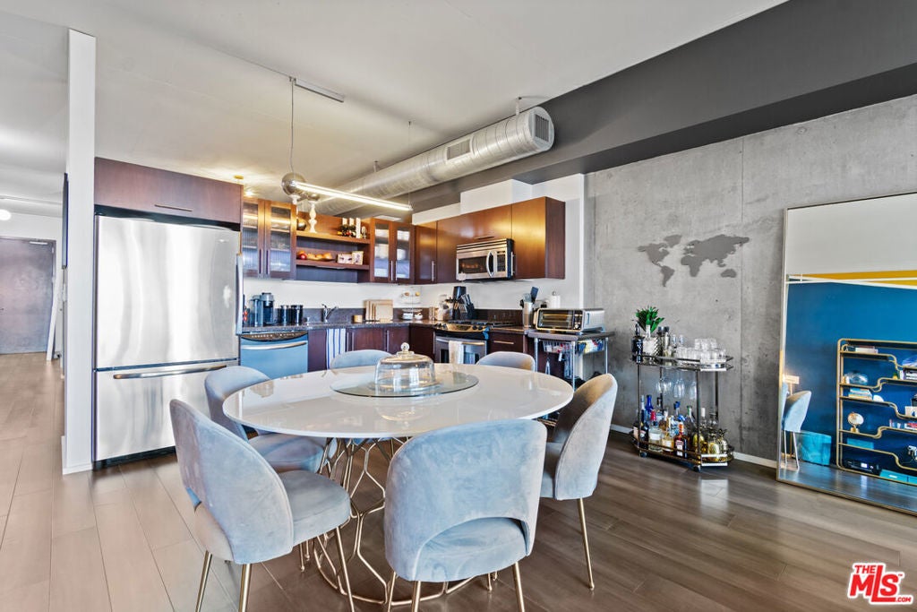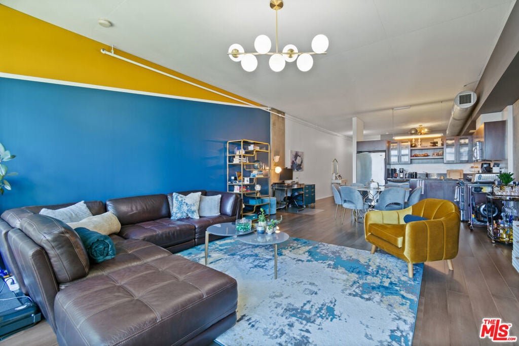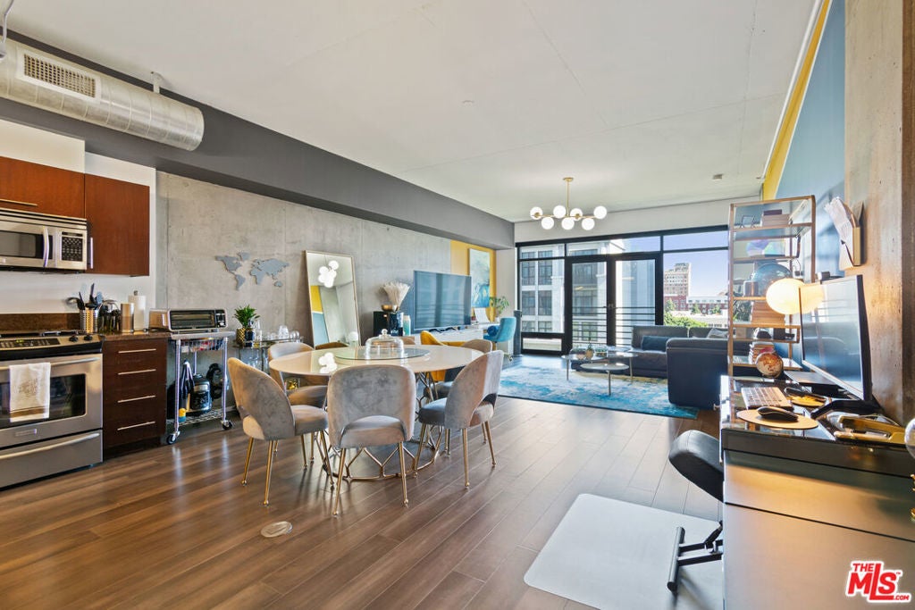 Xtra Large living space, many upgrades throughout, includes a separate storage unit next to your parking space, AND a dedicated EV charger. Rare opportunity to own one of the largest and most livable one-bedroom, one and a half bath units at Elleven in DTLA's Social District. This wide and open floor plan offers true comfort and functionality, with soaring ceilings, engineered maple hardwood floors, expansive east-facing windows, and glass doors that open to a Juliet balcony for fresh air flow and unobstructed park and city views. The spacious kitchen with vented range connects seamlessly to the oversized living area, ideal for both entertaining and everyday living. Bathrooms have been updated, and the custom walk-in master closet with shelving and mood lighting is a showpiece. A larger utility room with designer shoe racks, full-size vented washer/dryer, and a 3-year-old AC system add to the livability and convenience. One parking space with EV charger and a large storage unit located next to parking are also included. Elleven is a modern, full-service high-rise with 24-hour front desk and security, on-site management, and a 4th-floor terrace featuring Viking BBQs, pool, spa, fire pit, and lounge areas. Steps to Crypto.com Arena, LA Live, the Convention Center, Whole Foods, coffee shops, Pine & Crane, Prank Bar, and the weekly Saturday Farmers Market. Close to Pico Metro, FIDM Park, and USC, this location keeps you connected to all of DTLA. With excitement building for the 2026 World Cup, 2027 Super Bowl, and 2028 Olympics, downtown is on the rise. This rare, larger residence at Elleven offers the lifestyle, space, and location that set it apart.