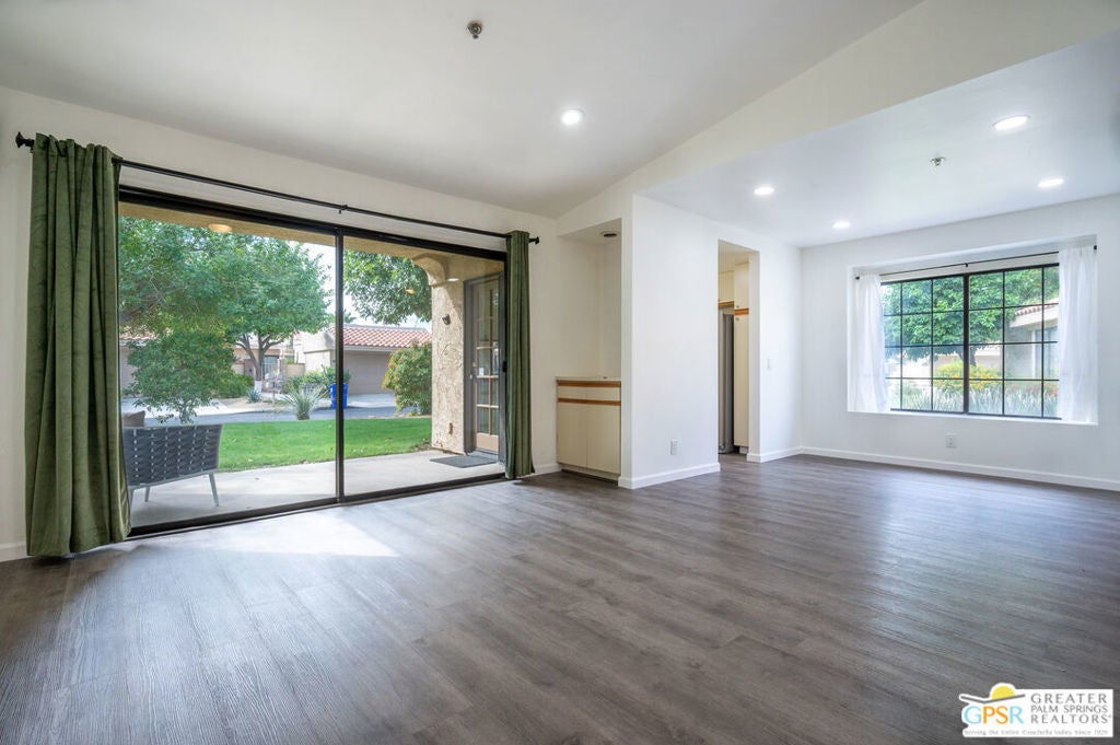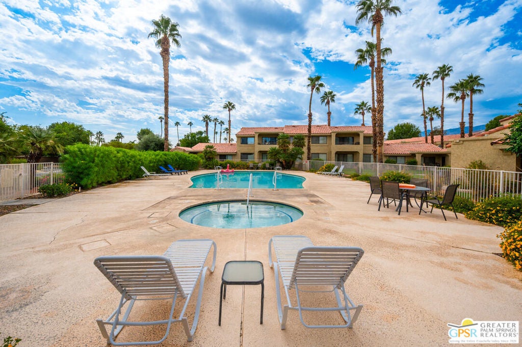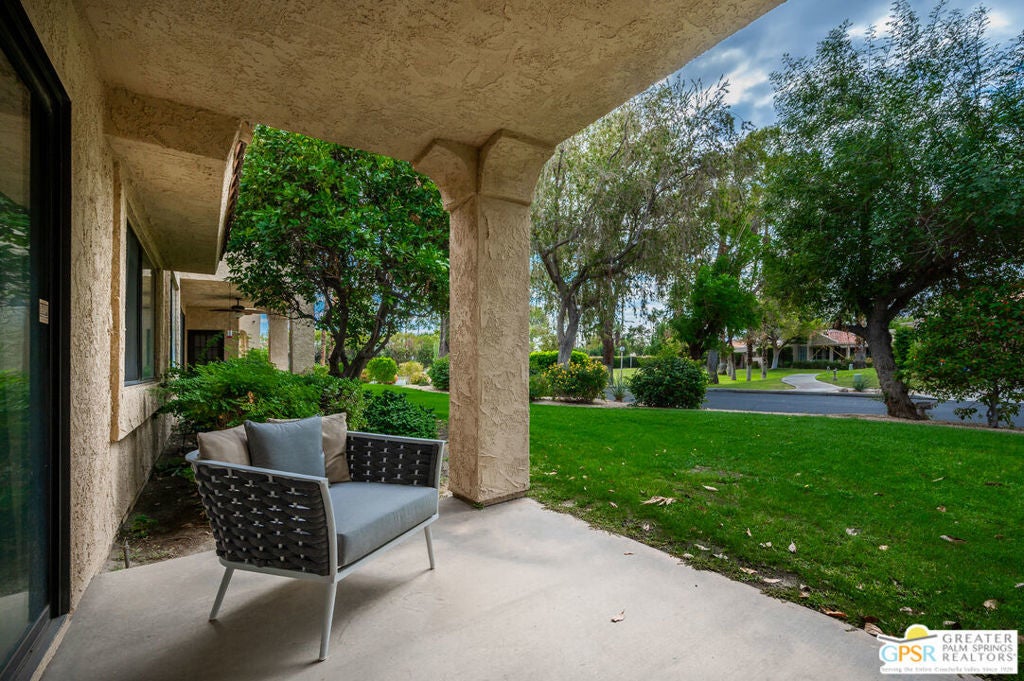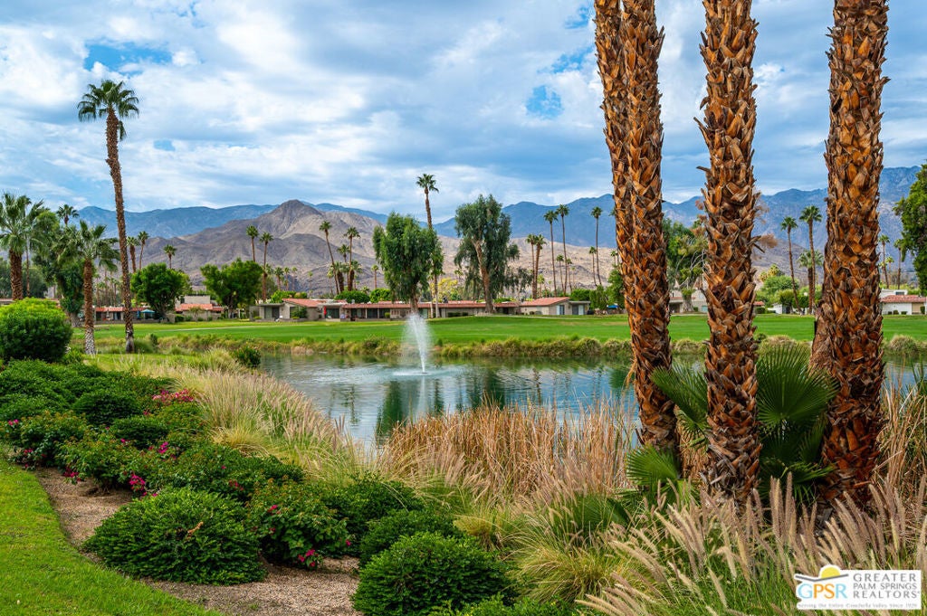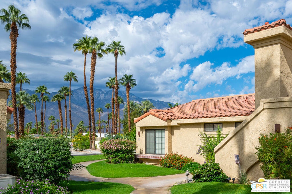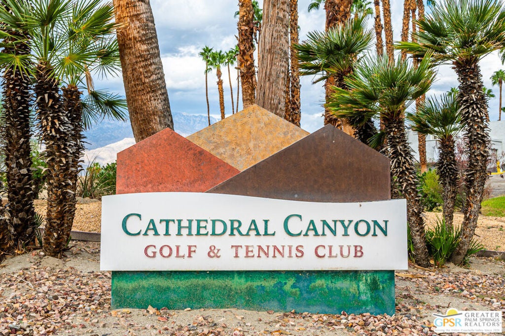 Experience resort-style living at its finest in this move-in-ready, rare single-story condo located within the coveted Cathedral Canyon Country Club. Perfectly situated between Palm Springs and Palm Desert, this beautifully updated 2-bedroom, 2-bath residence offers the ultimate blend of comfort, sophistication, and desert charm. Step inside to discover a freshly renovated interior featuring smooth, popcorn-free ceilings, new recessed lighting, modern ceiling fans, all-new outlets, and stylish new flooring and baseboards. The kitchen gleams with brand-new stainless steel appliances, making it a joy for everyday living or entertaining. Step outside to your private patio and take in breathtaking mountain views - the perfect backdrop for morning coffee, al fresco dining, or sunset cocktails. This beautifully maintained community has sparkling pools and spas, tennis courts, an 18-hole golf course and clubhouse all set against the dramatic San Jacinto Mountains. Enjoy peace of mind with an HOA that covers landscaping, exterior maintenance, roof, pools/spas, and security gates. The community is pet-friendly, allowing up to three pets per household. Schedule your private showing today and fall in love the moment you arrive.