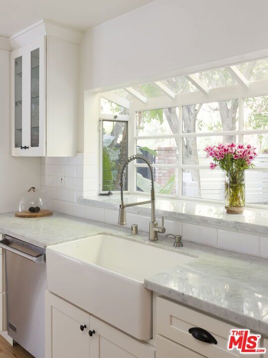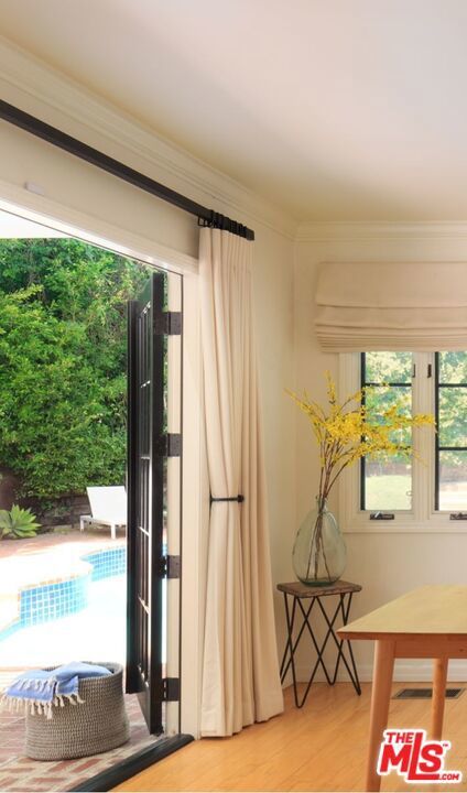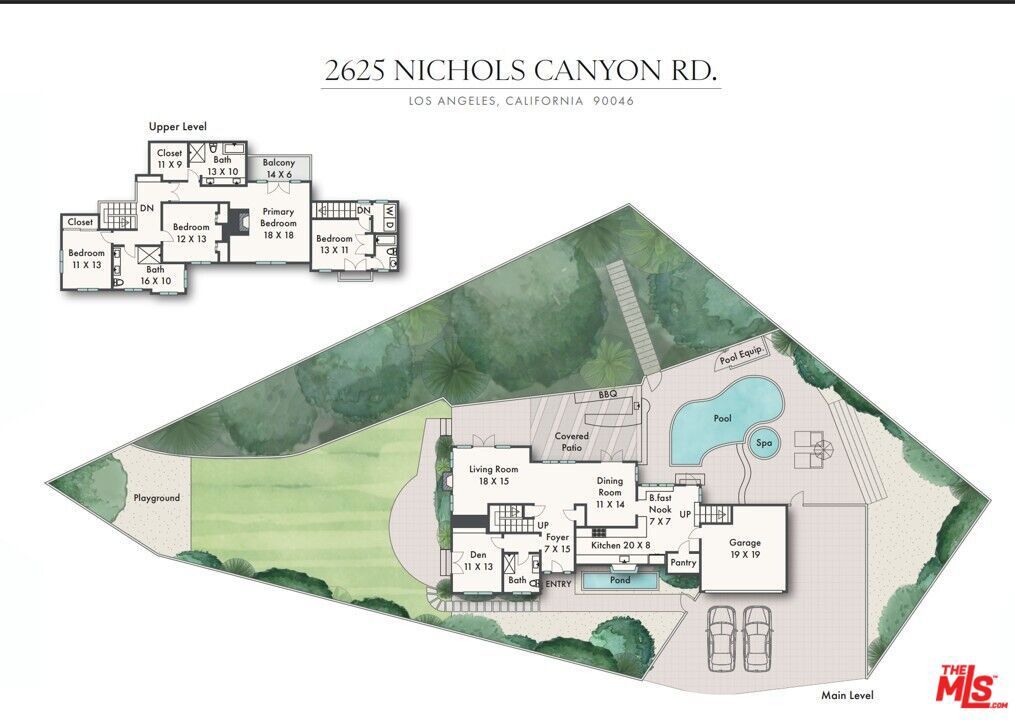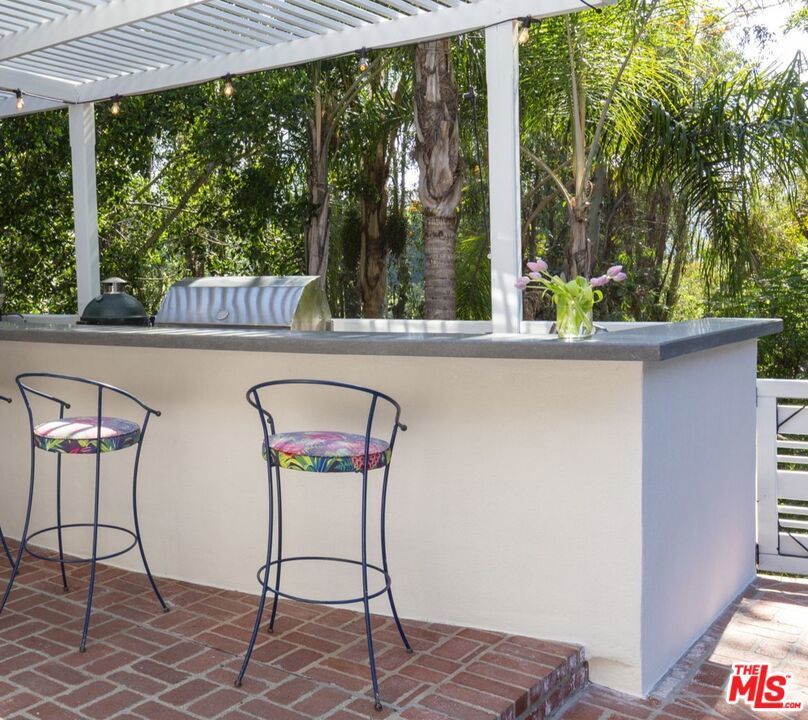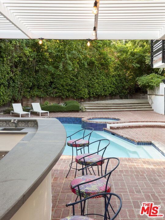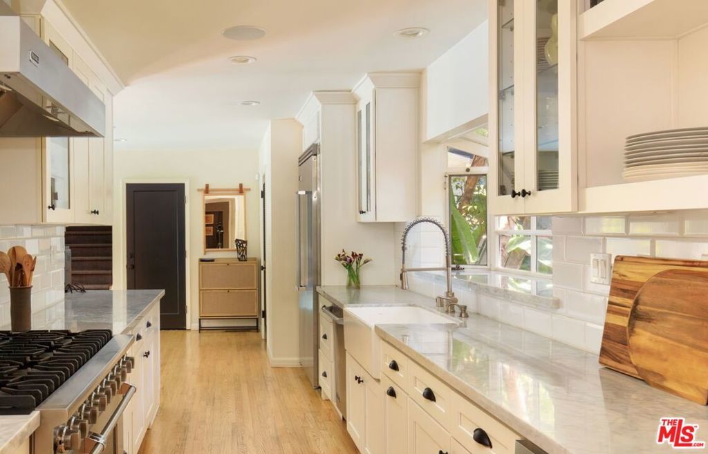 Nestled in the coveted enclave of Nichols Canyon, this warm, sun-drenched retreat is a masterclass in timeless California living. Set on a rare flat lot in the Hollywood Hills, the refined traditional residence has been thoughtfully curated to be as tranquil for everyday living as it is for unforgettable entertaining. A private oasis in every sense, the home features a spacious primary suite with double door entrance, private balcony, fireplace, walk-in closet and luxurious bath. There are three other substantial bedrooms as well as separate guest quarters with its own balcony overlooking treetop views. The striking living room, anchored by a fireplace and soaring double-height windows, frames the lush greenery beyond. In the heart of the home, a gourmet kitchen with Viking appliances and generous counter space flows seamlessly into a light-filled dining area. Outside, the property transforms into a secluded resort. Tropical landscaping surrounds an expansive yard where a sparkling pool and spa take center stage. An outdoor shower adds a touch of luxury, while the fully outfitted custom kitchen is perfect for al fresco dining from sunlit breakfasts to twilight dinner parties under the stars. Just moments from the hiking trails of Runyon Canyon and with easy connections via Mulholland Drive, Hollywood Boulevard, and nearby freeways, this transcendent Nichols Canyon hideaway offers a rare fusion of style, space, and seclusion in one of Los Angeles' most sought-after neighborhoods.