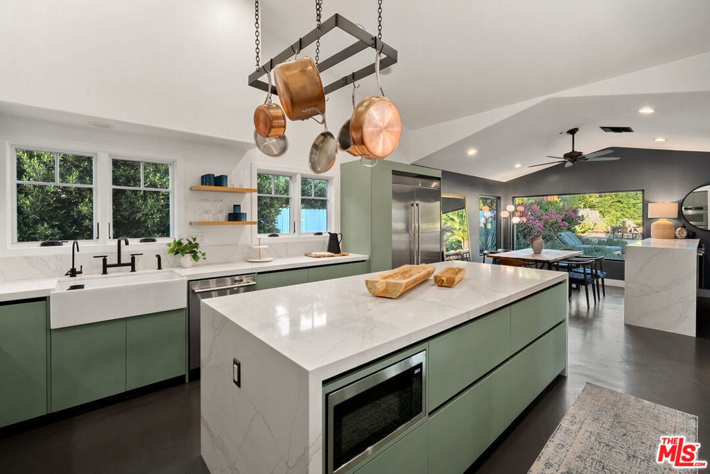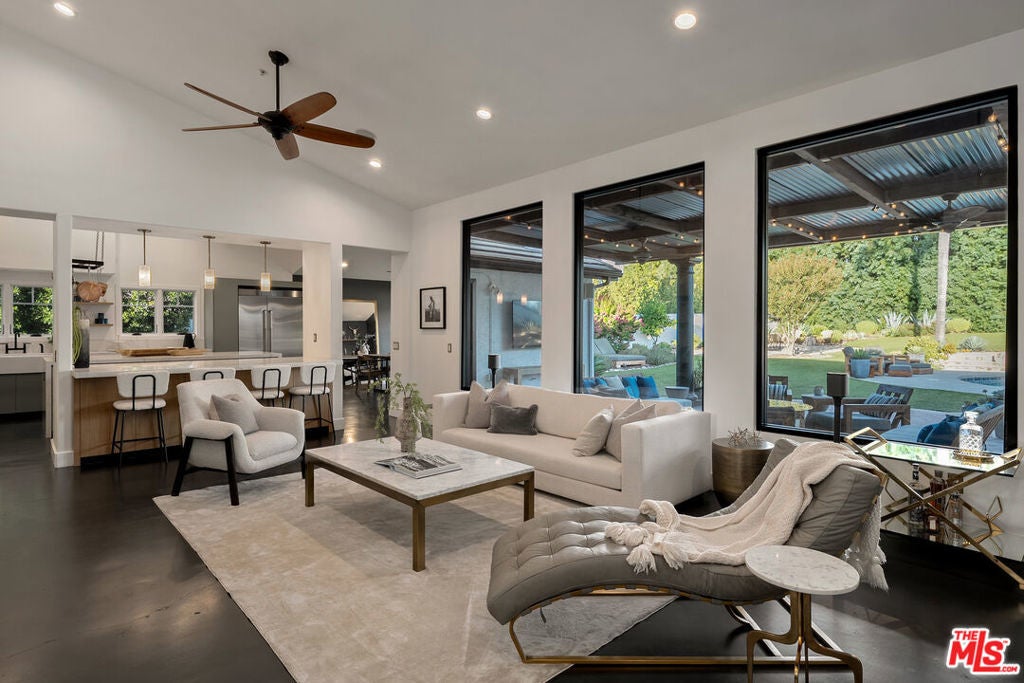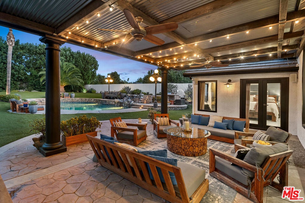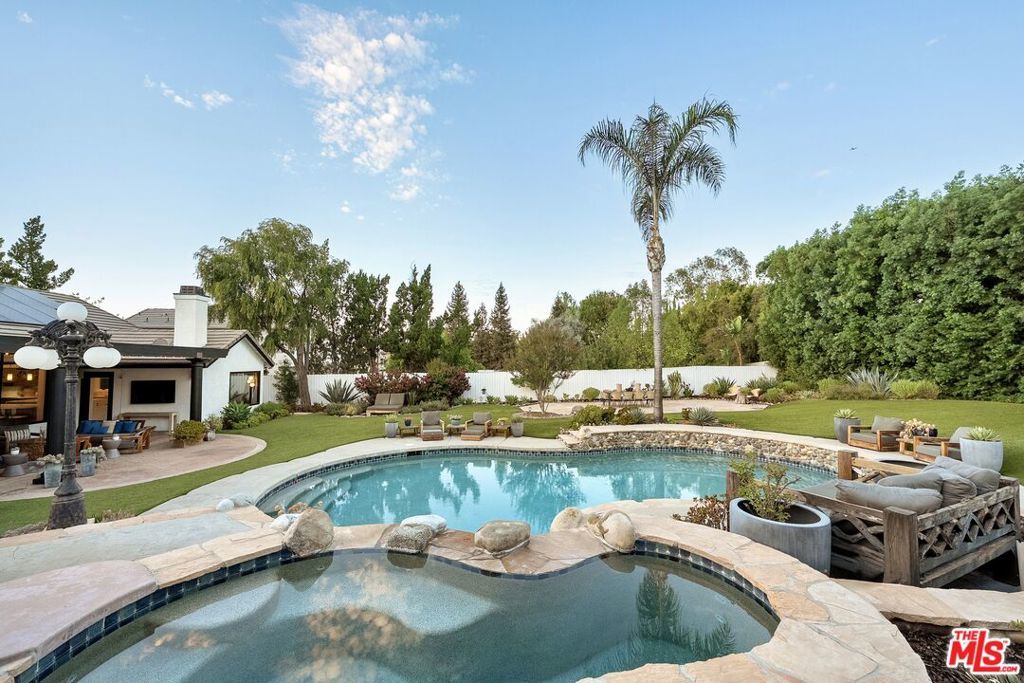 Tucked behind the private gates of coveted Penfield Estates, this single-story residence sits on a sprawling 25k+ sq ft flat lot and offers the ultimate in California indoor-outdoor living. With an open floor plan and thoughtfully curated upgrades throughout, this entertainer's paradise feels like a private resort designed for both relaxation and unforgettable gatherings. Boasting 4 beds/3 baths, the property features a saltwater pool and jacuzzi, a newly renovated chef's kitchen with custom cabinetry and quartz countertops, and expansive picture windows that frame serene views of the backyard oasis from the moment you enter. Additional highlights include a brand-new HVAC system, fully owned solar panels, built-in speakers throughout, custom built-in bar with 2 wine fridges, added built-ins for additional storage throughout and a whole-home water filtration system from LifeSource - just a small glimpse of the extensive upgrades thoughtfully integrated throughout the home. Step outside to two separate expansive patios - your personal havens for al fresco dining and lounging. Both front and backyards feature mature drought-tolerant landscaping, artificial turf, and a new irrigation system to effortlessly maintain its beauty. The primary suite is a true retreat, with wide-plank oak floors, a fully renovated spa-like bathroom, walk-in closet and French doors that open directly to the covered patio. Wake up to unobstructed views of the pool and lush backyard - your morning coffee never looked so good. This home offers far more than meets the eye, every detail has been elevated to create a lifestyle of comfort, luxury and connection.