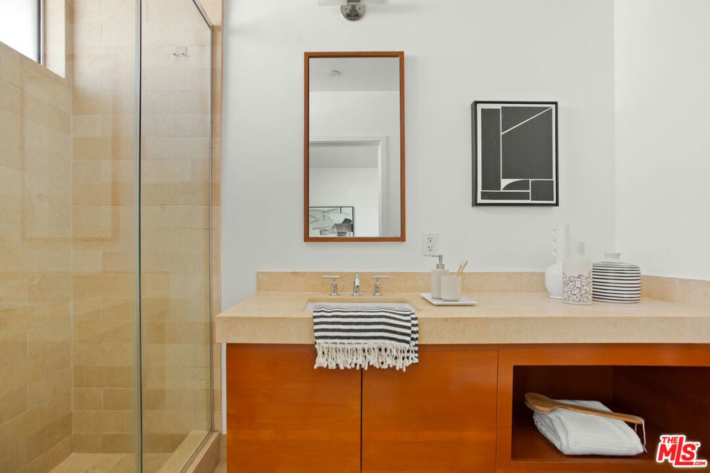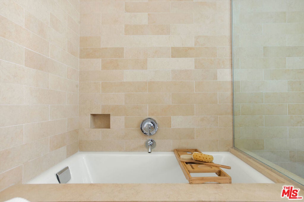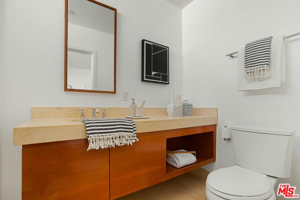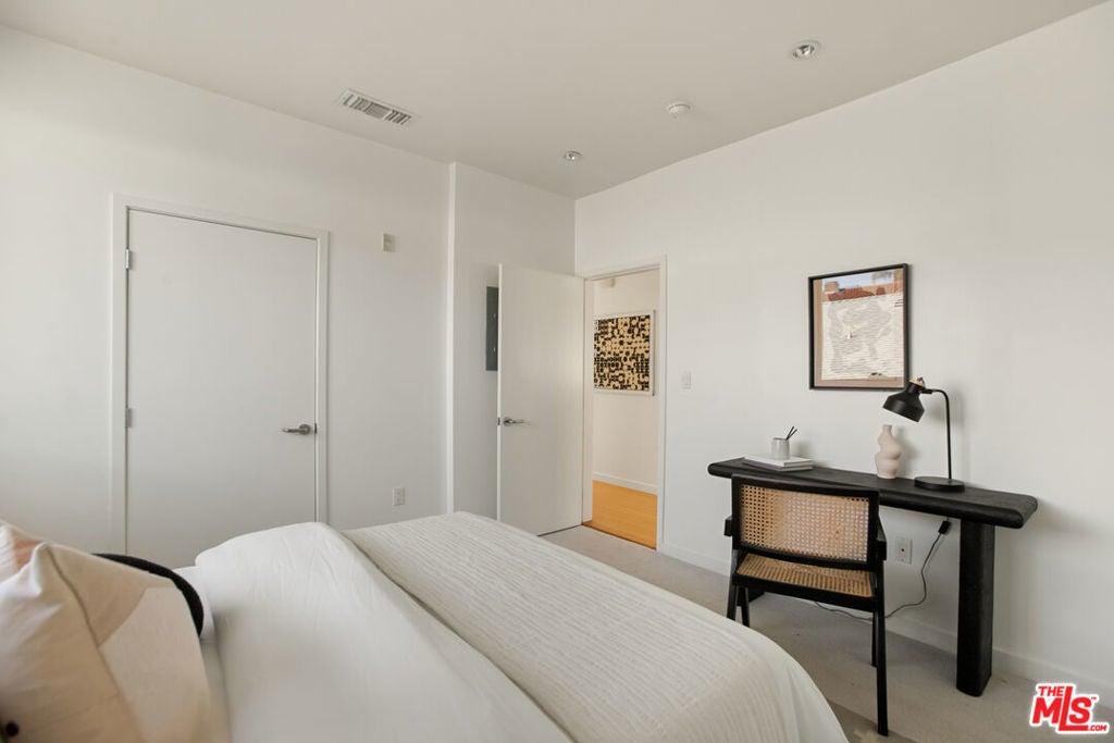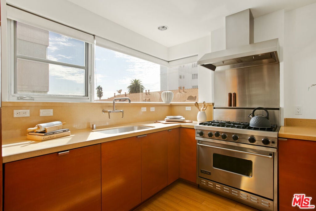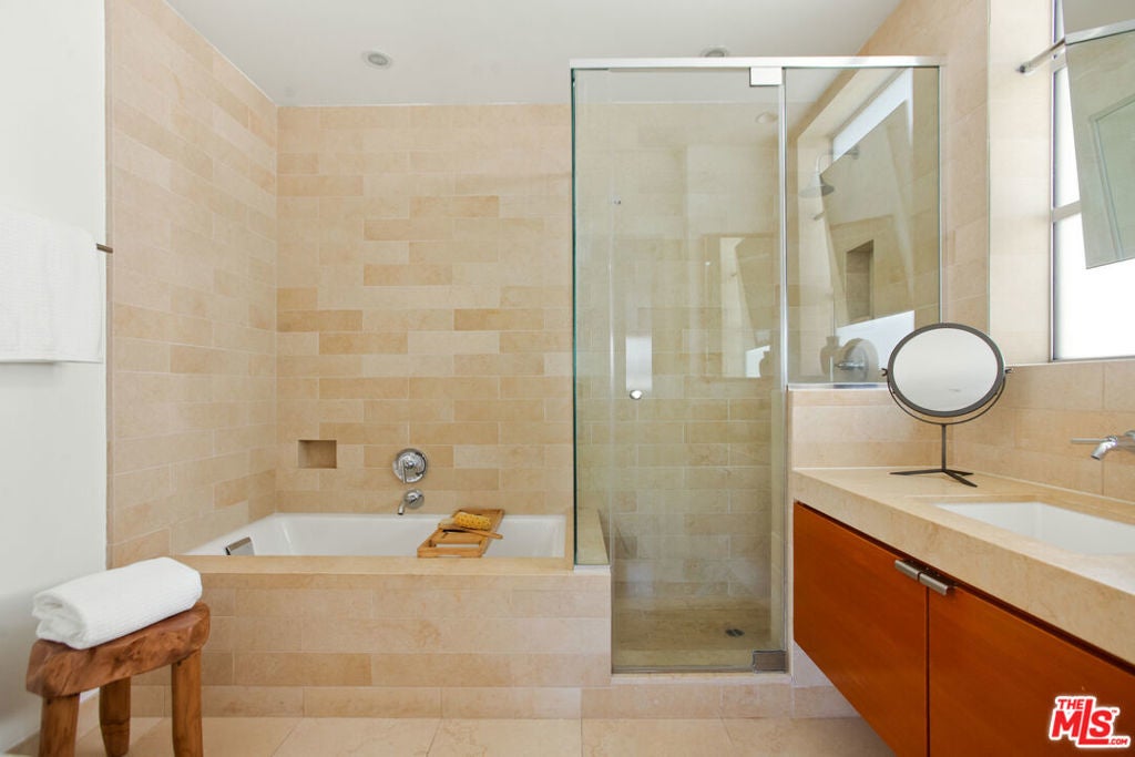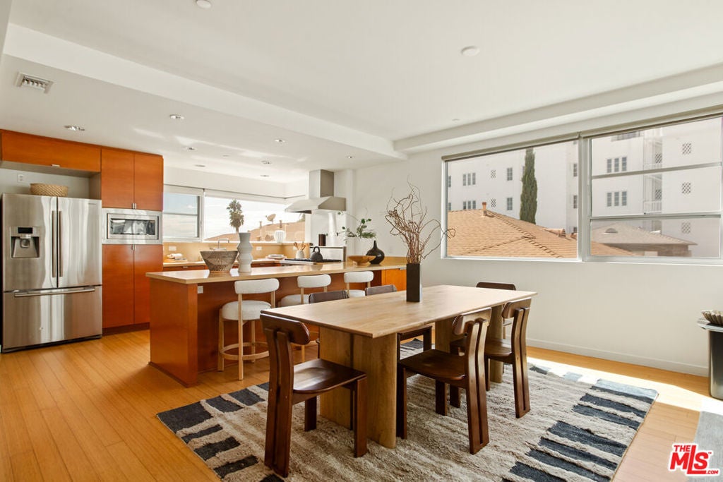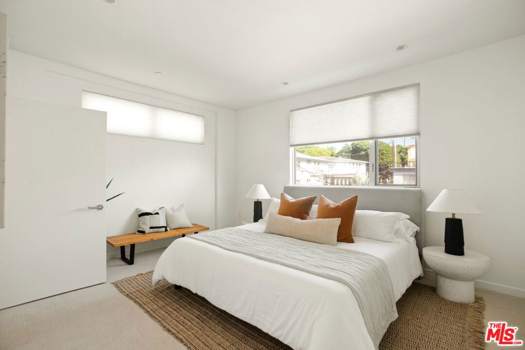 Discover your architectural urban home just off the famed Sunset Strip with exceptional dining, shopping, and entertainment just moments away. Tucked quietly at the rear of this boutique building with only 7 units, enjoy rare tranquility amidst the city's vibrancy with the unique advantage of having no common walls with other units, creating privacy and calm. This modern condo offers a seamless blend of style and convenience. Immediately sense the thoughtful design through the entryway hall opening up to single-level living, with an open concept kitchen with southern views and bar seating, ideal for ease and entertaining. Contemporary and upscale finishes create an inviting retreat while oversized windows encompassing all directions and floor-to-ceiling terrace walls of glass bathe the space in natural light. Step onto your private oversized terrace creating outdoor additional living space. Expansive primary suite offers ample closet space and a spa-like separate soaking tub and glass enclosed shower. The second bedroom/flex space features a walk-in closet and well appointed ensuite bathroom for guests. Convenient in-unit stacked laundry and two tandem parking spots included. Building amenities offer secure lobby entry, oversized elevator, courtyard area, and subterranean gated garage with guest parking.