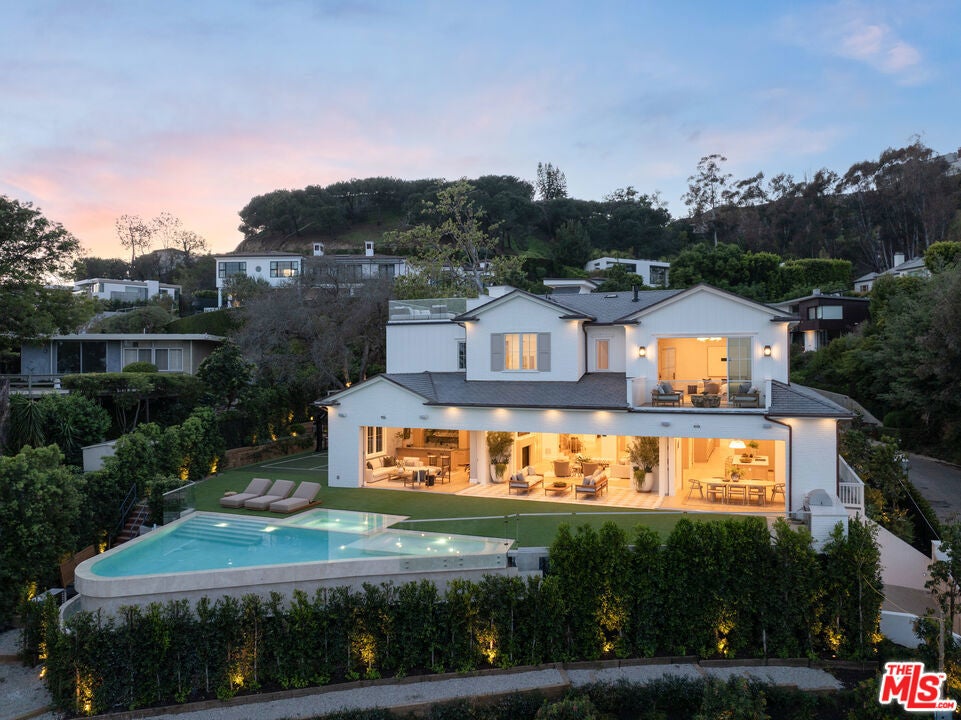 Perfectly poised in the prestigious Palisades Riviera just minutes from San Vicente and Brentwood, this newly completed architectural estate represents extraordinary value in today's market. Built by AMG Capital and Ortam Construction with interiors by the acclaimed Morrow&Co, this 10,400+ SF residence is a masterwork of design commanding sweeping ocean, city, and mountain views. From the moment you enter, soaring ceilings and walls of glass reveal a seamless connection to the grounds beyond, where curated landscapes frame a resort-style pool, expansive lawn, private pickleball court, and a rooftop deck with an outdoor kitchen capturing 360-degree views of the ocean, city, and mountains. Inside, elegant formal spaces unfold with an effortless indoor-outdoor rhythm, complemented by a state-of-the-art chef's kitchen, striking bar and lounge, two private offices, a dedicated wellness center with sauna and gym, and a grand movie theater. The expansive primary suite is a private sanctuary with a panoramic view balcony, dual boutique-style closets, and a resort-style spa retreat with soaking tub and oversized shower envisioned for indulgence and repose. Throughout, bespoke furnishings by Vesta Home, in collaboration with Olive Ateliers echo the architectural language of the home and are available for purchase. An oversized 10-car garage completes the estate, providing secure accommodation for an exceptional fleet. With land and build costs near to or exceeding purchase price, in addition to the years required to achieve this level of design and craftsmanship, this residence offers immediate ownership of a fully realized masterpiece without the years of planning, permitting, and construction oversight. You could not purchase this ocean and city view lot and rebuild this home for this price today.
