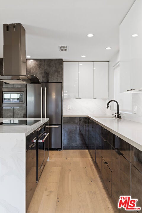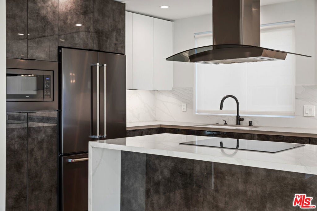 Welcome to The Palmer; the finest luxury apartments available in Beverly Hills. Bright, top floor, PENTHOUS UNIT. This apartment home has been meticulously renovated. Every surface and element is new; no detail has been spared. Gorgeous interiors features. European white oak hardwood floors, white honed quartz slab counters, stainless steel appliances, LED recessed lighting throughout, completely redone kitchen and bathrooms. Designer fixtures in matte black and champagne bronze, Calcutta Porcelain wall tiles and Herringbone Porcelain floor tiles in gray/blk adorn the bathrooms. NEST thermostats control the climate of the central heating & AC. Washers & dryers are featured in unit. New double-paned windows and sliding patio doors allow an abundance of natural light to grace the interiors. A private elevator services the Penthouse exclusively. A remarkable place to call home, situated in the heart of Beverly Hills w endless amenities at your nearby convenience. PARKING SPACES ARE TANDUM AND GATED.