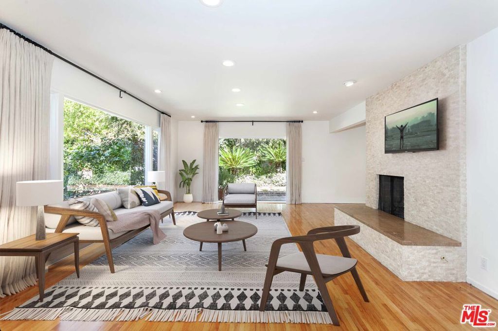 Welcome to Casa Paradiso, a 3-bedroom, 2-bathroom renovated single-story home. This private retreat features hardwood floors, wood burning fireplace, and a gourmet kitchen with new appliances. The primary suite includes built-ins and renovated bath, complete with soaking tub. Lush outdoor areas boasts large pool, fountains, and gas BBQ, perfect for outdoor relaxing/entertaining. A circle driveway and 2-car garage provide parking for up to 8 cars. Additional features include electric car charger, weekly pool & garden service, as well as exterior watering paid for by the landlord. Located in prime BHPO, just 5 minutes from prime Beverly Hills and easy access to Studio City.