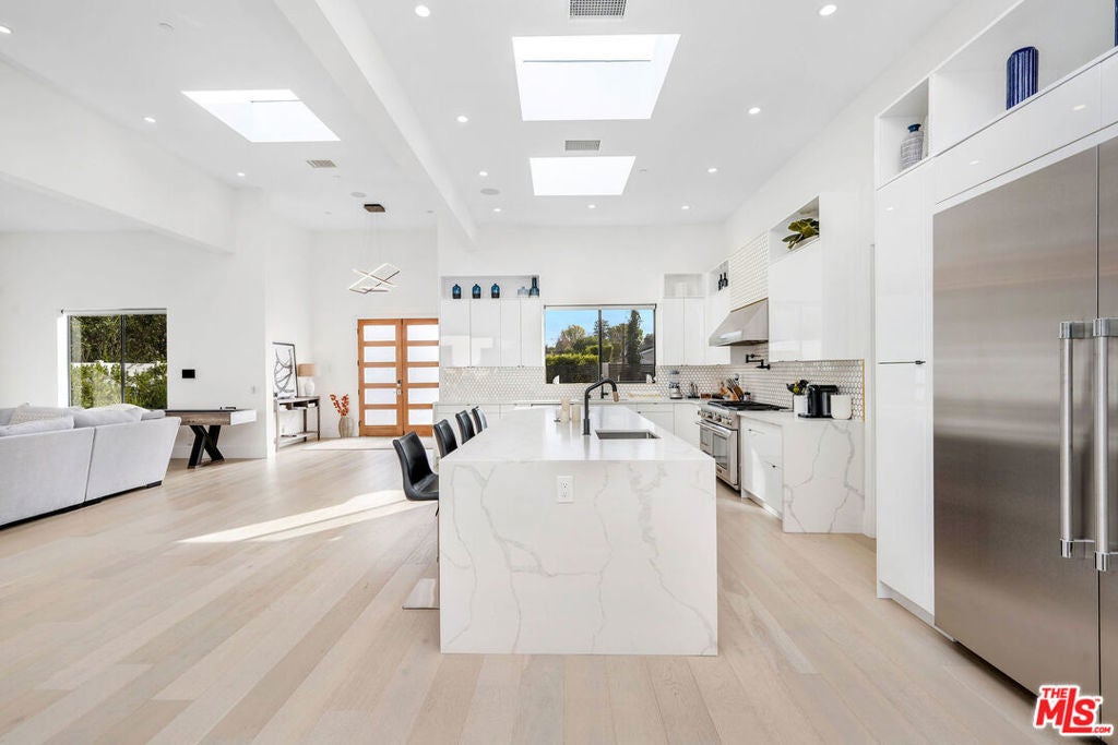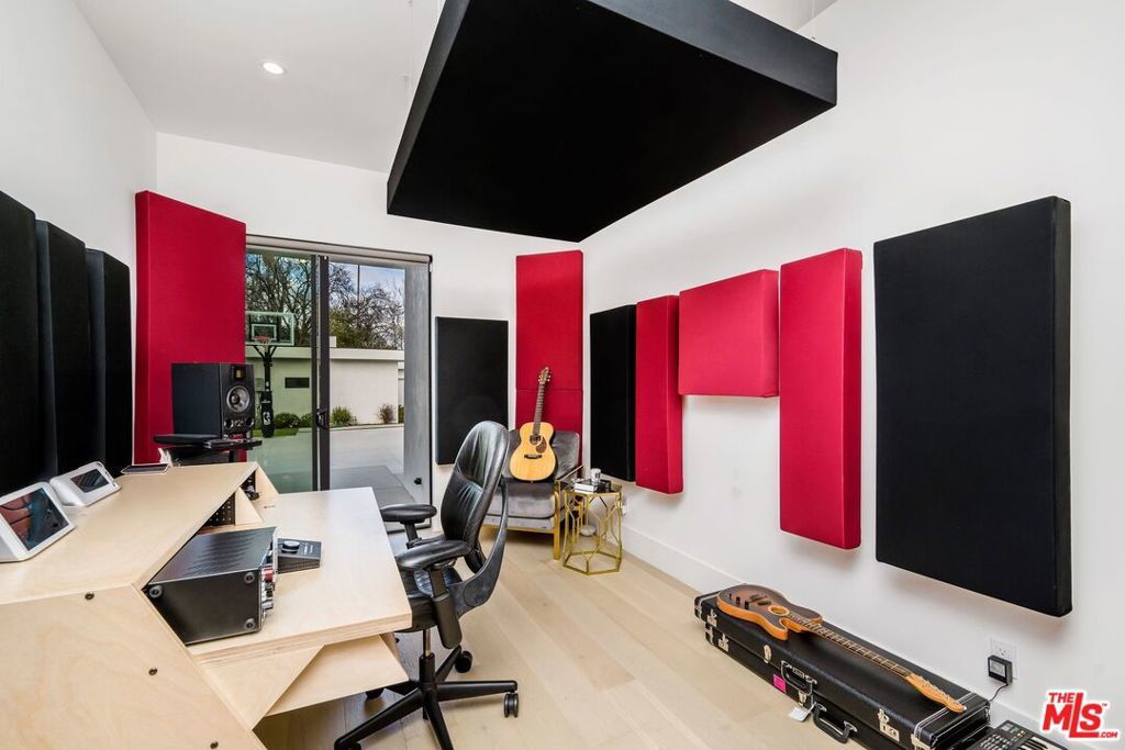 Welcome to Woodland Hills, where luxury meets creativity in this exquisite home featuring a state-of-the-art detached professional recording studio. This fully equipped facility is a dream for music enthusiasts and includes a complete production suite along with a soundproof recording booth. Additionally, an auxiliary studio located within the main house offers flexible space for various creative projects, from streaming to podcasting and production.The main residence showcases a sleek, modern design complemented by warm finishes, striking the perfect balance between style and comfort. With four spacious bedrooms and five and a half bathrooms spread across 5,000 square feet, this home boasts an expansive open layout that flows effortlessly throughout. The kitchen, living, and dining areas harmoniously connect, surrounding a beautiful pool and spa that serve as the centerpiece of this stunning property. The primary suite is a true sanctuary, featuring an oversized walk-in closet and a luxurious bathroom designed for relaxation and rejuvenation. This Woodland Hills gem is not just a home; it is an entertainer's paradise and a hub for creativity, perfect for hosting gatherings or cultivating artistic endeavors.