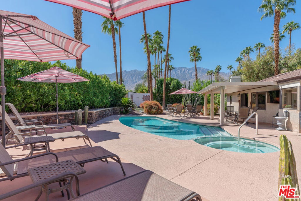 Superb long-term rental opportunity located on a beautiful corner lot in the quiet residential community of Los Compadres (The Friends) in South Palm Springs! Large 4-bedroom 3-bath unfurnished home with vaulted ceilings through-out the main living areas. Spacious Formal Living/Dining Room combo with fireplace opening to a sun filled private Patio with welcoming pool, spa and breathtaking mountain views! Large kitchen with center island, granite counters, stainless steel appliances, excellent storage, and breakfast bar that opens into a warm and inviting family room with custom built entertainment center and bar area. Master bedroom suite is totally separate from the 3 guest rooms for total privacy. All guest rooms are centered around a large guest bathroom with a walk-in shower and double vanity. The desert landscaped backyard with citrus trees is great for entertaining with spacious covered patio area, pool and fountains. Truly a wonderful find!