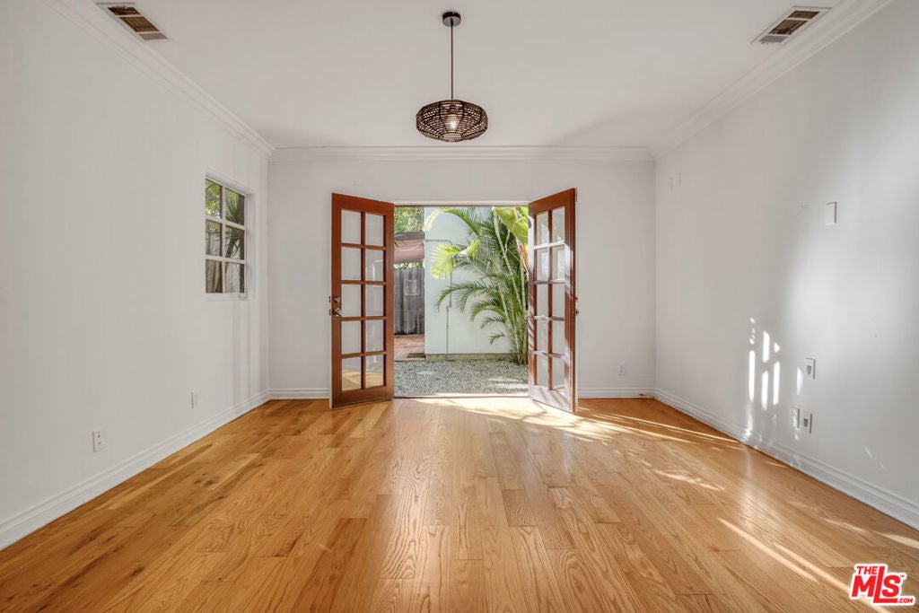 Introducing a Spanish home, in the heart of the city! This property is composed of two separate structures- one in the front and one in the back. The Front Home features 3 bedrooms and 3 bathrooms, one story. The separated structure nested in the back of the lot features 2 expansive bedrooms, 2-1/2 bathrooms, 2 stories tall. Spacious front yard, elegant patio & luscious backyard garden. Private and secure- Tall Block walls and soaring high natural hedges surrounding the property. Stainless steel appliances, Granite and tile in the kitchen. Hardwood floors throughout. Fireplace and big windows in the living room. Separate dining room with historic beams in the ceiling. Central A/C & heating. Ideal for Roommates that want to live comfortably! Location Location Location!!! Walking distance to local cafes, shops, Beverly Center and the Grove. Tenants pay all utilities and verify all square footage to their satisfaction.