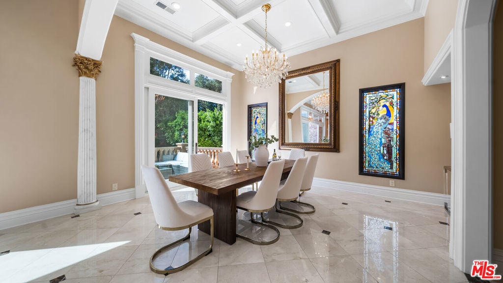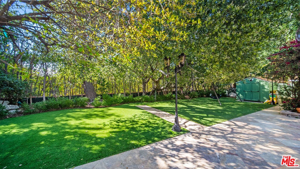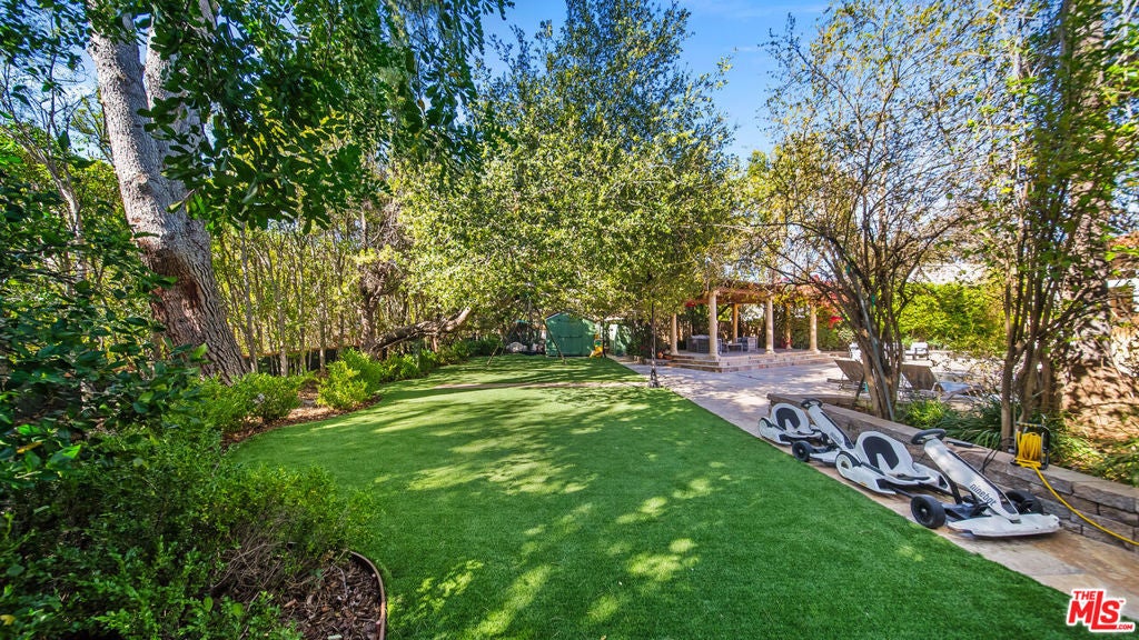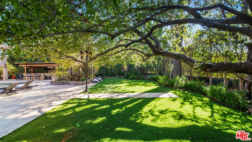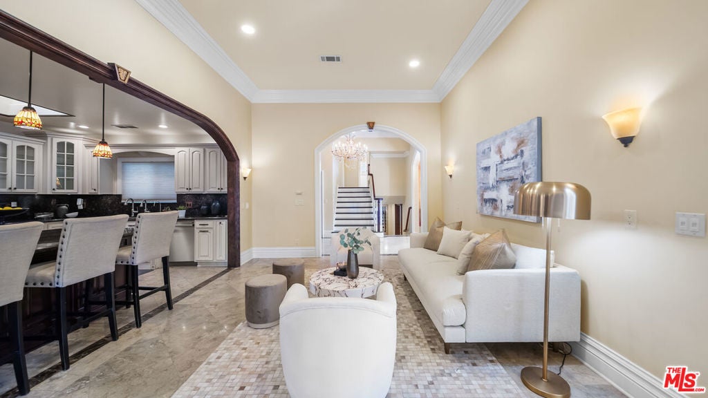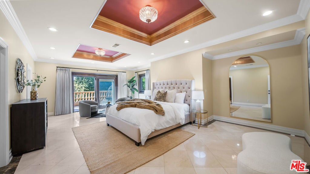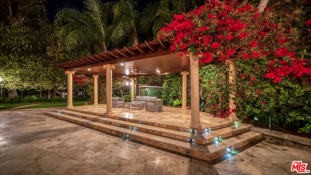 Exquisite Mediterranean Estate in Chatsworth! Welcome to this elegant, reimagined beauty in the heart of Chatsworth! Nestled on an expansive 18,000+ SQFT lot, this luxurious 5-bedroom, 4-bathroom residence offers nearly 4,300 SQFT of living space, showcasing high-end finishes and impeccable craftsmanship.From the moment you enter, you'll be captivated by soaring ceilings, stunning custom arches, and gleaming marble floors bathed in natural light. The state-of-the-art chef's kitchen is a true masterpiece, featuring a 6-burner gas Wolf range, built-in custom Sub-Zero refrigerator, oversized eat-in island, skylight, dramatic marble backsplash, and stainless steel farmhouse sink. Designed for grand entertaining, the formal living and dining areas boast coffered ceilings, Roman/Greek columns, dazzling chandeliers, and an elegant White Carrara marble fireplace. A second living room on the lower level offers a full wet bar, Italian-inspired fireplace, and custom sliding doors leading to the breathtaking backyard.Step outside to your private oasis, where travertine floors, an expansive patio, and a full outdoor kitchen create the ultimate indoor-outdoor living experience. Take a dip in the sparkling pool, surrounded by lush greenery and resort-style landscaping. The luxurious primary suite features a private balcony, generous walk-in closet, sunken jetted tub, glass-enclosed shower, and dual vanities with a makeup counter. With two additional bedrooms upstairs and two on the lower level, this home offers ample privacy and space for family and guests. Owned Solar! A custom 3-car garage with a workbench and storage completes this extraordinary home. This estate truly has it all elegance, space, and resort-style living! Don't miss this rare opportunity! Schedule your private showing today! CLICK ON THE VIRTUAL TOUR LINK FOR A FULL VIDEO.