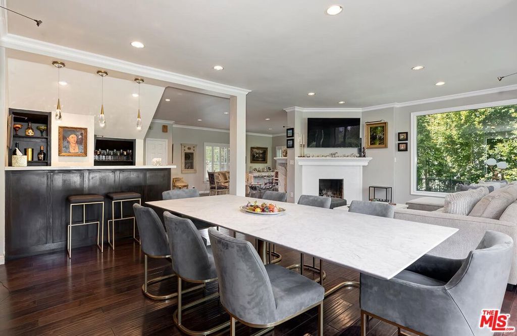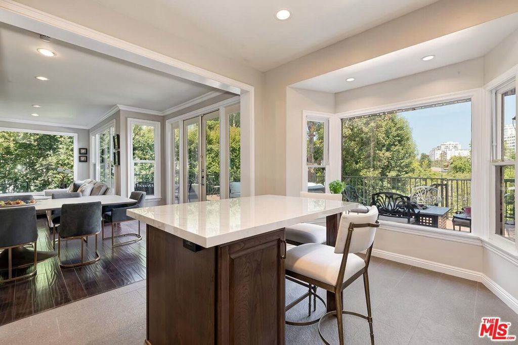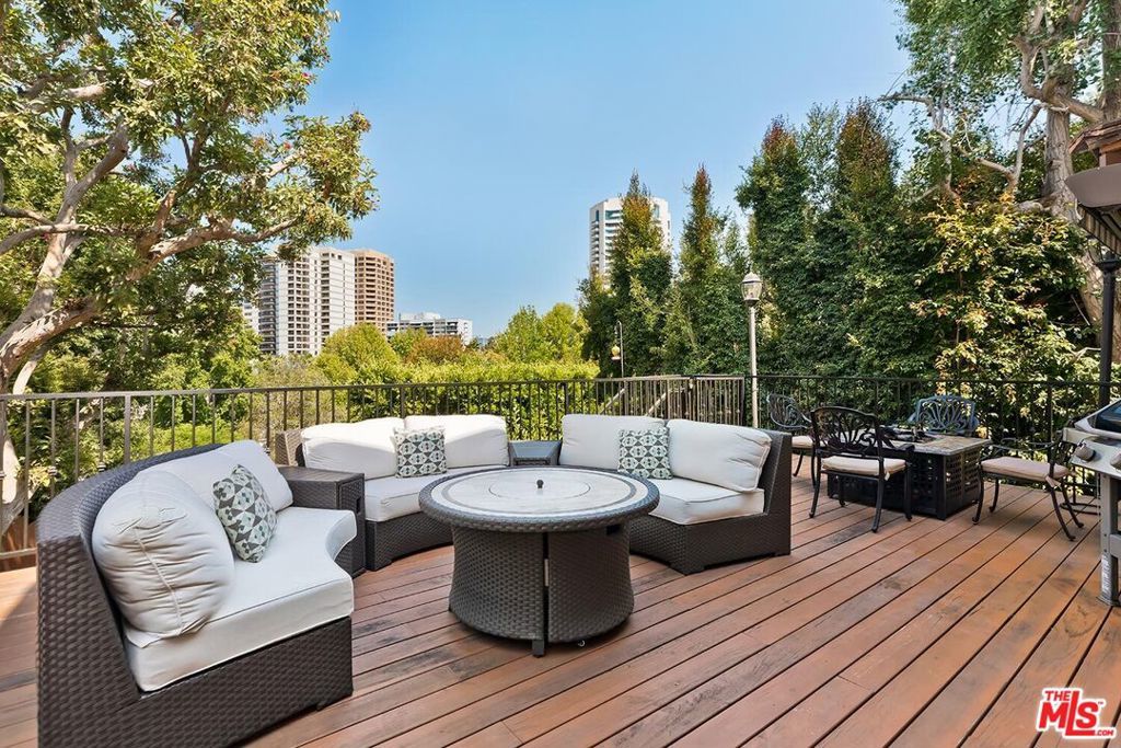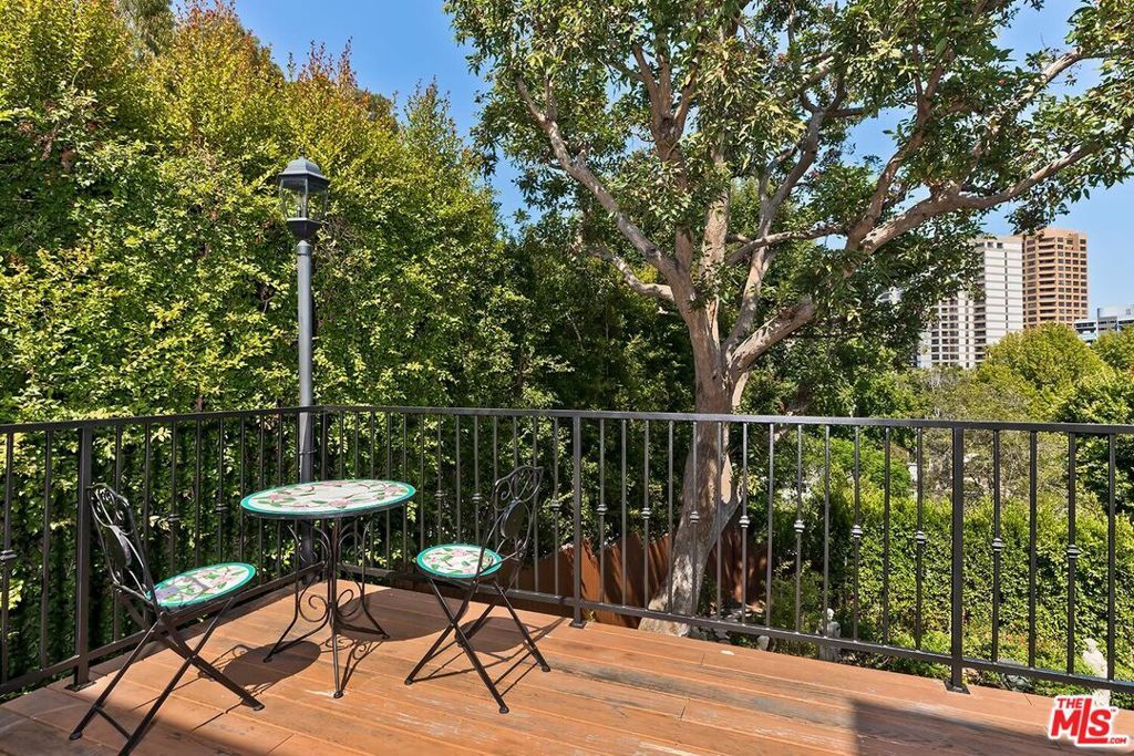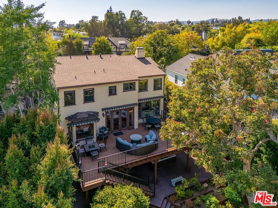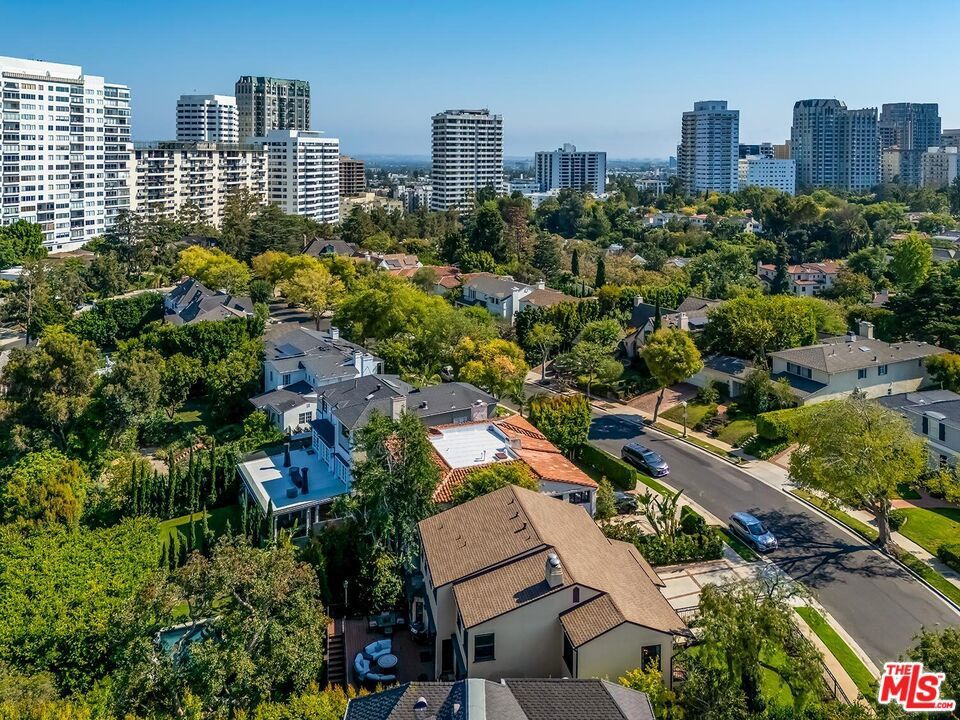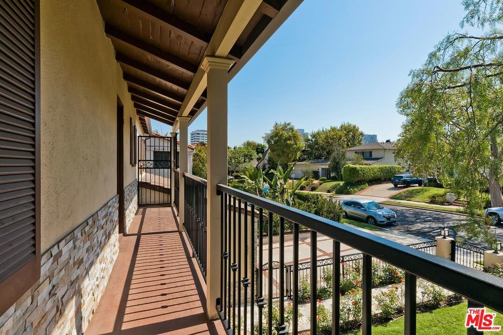 Situated in Premier location in the esteemed Little Holmby neighborhood, this updated Monterey Traditional features a coveted modern open floorplan combined with all its original warmth and character with dark wood flooring and crown moldings throughout. Entering the home through a gated front garden reveals streams of light cascading in from every angle through a myriad of new large windows. The floorplan boasts a breathtaking great room flowing seamlessly from a gracious formal living room with a baronial marble fireplace to a comforting family room with second fireplace to a large open dining area with wet bar creating the perfect setting for large scale entertaining or causal relaxation with the family. Adjoining the dining area is a gourmet eat-in kitchen with large center island, stone countertops, high-end stainless appliances and copious amounts of storage ready for the seasoned chef or aspiring cook. The rear of the main level opens through multiple French doors to an expansive redone deck area with motorized awnings offering multiple seating areas and sweeping treetop, mountain and city light views. In addition, there is a convenient powder room and large laundry room. All four bedrooms are upstairs including gracious master suite with dual closets, sumptuous full marble accented bath, and front balcony, plus a large second bedroom with en suite bath and two additional bedrooms with a shared hallway full bath giving an unlimited number of options for families or professional work at home executives. The house also includes a bonus lower level, 546 sqft not included in total, accessible by steps down from the main deck featuring a sizable multi-purpose room with bath, perfect for media room, gym or game room plus a private patio and enchanting extra-large spa calling for a long dip to unwind after a long day or workout, all overlooking a romantic landscaped garden with fountain beyond. Additional improvements over the last 10 years include newer HVAC and roof, updated electrical and plumbing, and EV charger in the two-car garage. Coupled with its modern and classic features, the home is mere moments from the relaxing atmosphere of Holmby Park, the world-class shopping at Westfield Century City, the glamour of Beverly Hills, and the cultural offerings of UCLA and Westwood. It also allows access to the prestigious, award-winning Warner Avenue Elementary School. This is an amazing opportunity to enjoy all the best of what Little Holmby offers.