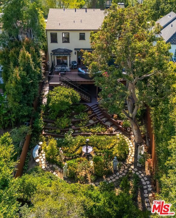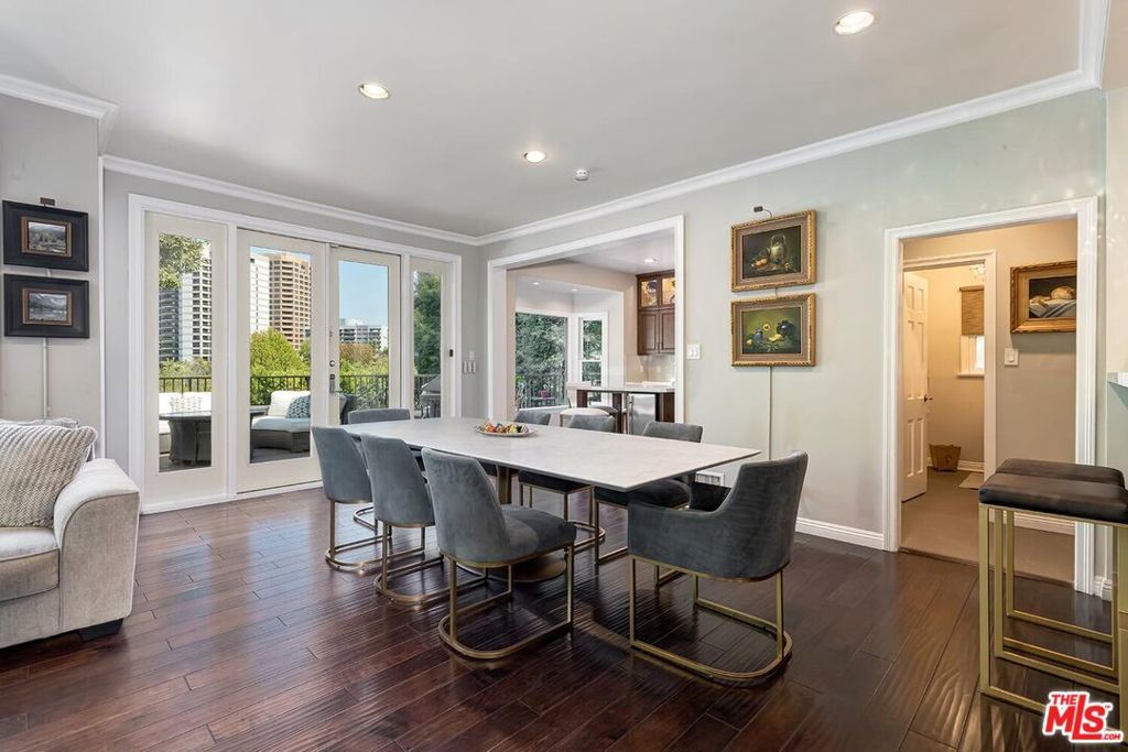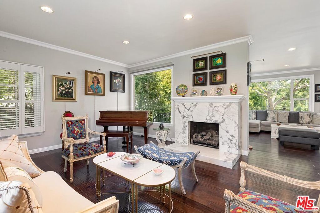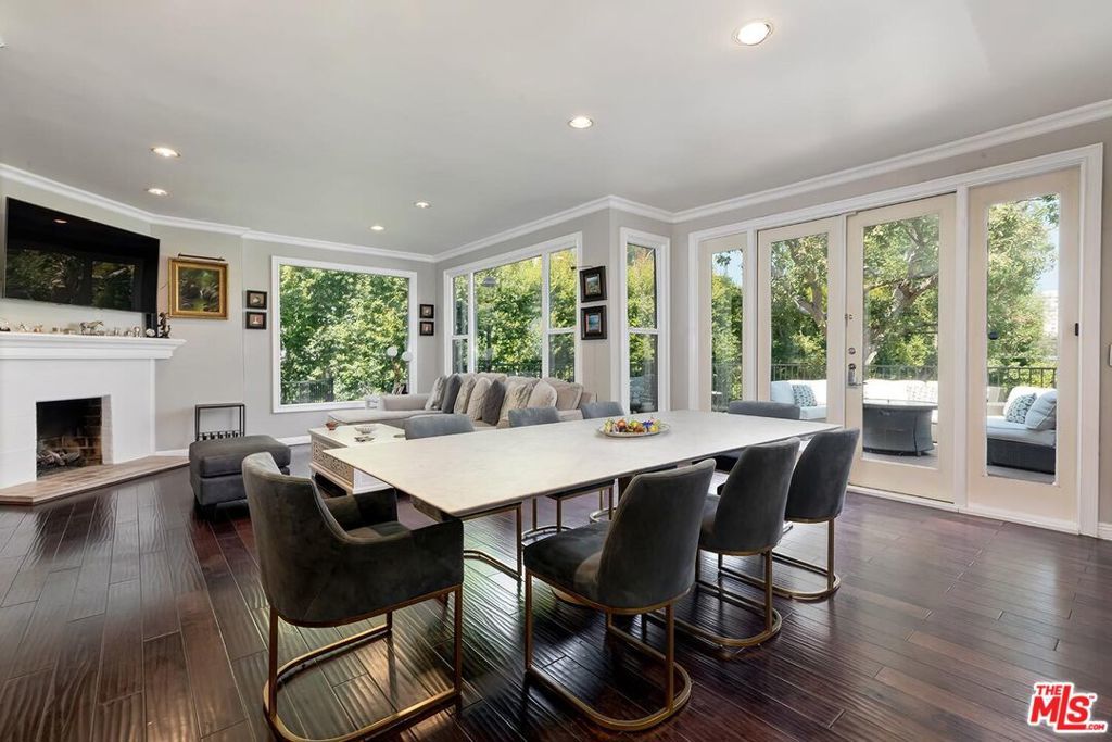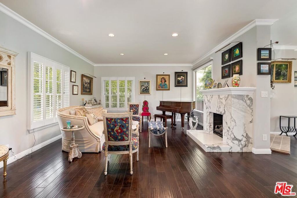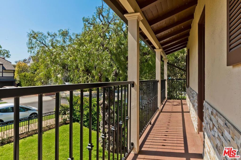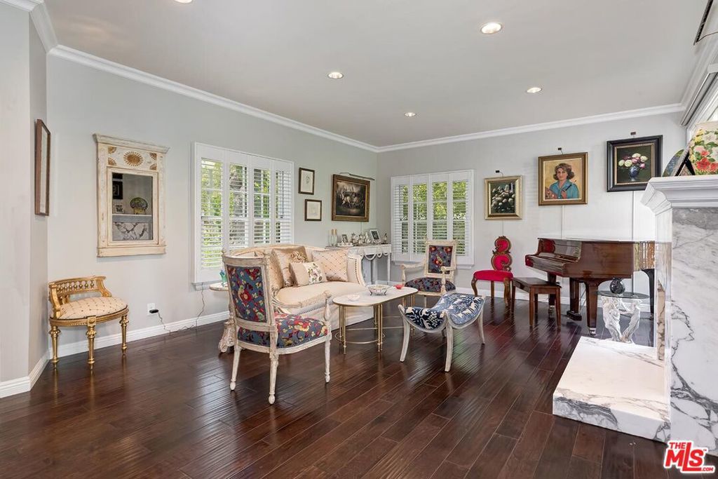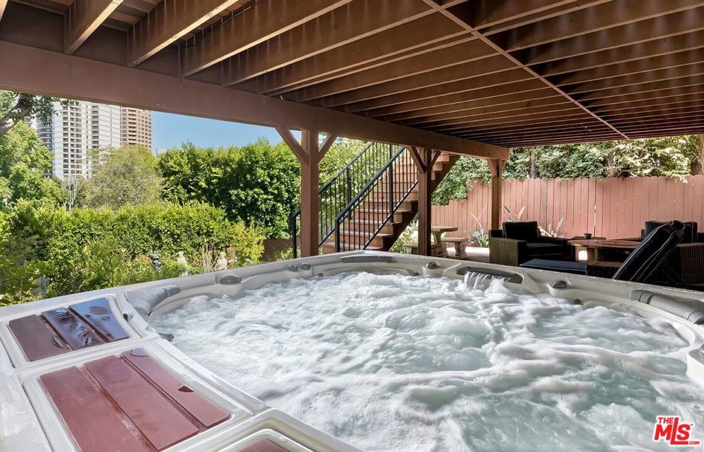 Situated in Premier location in the esteemed Little Holmby neighborhood, this updated Monterey Traditional features a coveted modern open floorplan combined with all its original warmth and character with dark wood flooring and crown moldings throughout. Entering the home through a gated front garden reveals streams of light cascading in from every angle through a myriad of new large windows. The floorplan boasts a breathtaking great room flowing seamlessly from a gracious formal living room with a baronial marble fireplace to a comforting family room with second fireplace to a large open dining area with wet bar creating the perfect setting for large scale entertaining or causal relaxation with the family. Adjoining the dining area is a gourmet eat-in kitchen with large center island, stone countertops, high-end stainless appliances and copious amounts of storage ready for the seasoned chef or aspiring cook. The rear of the main level opens through multiple French doors to an expansive redone deck area with motorized awnings offering multiple seating areas and sweeping treetop, mountain and city light views. In addition, there is a convenient powder room and large laundry room. All four bedrooms are upstairs including gracious master suite with dual closets, sumptuous full marble accented bath, and front balcony, plus a large second bedroom with en suite bath and two additional bedrooms with a shared hallway full bath giving an unlimited number of options for families or professional work at home executives. The house also includes a bonus lower level, 546 sqft not included in total, accessible by steps down from the main deck featuring a sizable multi-purpose room with bath, perfect for media room, gym or game room plus a private patio and enchanting extra-large spa calling for a long dip to unwind after a long day or workout, all overlooking a romantic landscaped garden with fountain beyond. Additional improvements over the last 10 years include newer HVAC and roof, updated electrical and plumbing, and EV charger in the two-car garage. Coupled with its modern and classic features, the home is mere moments from the relaxing atmosphere of Holmby Park, the world-class shopping at Westfield Century City, the glamour of Beverly Hills, and the cultural offerings of UCLA and Westwood. It also allows access to the prestigious, award-winning Warner Avenue Elementary School. This is an amazing opportunity to enjoy all the best of what Little Holmby offers.