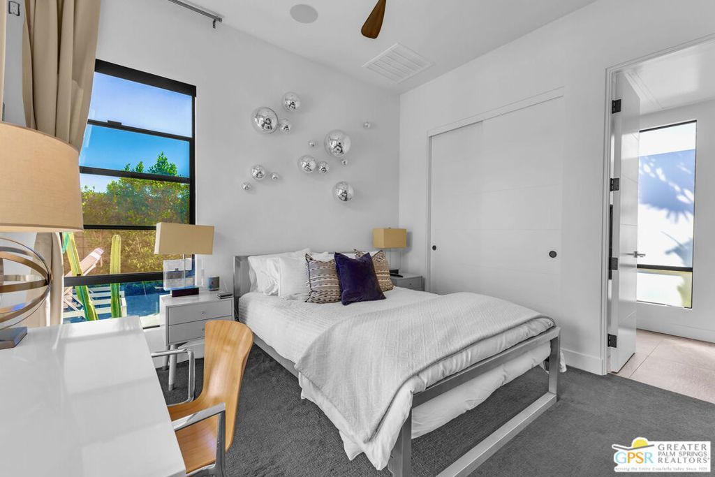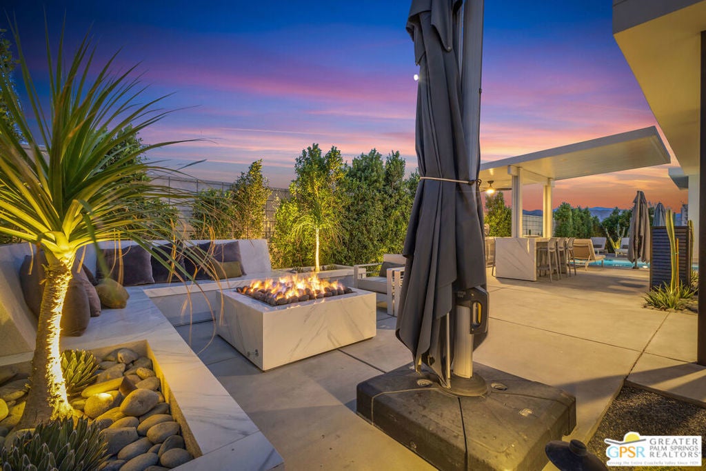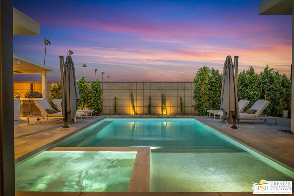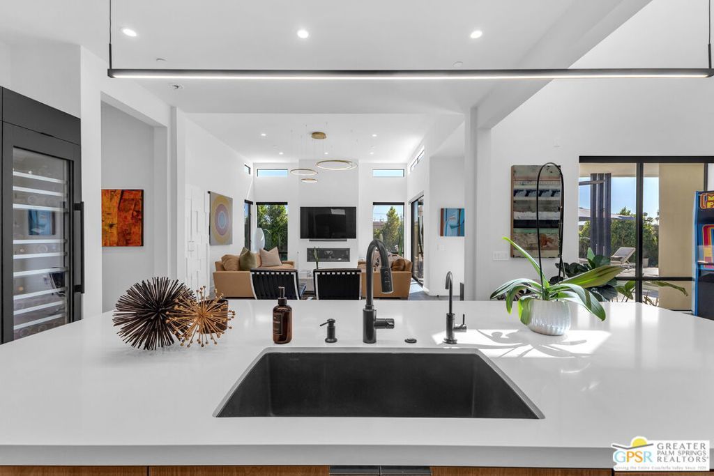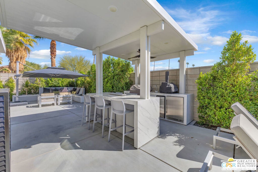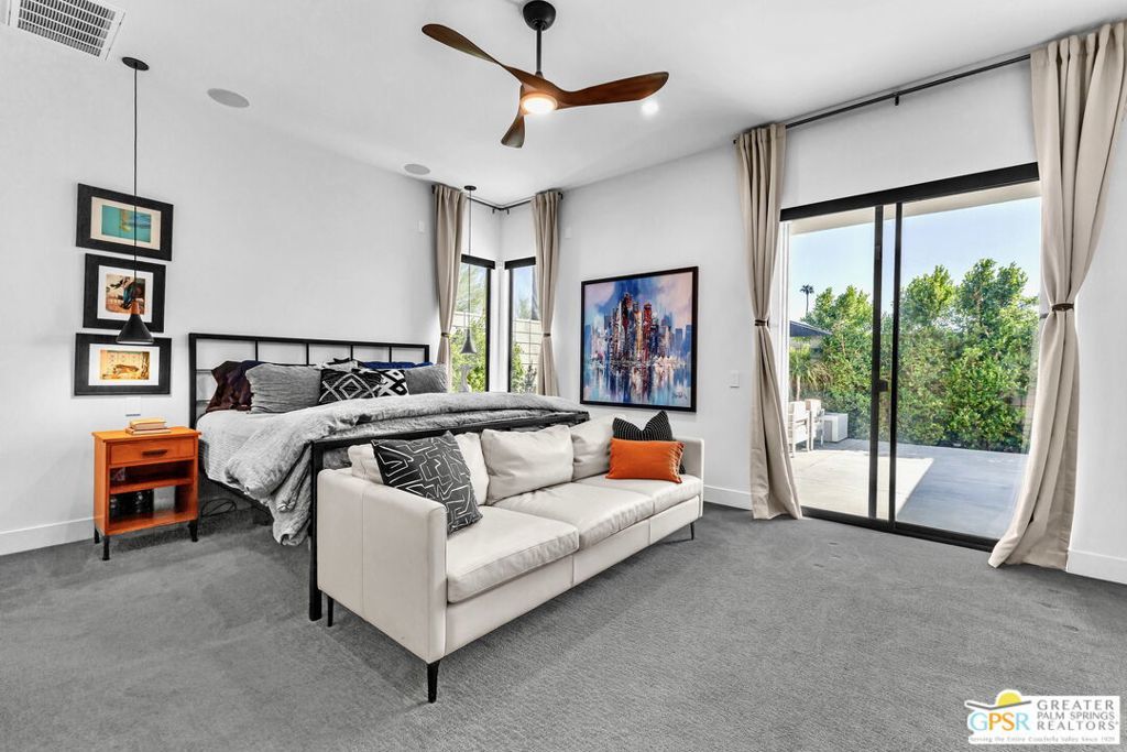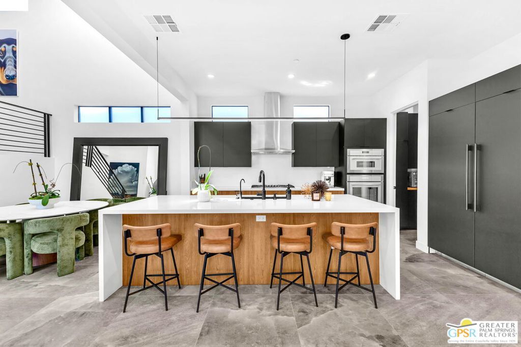 Located in the popular Vue community, this home sits on one of the largest lots in Vue. This luxurious 3 bed (all ensuite)/3.5 -bath home offers 2,319 square feet of well-planned living space with thoughtful details throughout. The owner spared no expense; incorporating over $300,000 in upgrades. The ground floor primary bedroom offers a luxurious retreat with spa-quality bath and dual closets. The kitchen is for the discerning cook, featuring upgraded appliances and bonus features like wine fridge and beautifully built-out pantry. The detached casita will provide a great place for your guests to stay and relax with some privacy. Because this home is situated on a larger lot, the owner was able to put in a larger pool and add a custom outdoor kitchen with grill, ice maker, fridge, and pizza oven. The outdoor space is perfect for entertaining friends with custom seating around a cozy fire pit for those relaxing evenings. The dual pool heater gives you the option of heating by gas or electricity. The rooftop deck comes with its own beverage refrigerator, perfect for watching our beautiful sunrises and mountain sunsets or just enjoying the view. With 60 owned solar panels, you won't fear those summer AC bills. Plus, in the air-conditioned garage, you'll find EV charging for added convenience. The gated community provides security and peace of mind while keeping you close to downtown and the airport.This home is being offered fully furnished down to the housewares, linens, and electronics and yes, even gym equipment. No need to worry about buying furniture or decorating just bring your suitcase and start enjoying desert living right away.