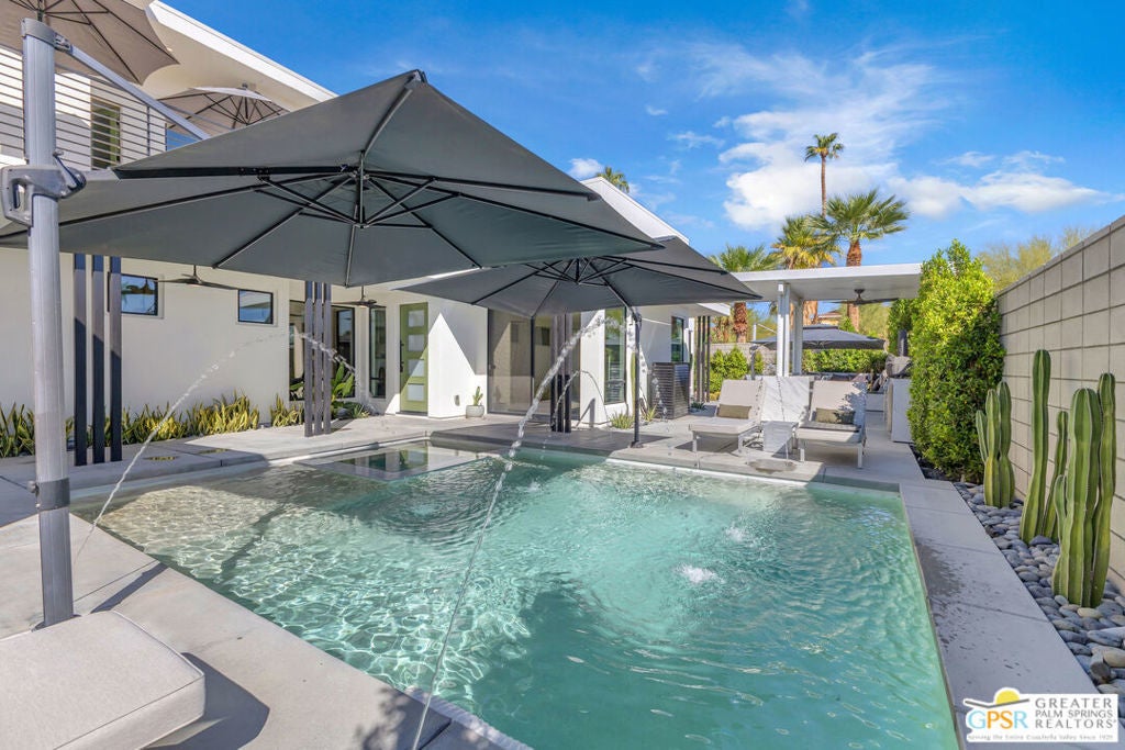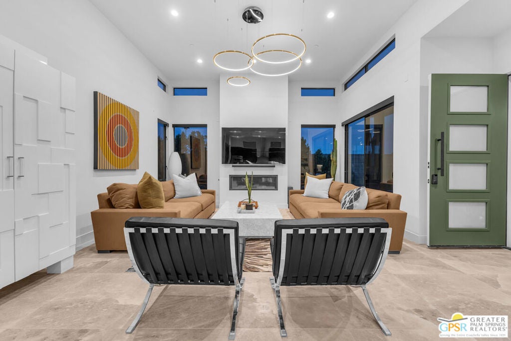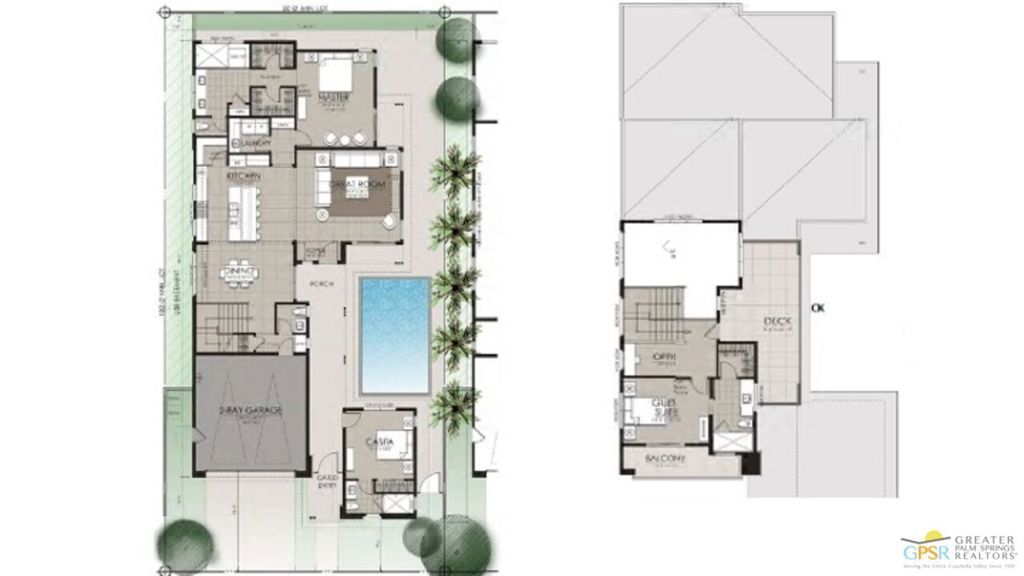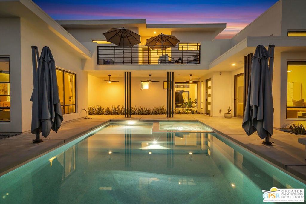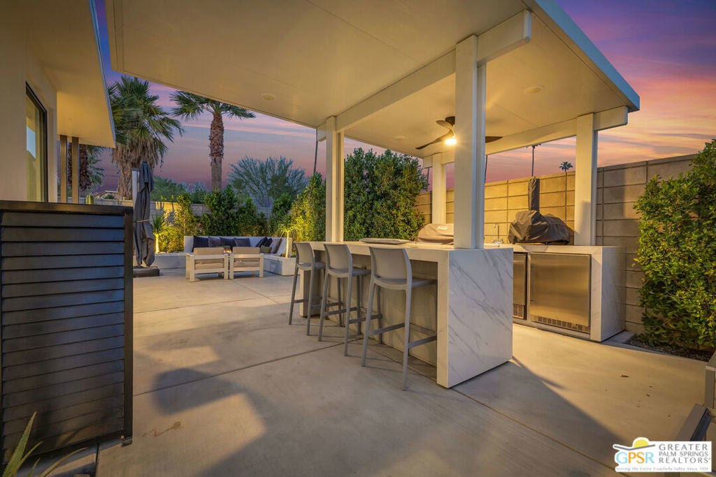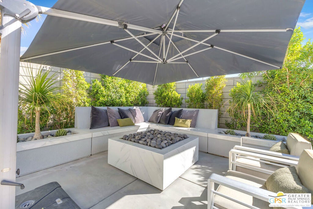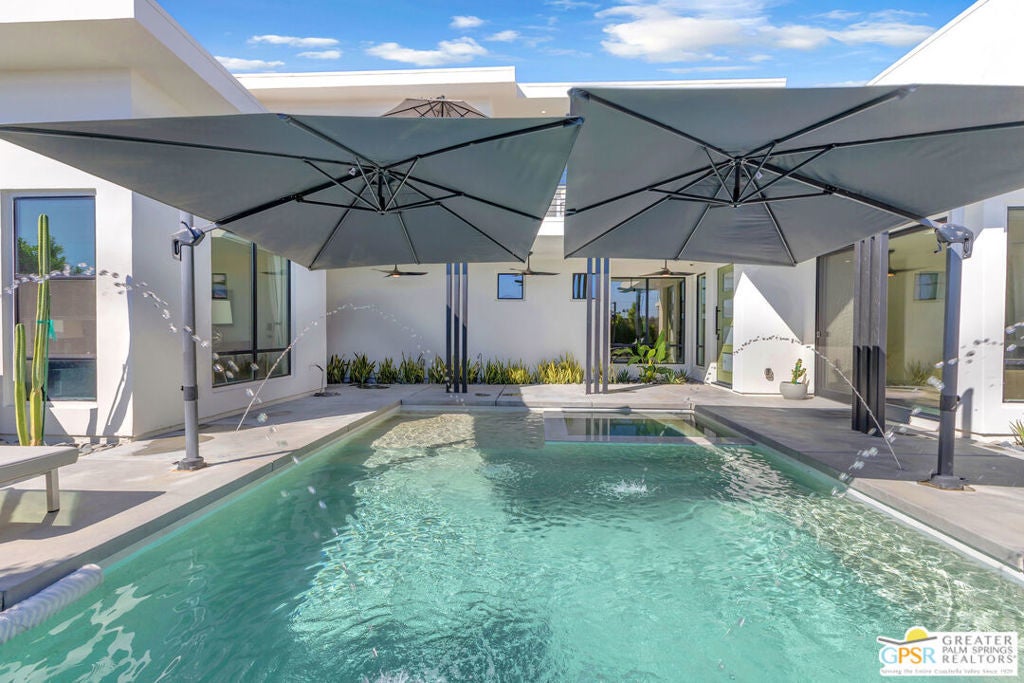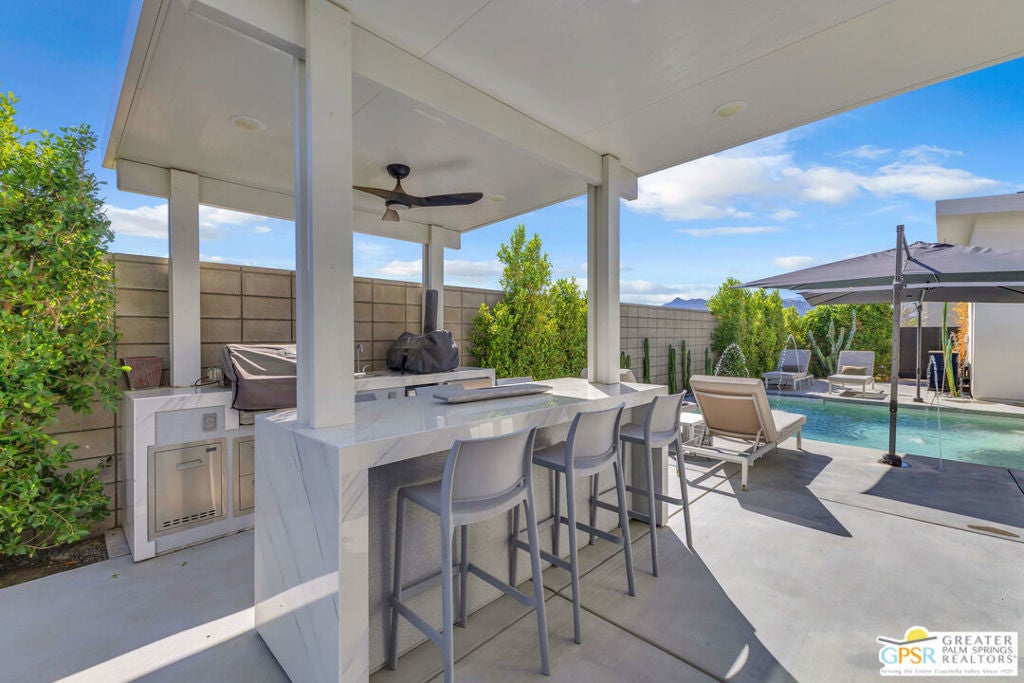 Located in the popular Vue community, this home sits on one of the largest lots in Vue. This luxurious 3 bed (all ensuite)/3.5 -bath home offers 2,319 square feet of well-planned living space with thoughtful details throughout. The owner spared no expense; incorporating over $300,000 in upgrades. The ground floor primary bedroom offers a luxurious retreat with spa-quality bath and dual closets. The kitchen is for the discerning cook, featuring upgraded appliances and bonus features like wine fridge and beautifully built-out pantry. The detached casita will provide a great place for your guests to stay and relax with some privacy. Because this home is situated on a larger lot, the owner was able to put in a larger pool and add a custom outdoor kitchen with grill, ice maker, fridge, and pizza oven. The outdoor space is perfect for entertaining friends with custom seating around a cozy fire pit for those relaxing evenings. The dual pool heater gives you the option of heating by gas or electricity. The rooftop deck comes with its own beverage refrigerator, perfect for watching our beautiful sunrises and mountain sunsets or just enjoying the view. With 60 owned solar panels, you won't fear those summer AC bills. Plus, in the air-conditioned garage, you'll find EV charging for added convenience. The gated community provides security and peace of mind while keeping you close to downtown and the airport.This home is being offered fully furnished down to the housewares, linens, and electronics and yes, even gym equipment. No need to worry about buying furniture or decorating just bring your suitcase and start enjoying desert living right away.