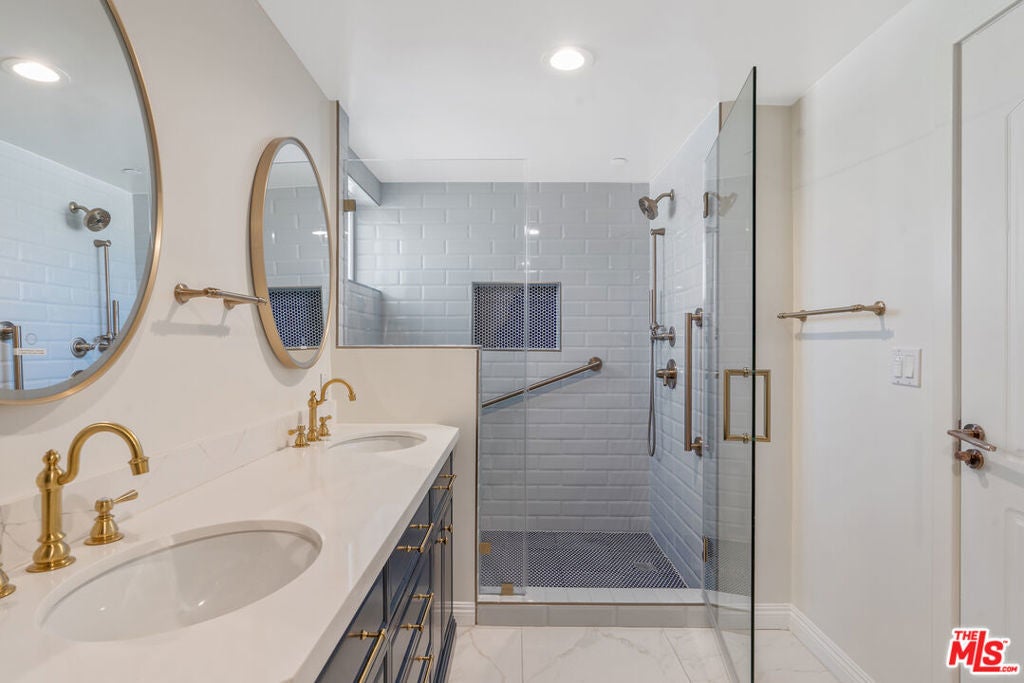 Discover this spacious, freshly painted, bright corner unit featuring 3 bedrooms and 3 bathrooms, with two of them being en-suite. The kitchen is a chef's delight, equipped with granite countertops, stainless steel appliances, and abundant cabinet space. The expansive primary suite includes a beautifully renovated bathroom and a walk-in closet. Other notable features of this unit include elegant wood floors, recessed lighting, a cozy living room fireplace, and convenient in-unit laundry. Enjoy the tranquility of the south-facing patio with its peaceful hillside views. The property has a beautiful formal entry with secure access, 2 tandem parking spaces, and a rec room/gym for residents. Situated in the desirable Toluca Lake area, this charming unit offers easy access to shopping, dining, and nearby NoHo arts district.