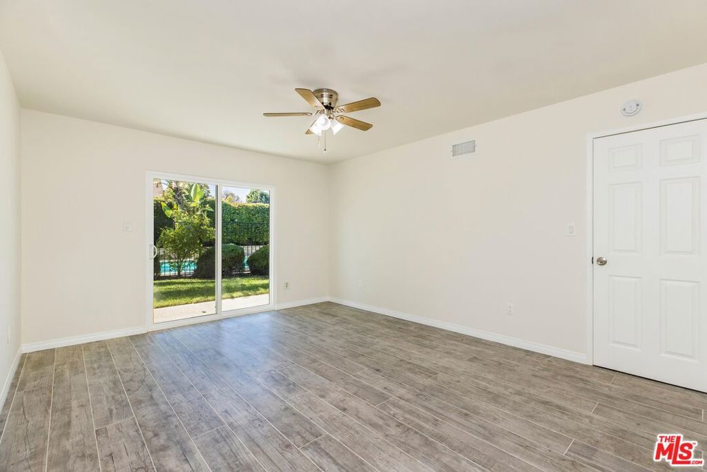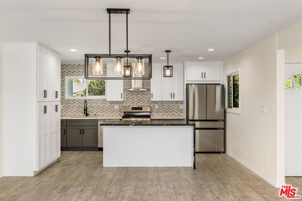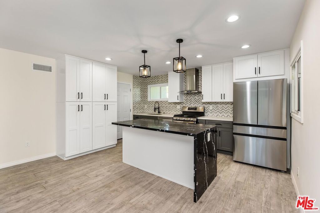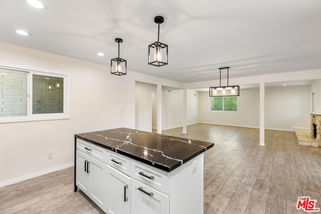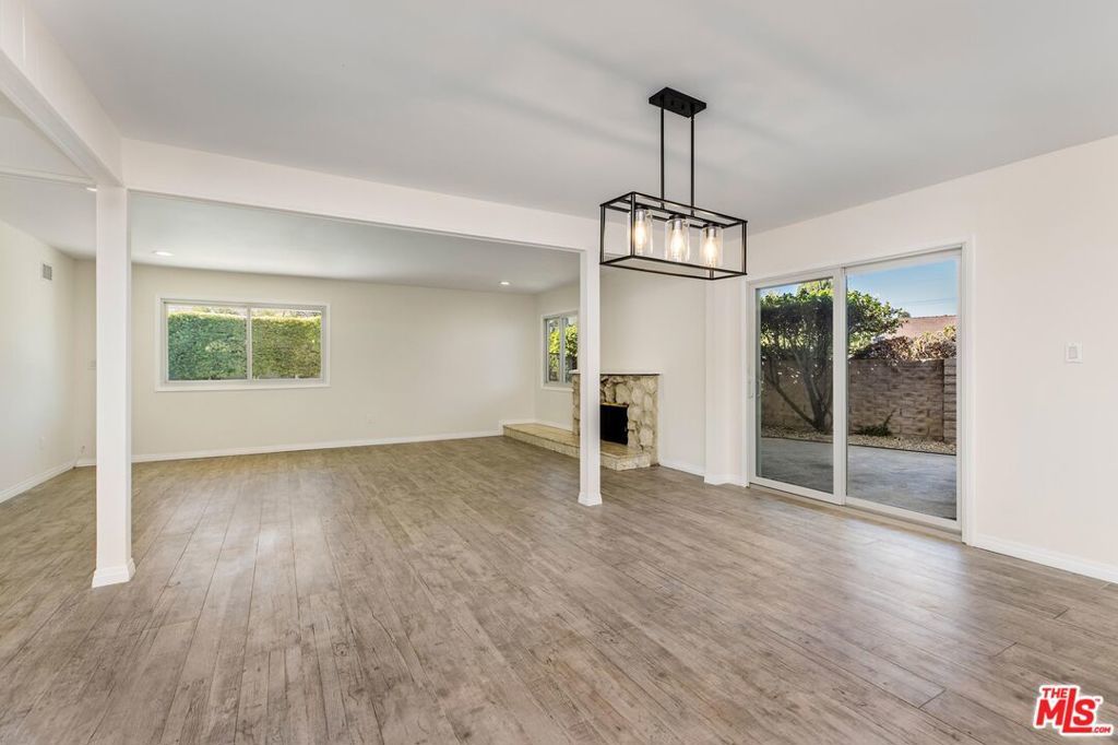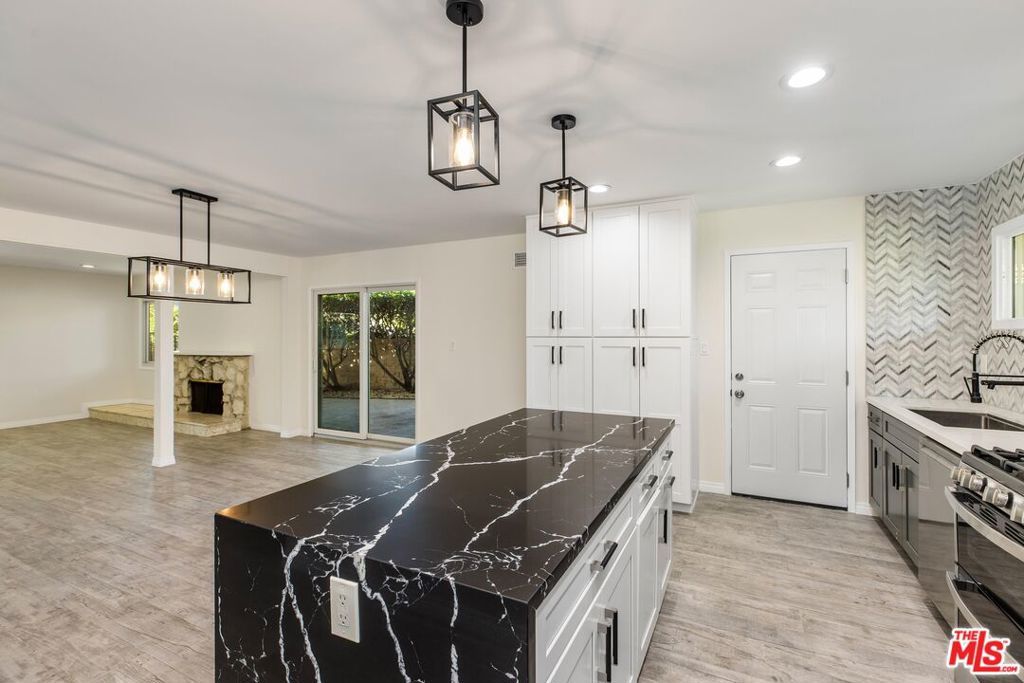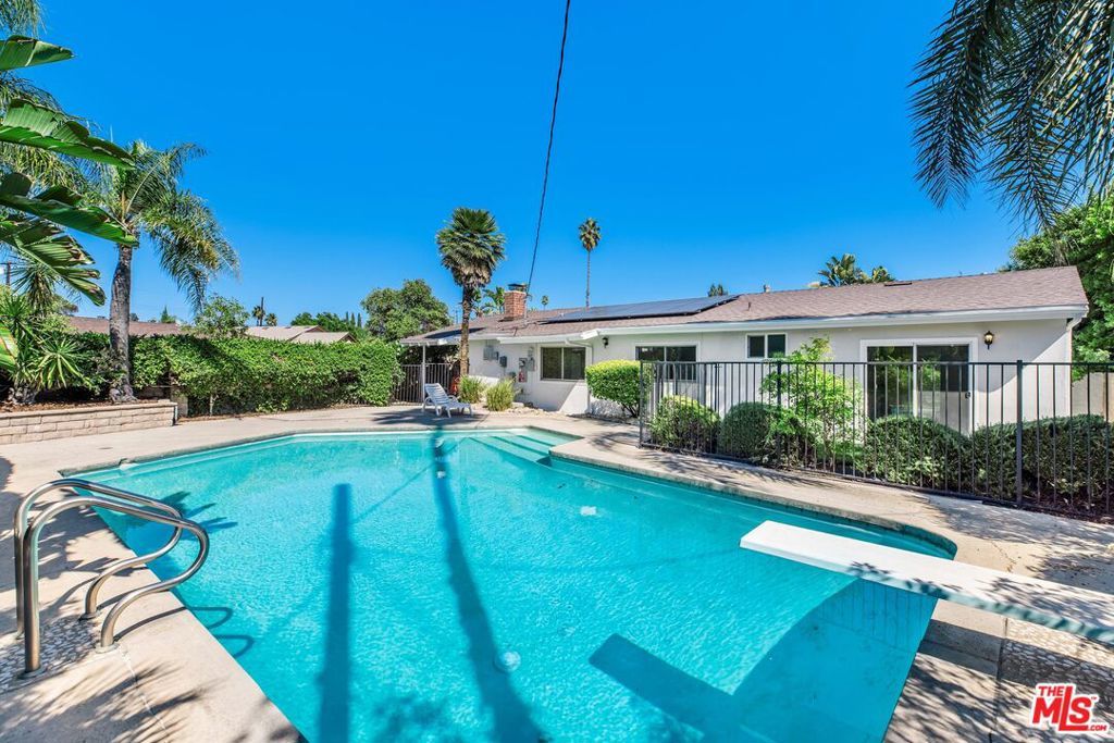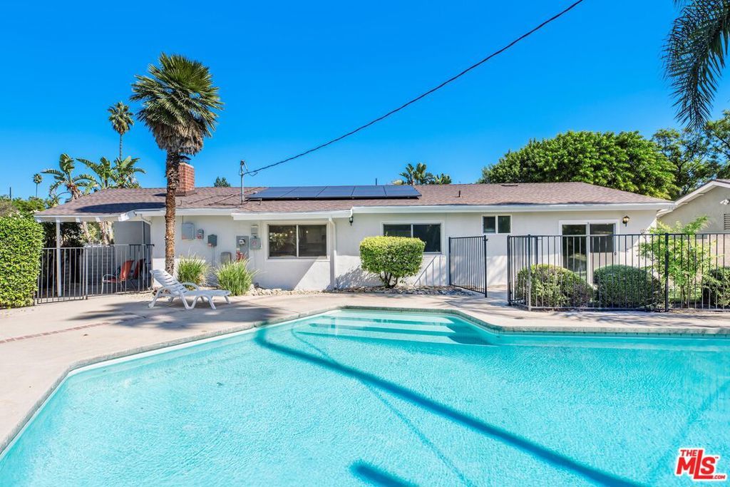 Nestled on a peaceful cul-de-sac in a desirable Northridge neighborhood, this inviting single-story pool home offers 3 bedrooms and 2 bathrooms. A welcoming front porch leads into a bright and spacious floor plan. The remodeled kitchen boasts quartz countertops, white cabinetry, a breakfast bar, newer appliances and seamlessly opens to a large dining area with a stylish chandelier. The living room offers a cozy fireplace and sliding glass doors that open to the backyard and pool area. The primary bedroom includes a walk-in closet, direct access to the backyard and en suite bath. Two additional bedrooms are generous in size and share a full hallway bathroom with a vanity and shower-over-tub. Step outside to your private backyard oasis featuring a covered patio, grassy play area, mature landscaping, and a sparkling pool, ideal for summer gatherings and entertaining. The home also has a value-enhancing, and money-saving solar energy system. Conveniently located near top-rated schools, shopping, dining, and the 405 and 118 freeways, this wonderful home is the perfect place to create lasting memories.