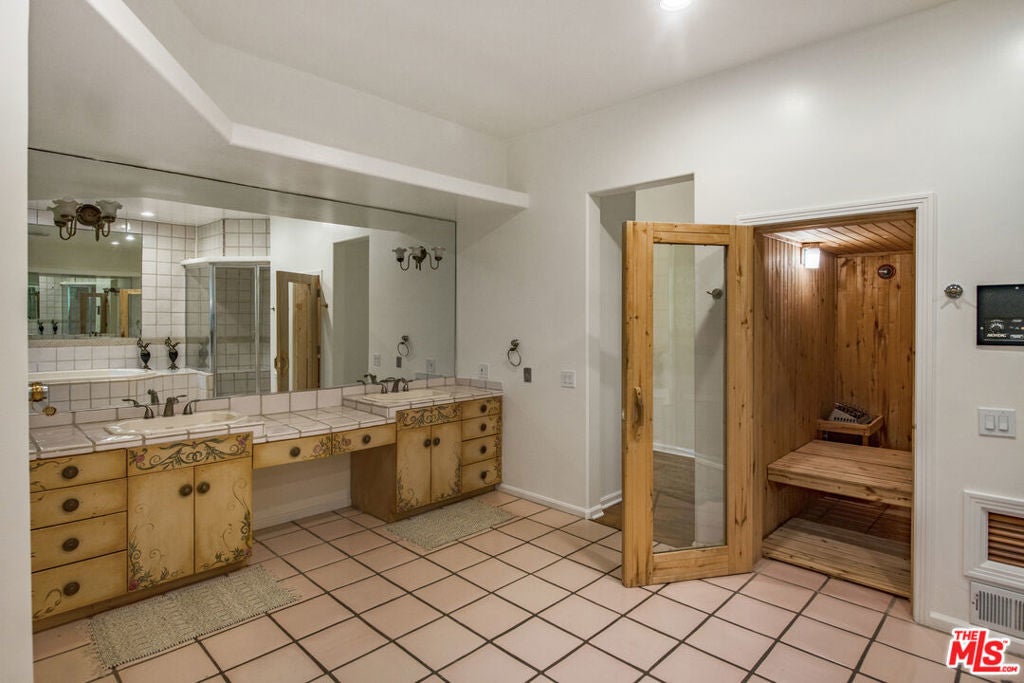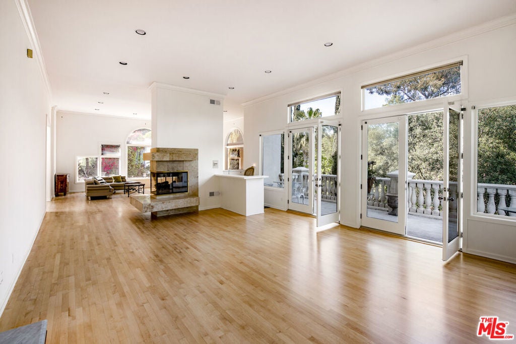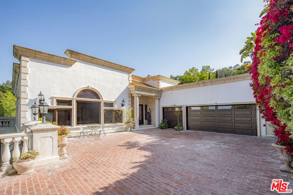 Gated Mediterranean estate nestled at the end of a quiet cul-de-sac in the heart of the Hollywood Hills. Privately set on nearly an acre, this custom-built oasis offers 5 bedrooms and 6 baths with over 5,000 sq ft designed for grand-scale entertaining. A dramatic motor court, lush grounds, and sweeping views set the tone for this resort-style retreat, featuring a showstopping pool and spa, a white Italian gazebo, and a waterfall. Inside, the home boasts soaring ceilings, maple floors, and a chef's dream kitchen with a large breakfast area, formal dining, and sun-drenched living and family rooms divided by a dual fireplace and full bar. The lower level is dedicated to luxury living, with a lavish primary suite offering a fireplace, private balcony, spa bath, and massive walk-in wardrobe. Two oversized guest suites open directly to the pool, while a separate office/library wing and maid's quarters offer added versatility. Complete with a 3-car garage, sauna, and even a helicopter pad (per owner), all just minutes from Universal Studios and the best of LA. AVAILABLE FURNISHED OR UNFURNISHED. Available for short or long-term rental.