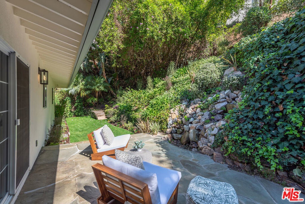 Welcome to Outpost Estates! Newly renovated three-bedroom, two-and-a-half-bath home with approximately 2,236 sq. ft. of living space on an expansive 11,600 sq. ft. lot. This home offers total serenity and privacy. The inviting living room features wood-beamed ceilings, a fireplace, and wood and Italian porcelain tile floors throughout. The newly remodeled kitchen showcases custom solid oak cabinetry, quartz countertops, top-quality appliances, large island perfect for casual dining, opening to a flexible large dining or family with access to the outdoor patio and yard. The primary suite with a remodeled bathroom featuring Italian limestone flooring, double vanities, separate tub and shower, opens directly to the lush backyard. Two additional bedrooms provide comfort and versatility and remodeled bathroom featuring modern finishes and thoughtful design. The private outdoor space includes a tranquil fountain, mature landscaping, and a grassy yard ideal for entertaining. Additional highlights include a circular driveway for easy access and a two-car garage. Move-in ready and ideally located, this home captures the best of California living in one of Los Angeles' most desirable neighborhoods. Historic Outpost Estates, this enclave is one of Los Angeles' storied neighborhoods developed in the 1920s, it is known for its architectural character, tree-lined streets, and a close-knit community feel. You're just moments from Runyon Canyon trails, the Hollywood Bowl, the Sunset Strip, and cosmopolitan shops and dining - all while enjoying a serenity and privacy rarely found so close to the city center.