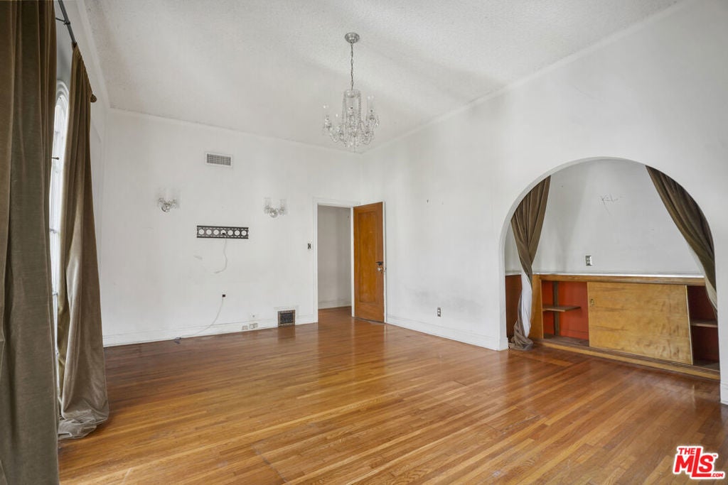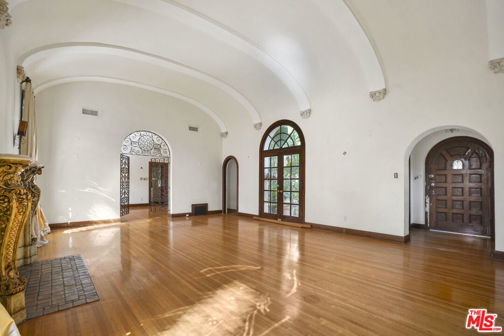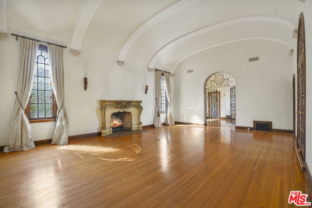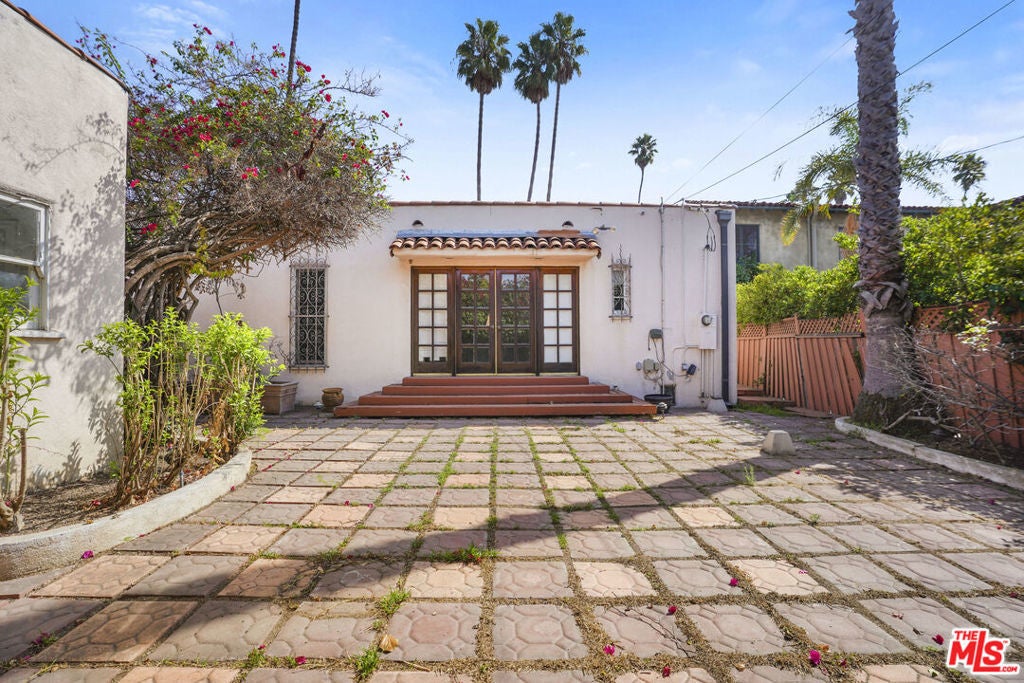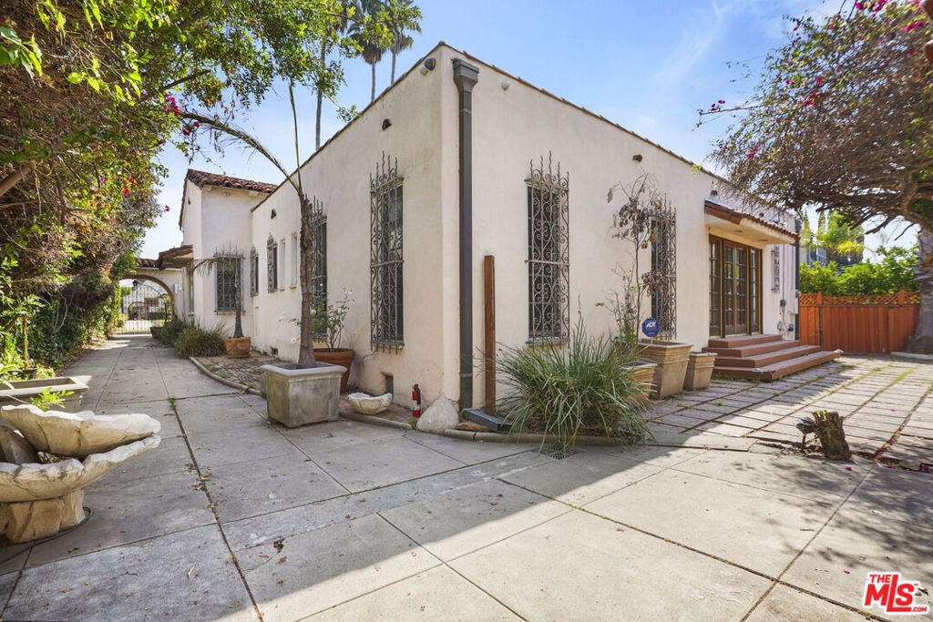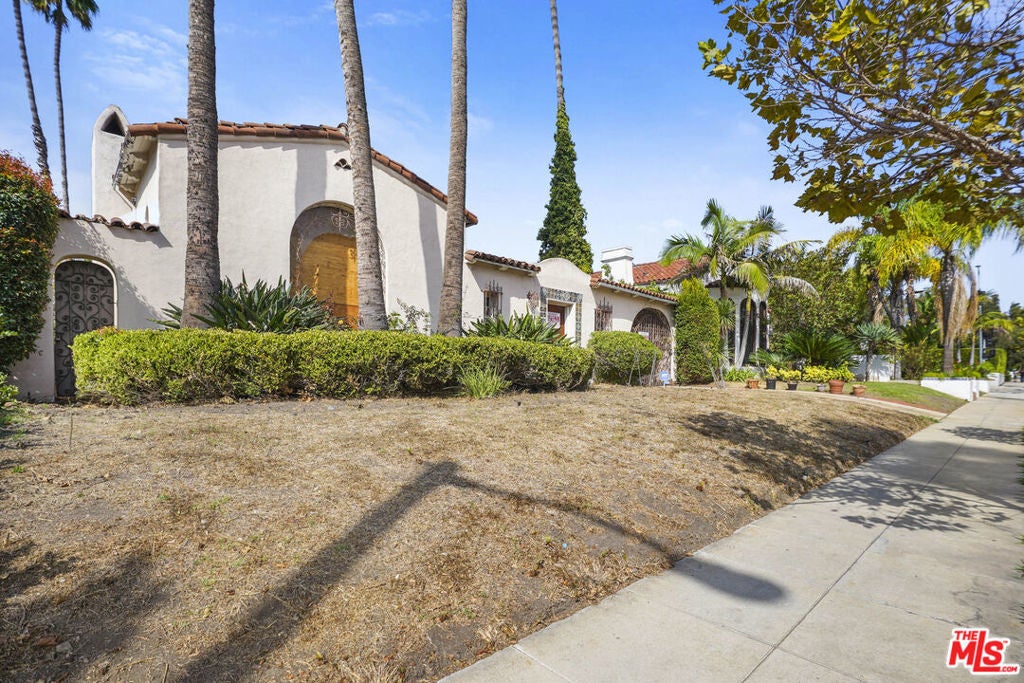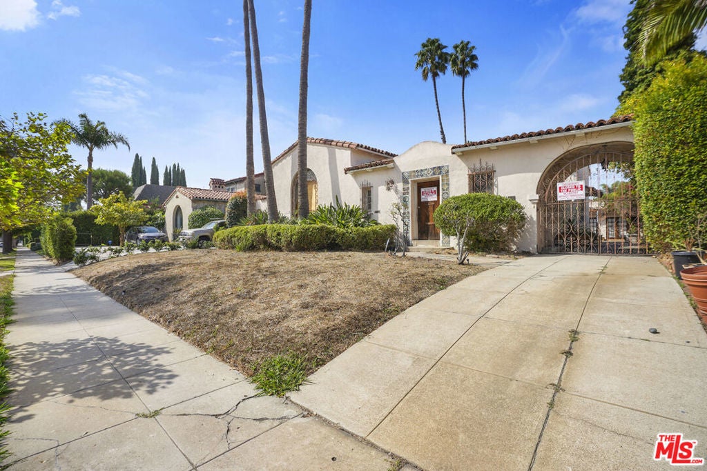 Stunning Spanish Revival home located in the heart of Hancock Park! This one of a kind property features dramatic 15ft vaulted arched ceilings, stained glass windows, intricate moldings and a marble mantle with a gas fireplace, which is decorative. The home features 3 bedrooms and 2 full baths. Set behind wrought- iron gates includes a tranquil courtyard with fountain, an abundant architectural character. A rare opportunity to restore a piece of Hollywood's golden era.