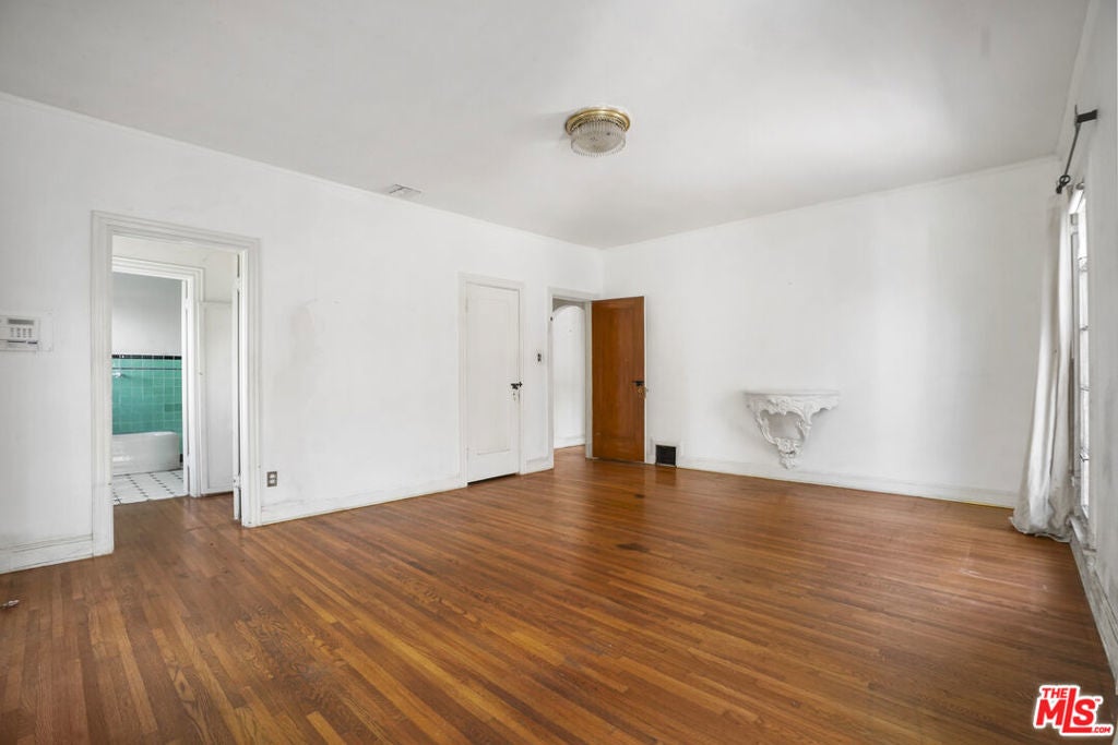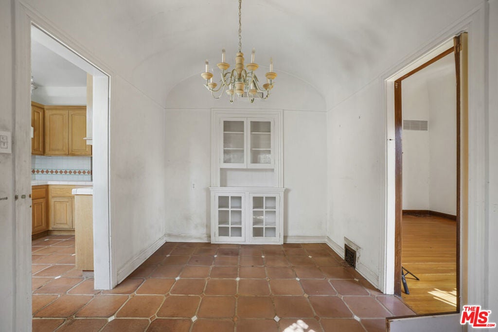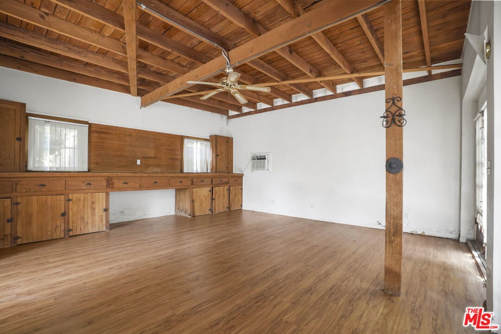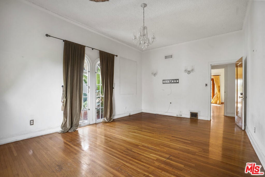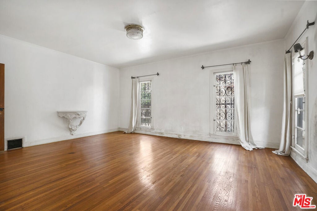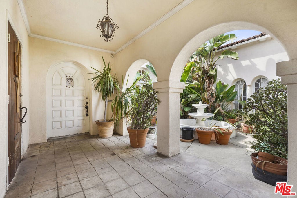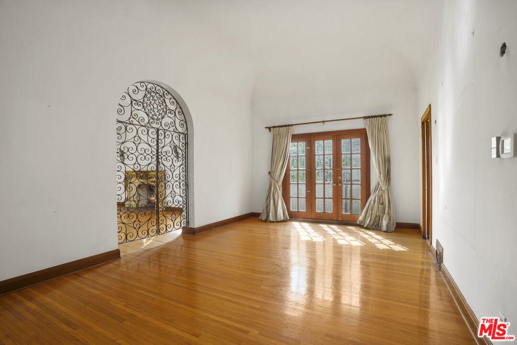 Stunning Spanish Revival home located in the heart of Hancock Park! This one of a kind property features dramatic 15ft vaulted arched ceilings, stained glass windows, intricate moldings and a marble mantle with a gas fireplace, which is decorative. The home features 3 bedrooms and 2 full baths. Set behind wrought- iron gates includes a tranquil courtyard with fountain, an abundant architectural character. A rare opportunity to restore a piece of Hollywood's golden era.