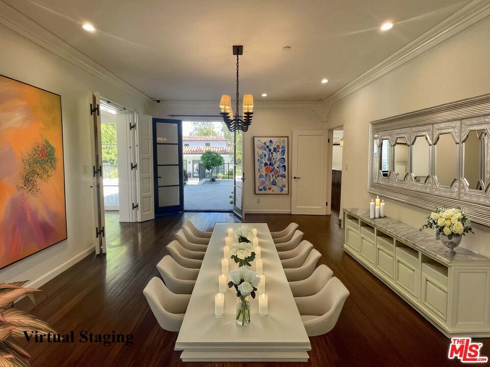 A timeless Spanish Colonial villa on one of the most coveted tree-lined streets in the Beverly Hills Flats. Meticulously restored and updated, this five-bedroom, six-and-a-half-bath residence blends classic character with modern sophistication. The main home features a gourmet kitchen with Viking and Sub-Zero appliances, formal dining and living rooms, and a family room that opens to the kitchen for effortless flow. Outfitted with Lutron lighting, integrated speakers, and full smart-home technology, the residence offers both comfort and control. The grounds include a 1,038 sq ft detached guest house with its own bedroom, bathroom, kitchenette, and laundry room, while a separate pool house provides an additional bedroom, full bath, wet bar, and sauna. Outdoor spaces evoke a private resort, complete with pool, spa, Baja ledge, and expansive entertaining deck moments from Beverly Hills' world-class shopping and dining. The seller may discreetly consider qualified purchase inquiries.