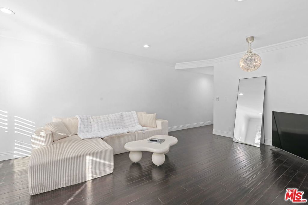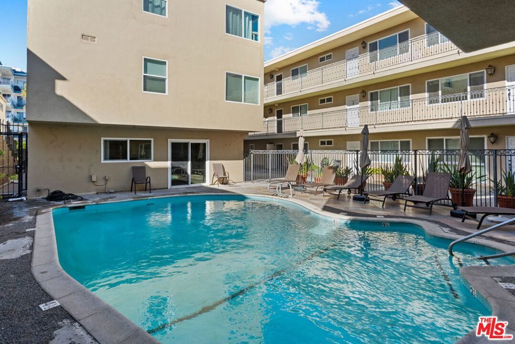 Absolutely charming one bedroom, one bath front unit in Chenault Villas. Recently upgraded courtyard building in a fantastic Brentwood locale close to restaurants and shopping. The unit has been recently remodeled with new paint, windows, recessed lighting, crown molding, and dark hardwood flooring as well as a completely renovated kitchen with gorgeous tile and stainless appliances and bath with modern finishes. The bedroom is spacious with a large walk-in closet. Storage and closet space is ample. Floor plan is open and bright with sliders opening to front balcony. Building amenities include secure parking, laundry facilities, pool and gym. This is an amazing value and a wonderful opportunity to live in the heart of Brentwood!