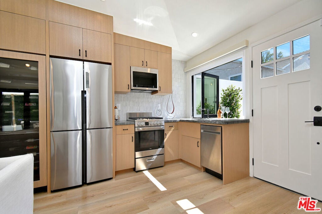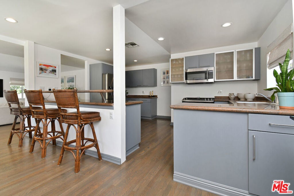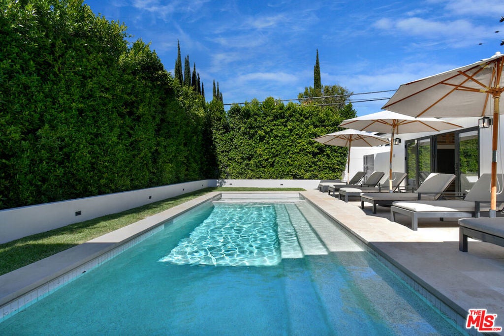 Located South of the Boulevard in prime Encino, this 3 bedroom turnkey home with a detached ADU offers resort-style living with luxurious upgrades, modern functionality, and seamless indoor-outdoor flow. Inside the main house, an open-concept layout welcomes you with a chef's kitchen featuring stainless steel appliances, a breakfast bar, and views of the landscaped front yard. The serene primary suite includes vaulted ceilings, a spa-inspired ensuite bath, and French doors that open directly to the resort-style backyard. Every detail has been thoughtfully curated - from hardwood floors and custom bathrooms to an outdoor sound system, EV charging, and a top-tier security system. The fenced-in front yard showcases natural grass, vibrant landscaping, and a charming white picket fence - perfect for pets and play. The backyard is an entertainer's dream, featuring a large heated, covered deck, fully equipped outdoor kitchen with built-in BBQ, a cozy fire pit and a sparkling pool surrounded by mature greenery. Just beyond, a 385 sq. ft. ADU offers a full kitchen, pool bath, and flexible living space - ideal for guests, a home office, gym, or poolside entertaining. Located just minutes from El Caballero Country Club and the shops and restaurants of Ventura Boulevard, this exceptional Encino home blends timeless California charm with modern comfort in one of the Valley's most sought-after neighborhoods.