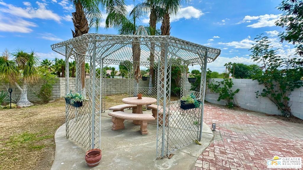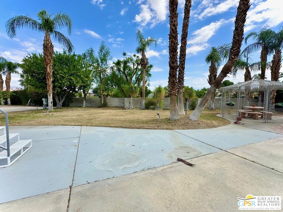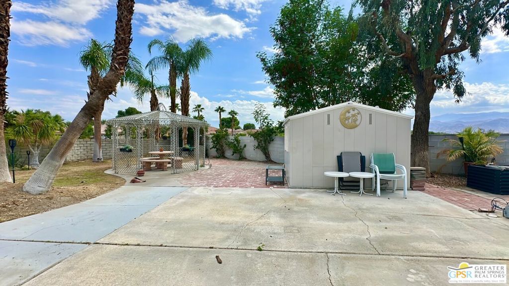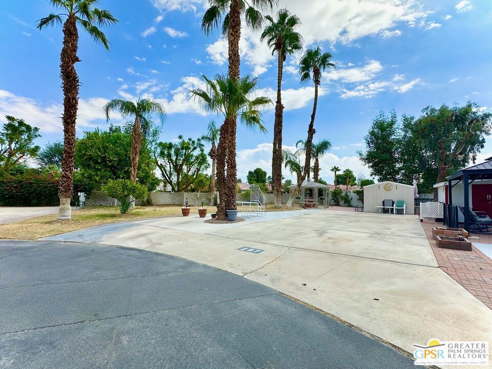 Exceptional Lot Located on the highly desirable year-round occupancy side of Desert Shadows RV Resort. This premium corner RV lot offers the rare opportunity to enjoy full-time desert living, something not available throughout the entire resort. With spectacular views of the surrounding mountains, beautifully landscaped, thoughtfully equipped with a gazebo AND shed, You won't find a condo or small home in the Palm Springs area at this price point where you own the land, making this an unbeatable value whether you're seeking a seasonal escape, a full-time residence, or a long-term investment. Desert Shadows is a vibrant gated 55+ community with 460 individually owned lots and some of the best amenities in the Coachella Valley. Residents enjoy access to six heated pools, including an Olympic-sized lap pool and an indoor pool, along with spa and sauna facilities. The resort also features sunken, lit tennis and pickleball courts, indoor shuffleboard, a full gym, a woodshop, card and hobby rooms, a putting green, a dance studio, multiple picnic areas, and a grand 16,000 sq. ft. ballroom hosting events and activities year-round. Low monthly HOA dues of just $420 include water, trash, sewer, basic cable, clubhouse Wi-Fi, recycling services, and professional landscaping around your unit, providing both convenience and peace of mind. Don't miss out on this exceptional opportunity to own a this prime lot in one of the desert's best and most welcoming communities.