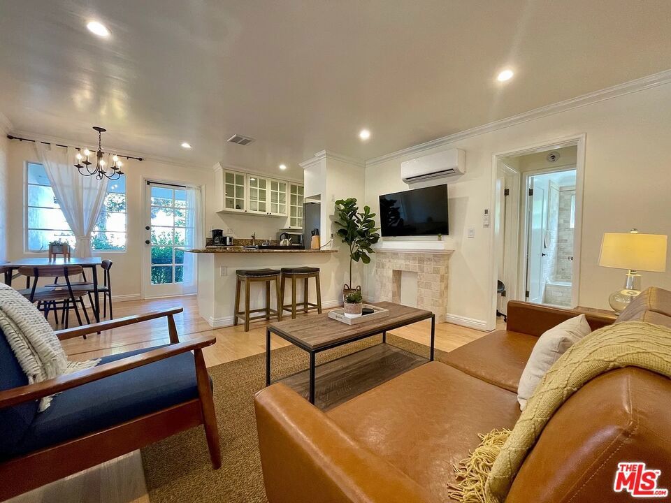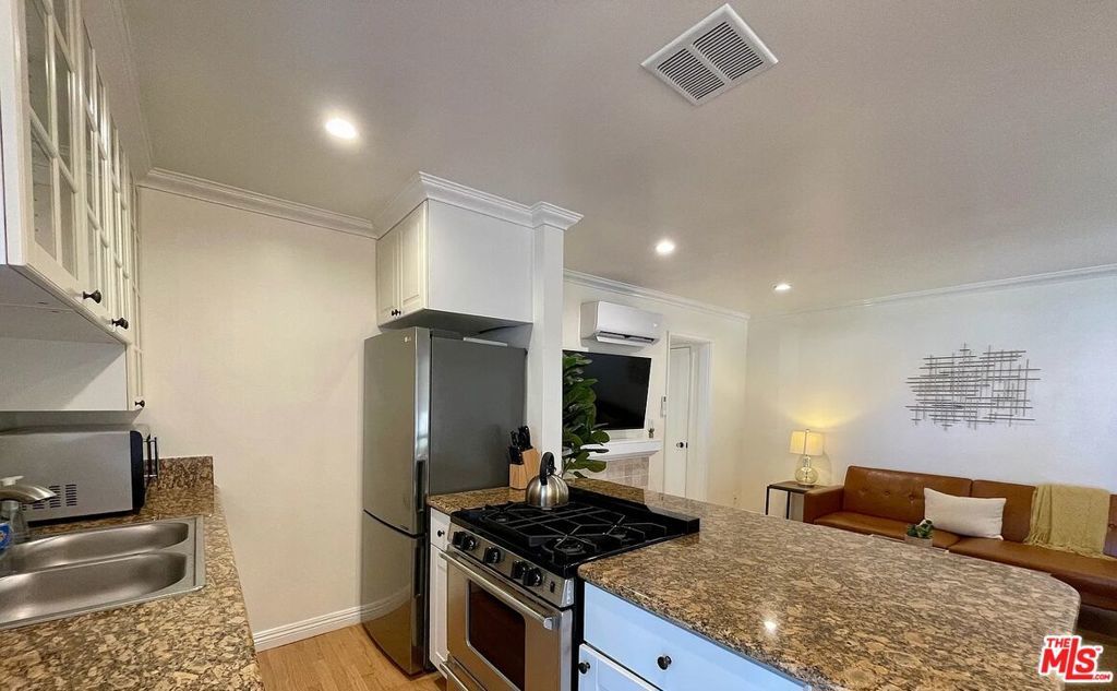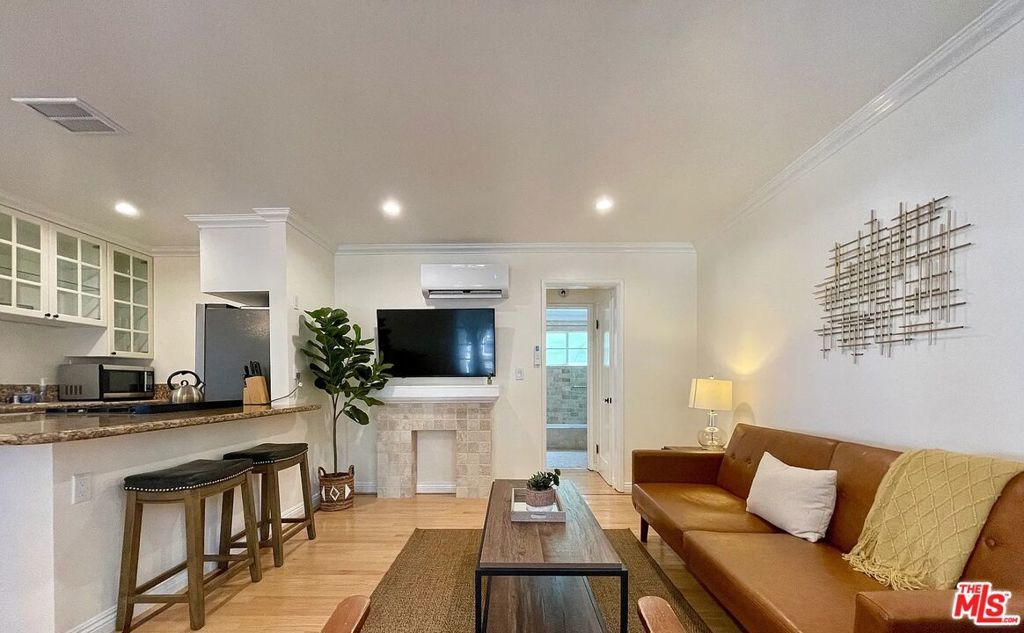 Beautiful 1Bed/1Bath at 10th & Wilshire Front facing unit with very large private balcony Steps from some of Santa Monica's best restaurants including Santa Monica Seafood, Huckleberry, El Cholo and more Brand new landscaping with lots of green--gorgeous courtyard centered with fountain and lots of roses Great shared front yard Washer/Dryer in unit Multi zone split system A/C--one unit in living room and another in bedroom1 parking spot located in back parking lot Lots of closet space Granite countertops & stainless steel appliances Hardwood floors throughout Tumbled-marble bathroom Pet friendly Gated property1 yr lease. Water/sewer/trash included. Tenant responsible for gas & electric. No smoking.