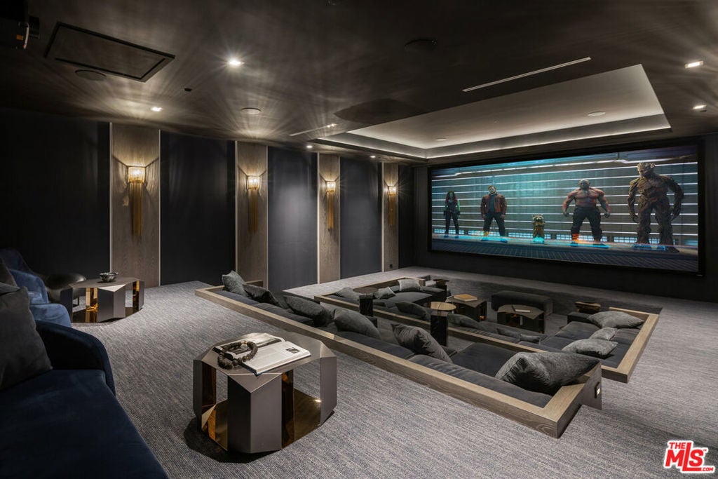 Experience ultimate luxury living in this exclusive Beverly Hills estate, available for rent. This private, gated compound offers resort-style amenities on a sprawling lot. Upon arrival, you'll be greeted by a striking waterfall and lush landscaping, with ample parking for up to 10 cars. The estate features a hand-tiled Balinese pool, spa, and fire pit, complemented by stunning 180-degree city and ocean views. Enjoy outdoor dining with a full kitchen, expansive grassy yard, and sports/pickleball court. A wellness spa and gym with floor-to-ceiling glass doors open to breathtaking grounds. Inside the spacious main house, you'll find luxurious details including a great room with panoramic views, a gourmet kitchen with a 12-ft island, and a wood-paneled office with a bar. The home offers two primary suites, each with luxurious baths and terraces, plus three additional ensuite bedrooms and a vast outdoor deck. Additional features include a 2-bedroom, 2-bath guest apartment, a state-of-the-art theater, a tequila tasting room, a poker room, a 2000-bottle wine cellar, and a ~3000-sf finished garage with a glass elevator. With perfect finishes throughout, this estate is designed for those seeking an unparalleled rental experience in Beverly Hills.
