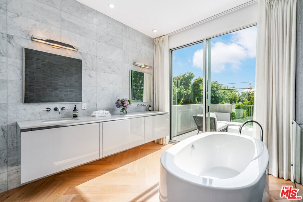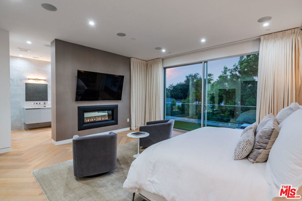 Sophisticated walled & gated 2-story detached Modern Architectural in trendy prime North of Melrose available for sale or lease. Featuring ultimate Smart Home Technology, a powder room, lofty ceilings, & Herringbone flooring. The expansive open spaces are perfect for entertaining & seamlessly integrate interior & exterior spaces for the ultimate California indoor/outdoor lifestyle experience. The Chef's kitchen has built-in Miele and Thermador appliances, marble counters, & a center island with a breakfast bar. All bedrooms have spa-style en-suite bathrooms, ample closet space, and an upstairs laundry room. The Fleetwood pocket doors lead out to a tranquil private backyard with a heated pool, spa, waterfall, lush foliage, and private trees. Other features include 3 fireplaces in the primary bedroom, bathroom, & living room, & an alarm system. Close to shopping, restaurants/bars. Seller is willing to consider offers with concessions & buying down buyer's interest rates.