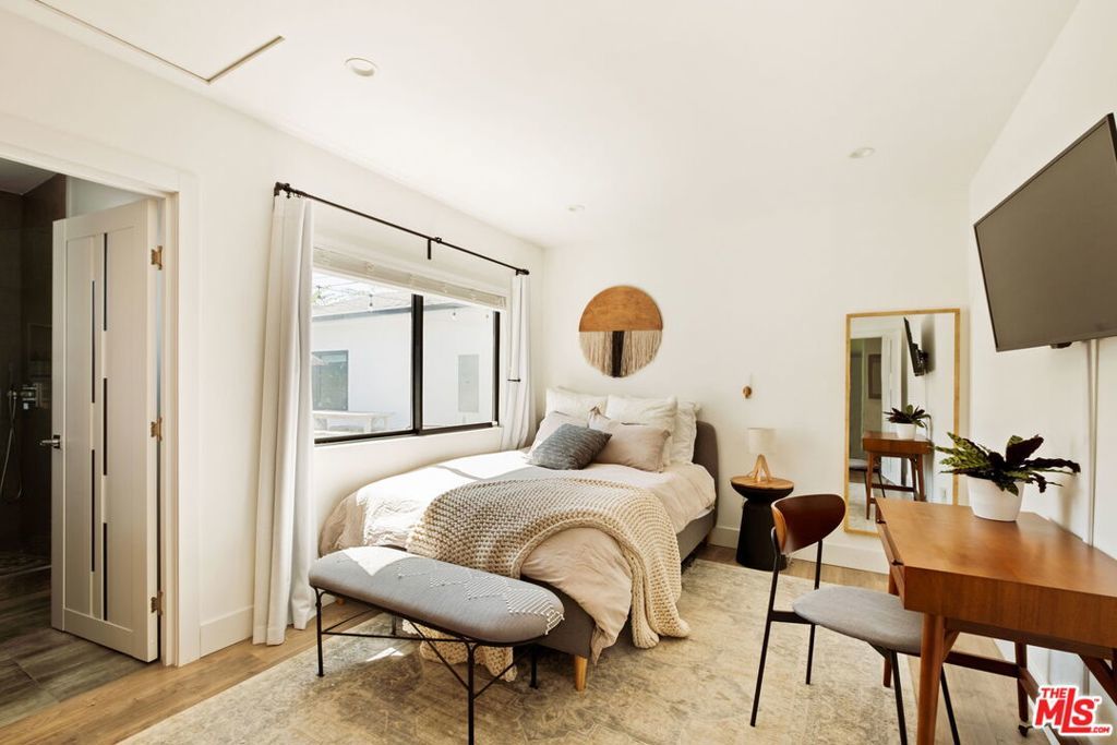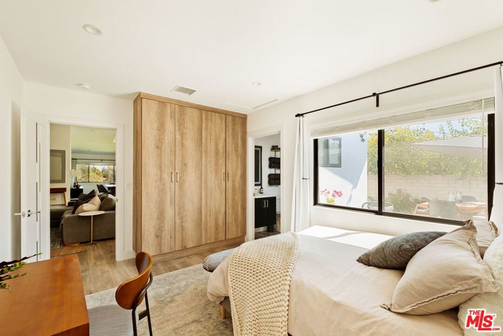 This stunning, fully remodeled home with a detached ADU showcases exceptional craftsmanship and designer detail throughout. The main residence offers over 2,700 square feet of living space with 4 bedrooms and 3.5 baths, featuring an expansive open floor plan with soaring vaulted ceilings. The chef's kitchen impresses with sleek European cabinetry, a large island with waterfall edge, and premium stainless steel appliances. The space flows seamlessly into the dining, bar, and living areas, making it perfect for entertaining. The luxurious primary suite features two spacious walk-in closets with custom built-ins and a spa-inspired bath with dual vanities, a soaking tub, and a one of a kind shower. Two well-positioned bedrooms share a Jack and Jill bathroom, while an additional bedroom includes its own ensuite, providing extra comfort and privacy. The detached ADU in the rear of the property is a beautifully finished studio ideal for guests, extended family, or rental income. A fully dialed in backyard offers the perfect setting for entertaining or relaxing. Additional upgrades include dual-pane windows, recessed lighting, updated plumbing, an EV charger, gated parking, and a carport. Perfectly situated in a desirable Valley Glen neighborhood near the community park, this home offers easy freeway access and proximity to everything the Valley has to offer. Truly one of a kind, don't miss this opportunity.