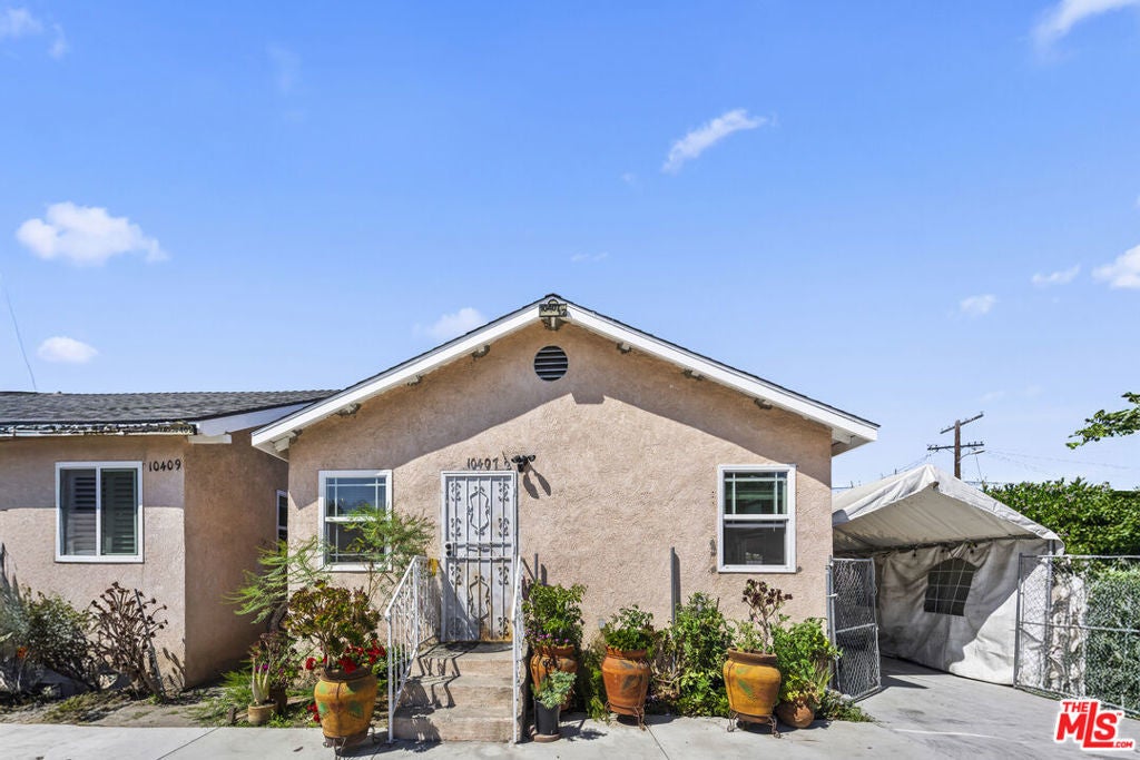 TRIPLEX WITH ADDITIONAL ADU POTENTIAL! DELIVERED VACANT! An extraordinary opportunity for the astute investor: this one-of-a-kind parcel spans 13,000 sq ft and offers three detached homes, each with its own address, all delivered vacant, plus two detached garages ready for ADU conversion. Located at 10407 Juniper Street (with additional unit addresses), there are 4 total addresses on this property. 10407, 10407 1/2, 10409 and 10411 Juniper Ave. This property blends immediate income potential, expansion opportunities, and strategic upside. Two homes are detached 2 bedroom / 1 bath residences: Unit A: ~568 sq ft Unit B: ~684 sq ft and the third home is a 3 bed, 1 bath unit, Unit C: ~1,058 sq ft. With ample yard and driveway space, parking is never an issue. The detached garage provides a blank canvas, primed for an ADU, and the sheer lot size opens the door to future expansion. Unmatched Development Potential: With three existing addresses and three by-right units, investors could explore adding up to three detached ADUs (buyer to verify). This could bring the total buildout potential to 6 rentable units, an incredible opportunity to maximize cash flow and long-term value. All homes will be delivered vacant, move-in or lease-up ready, making this a rare clean-slate offering. Whether you expand existing homes, activate ADU potential, or simply rent all three as-is, the layout and zoning create flexibility for both short-term yield and long-term appreciation. Prime Location: Just minutes from a brand-new shopping complex featuring Starbucks and other major retail anchors, the property sits in a high-demand pocket of Los Angeles with easy access to retail, transit, and community amenities ensuring steady rental demand and strong future upside. Don't miss this rare multi-unit, multi-address property in Los Angeles: immediate income, exceptional development potential, and a massive lot that sets the stage for the next great investment in your portfolio.