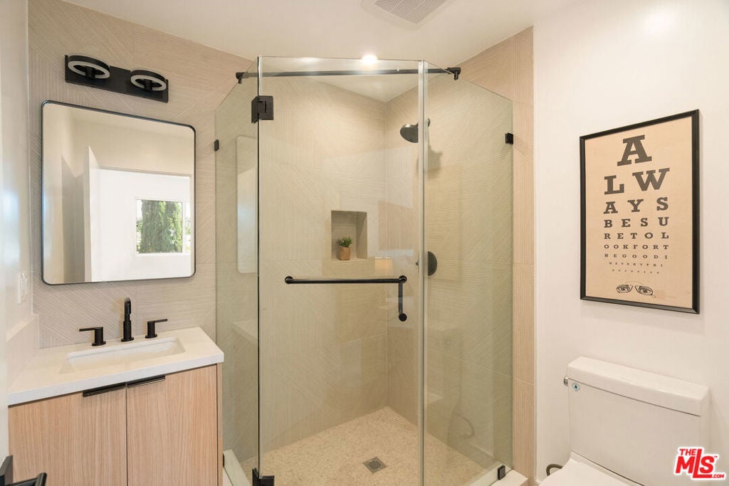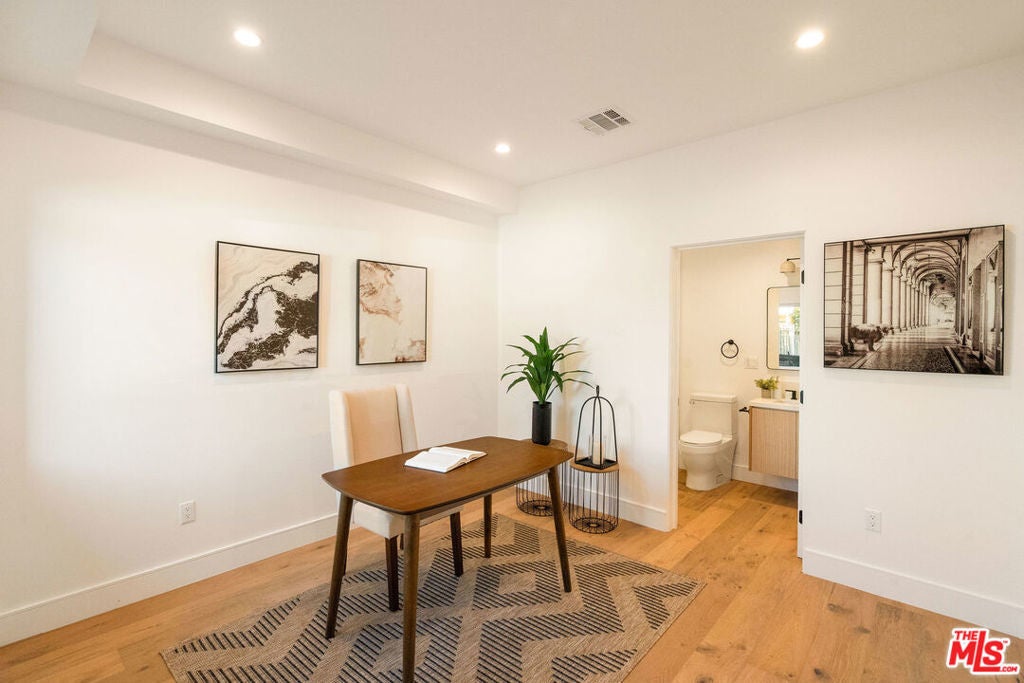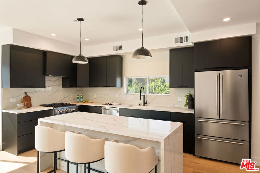 Welcome to Fig + Burwood, an intimate newly constructed community of eight homes conveniently located in bustling Highland Park! Completed in 2025, this 4bed/4.5bath modern residence features its most functional floor plan, with ample space to spread out and grow into. Enjoy the ease of direct access into your foyer from the spacious two car garage. Discover a private first floor suite complete with a spa-like en suite bath, perfect for visiting guests or use as a home office. Find your way to the second level where an abundance of natural light pours in through new windows, highlighting new white oak flooring throughout the generous open living space. Stylish pendant fixtures draw your eyes to the well appointed dining area and oversized kitchen island with built in seating for three. Take advantage of the plentiful countertop space and volunteer to host this year's holiday gathering. Dazzle guests with a designer kitchen with custom cabinets adorned by quartz counters and top of the line stainless steel Forno appliances. Enjoy three roomy primary suites all with dedicated baths + walk-in closets, lending to the flexibility of how you use the space. Two bedrooms enjoy their own private balconies offering relaxing spaces for solitary moments of morning reflections. An expansive roof top deck on the upper level has been prepped for you to customize it for premium al fresco living. Move right in with outlets galore for your ideal outdoor entertainment system set up, hook ups for an outdoor kitchen, and a built-in fire pit ready for enjoyment. Enjoy never-ending moments of gratitude as you indulge in sprawling views of verdant hillsides and twinkling city lights. Finally, you've got your own piece of the pie! Just minutes to the best of both Highland Park + Eagle Rock such as foodie favorites like Little Beast, Highly Likely, Checker Hall, Hippo, Joy + more. Convenient access to both the 134 + 110 Freeways allows the urban explorer to jaunt around the city seamlessly. Welcome home!