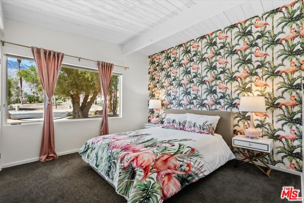 Available furnished beginning May 2026, this iconic mid-century Alexander residence in Palm Springs' coveted Little Beverly Hills offers an elevated, resort-level living experience for extended stays. Designed by Palmer & Krisel and thoughtfully refreshed, the home blends iconic architecture with modern comfort: soaring post-and-beam ceilings, walls of glass framing mountain views, and a bright open layout ideal for relaxed long-term living. The updated kitchen features distinctive turquoise cabinetry and stainless appliances, flowing into a spacious living and dining area curated with designer furnishings. The primary suite opens directly to the backyard, while two additional bedrooms provide flexibility for guests or remote work. Outside, the property lives like a private boutique resort with a heated pool, spa, sun shelf, fire feature, multiple lounging and dining zones, and a fully covered patio for year-round enjoyment. Rent includes solar electric, pool service, landscaping, water, electric, internet, and valet trash, offering truly turnkey living even in the summer months. Set in a quiet neighborhood close to golf, shopping, and downtown Palm Springs, this turnkey home is perfect for those seeking a sophisticated desert retreat for a 3-6 month (or longer) stay.