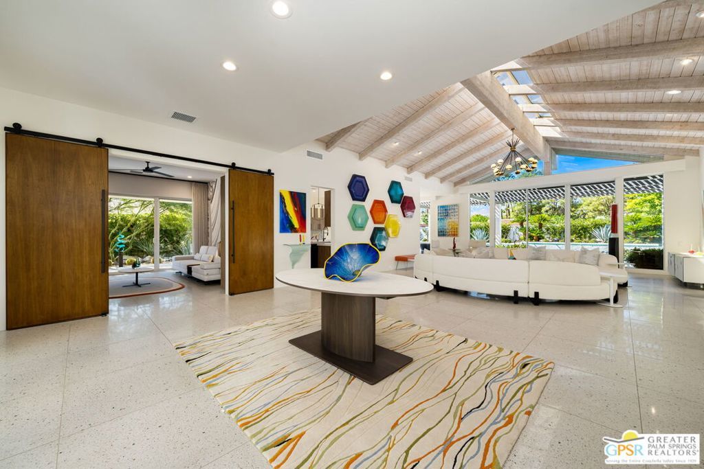 Welcome to this stunning luxury home, where timeless elegance meets modern sophistication. From the moment you arrive, you'll be captivated by its grand presence, impeccable craftsmanship and resort-style amenities designed for both comfort and entertaining.Step inside to soaring ceilings, Terrazzo tile floors, expansive windows that flood the home with natural light and an open concept floor plan that blends seamlessly from one space to the next. The chef's kitchen is truly outstanding, featuring custom cabinetry, a Walker Zanger backsplash, quartz countertops, and high-end Decor appliances, including a 48" range with a steam oven, two dishwashers, and a chef's sink. Stylish Kelly Wearstler pendant lights add a designer touch. The dining area and intimate breakfast nook provide flexible dining options. Retreat to the primary suite, a true sanctuary featuring a walk-in closet, a secondary closet, and built in dresser. Two additional spacious en-suite bedrooms provide luxurious accommodations for family and guests. A versatile office/media room with custom cabinetry can be converted into a fourth bedroom. Outdoors, the meticulously landscaped grounds showcase a sparkling pool and Spa, lounge areas, and an outdoor built is BBQ for unforgettable entertaining. Every detail of this home was designed with sophistication, comfort, and desert lifestyle in mind. This is more than a home it's a statement of luxury living.