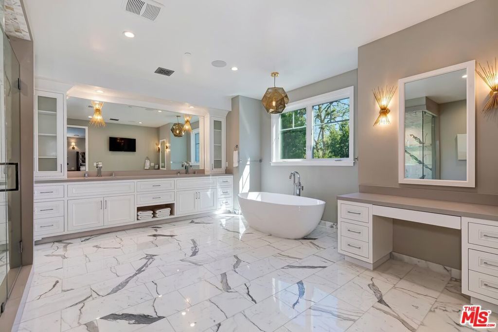 Eight years New gated Traditional 5 bedrooms + 5.5 bathrooms Smart home in the heart of Toluca Lake. Impeccably designed, this approximate 4,200 square foot home with European oak floors & exquisite finishes offers an open floor plan for ultimate indoor-outdoor California living. A gourmet Chef's dream kitchen with stunning island has stainless steel high-end appliances including built-in coffee maker and 2 dishwashers. The family room with fireplace and built-ins opens up completely to a lovely patio, landscaped private yard, redwood tree, built-in BBQ, pool and spa. The Primary bedroom offers vaulted ceilings, 2 walk-in closets, sitting area, built-ins with subzero fridge, fireplace, surround sound system, spacious private covered balcony and bathroom with double vanities, free standing tub and expansive rain shower. All the other 4 bedrooms have bathrooms ensuite. Extra features include home office, wine room, large upstairs laundry room and direct entrance 2 car garage. Walking distance to Lakeside Golf Club, Toluca Lake Village, Warner Bros., Disney and Universal Studios with easy access to freeways, downtown and westside.
