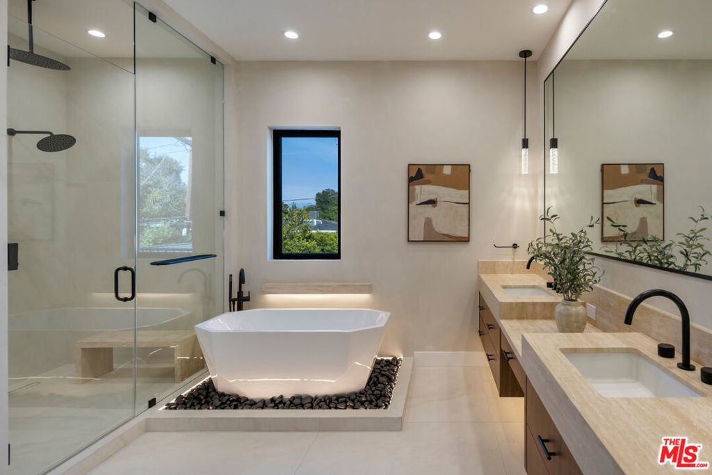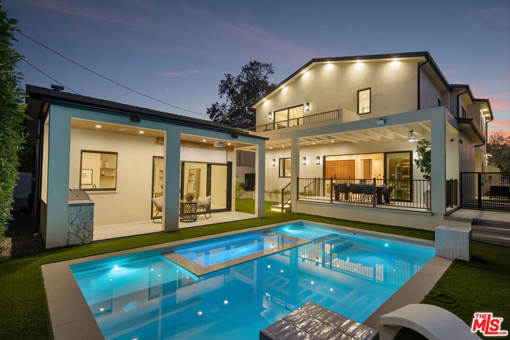 Introducing 4140 Sunnyslope Ave - a striking, modern farmhouse tucked behind gates South of the boulevard in the heart of Sherman Oaks. Thoughtfully crafted with exceptional attention to detail, this custom-built 5-bedroom, 5-bathroom main residence is complemented by a fully permitted detached ADU, offering versatility and modern convenience. Passing through the formal entryway, the chef's kitchen is a true showpiece, appointed with Thermador appliances, rich walnut cabinetry, and a large center island. Designed for seamless entertainment in mind, the kitchen flows effortlessly into the living room, where a sleek fireplace, custom built-ins, and floor-to-ceiling glass stacking doors create an inviting indoor-outdoor lifestyle. The lower level includes a spacious en-suite bedroom or office, powder bath, and a dedicated laundry room. Upstairs, four additional ensuite bedrooms await, highlighted by the serene primary suite. The primary oasis is complete with its own fireplace, private balcony, custom built-ins, and a generous walk-in closet, offering endless luxury and functionality. The spa-inspired bath offers dual floating vanities, a soaking tub nestled on a bed of rocks, and a step-in shower with three shower heads for the ultimate indulgence. The backyard is an entertainer's dream, evoking a private resort with a sparkling pool and spa, outdoor kitchen with built-in BBQ, expansive deck for al-fresco dining, and an Optoma projector and screen for unforgettable movie nights under the stars. The ADU at 4138 Sunnyslope Ave includes a kitchenette and full bath - perfect for a pool house, guest suite, office, or potential income property. Additional features include a Control4 smart home system and a two-car garage. Located within the coveted Dixie Canyon Community Charter School district and just moments from The Shops at Sportsman's Lodge and the vibrant offerings along Ventura Boulevard, this residence embodies the perfect balance of modern sophistication and everyday ease.